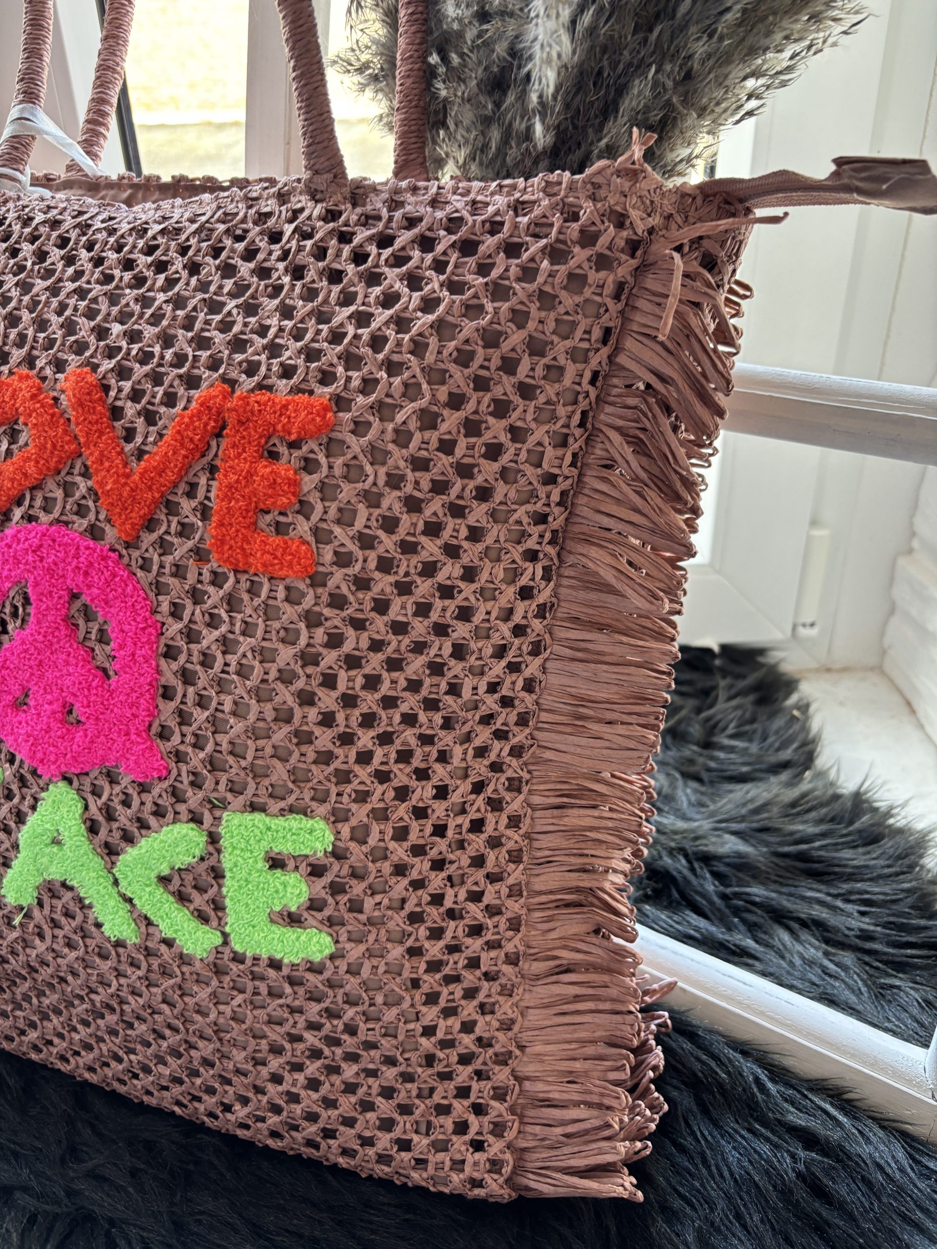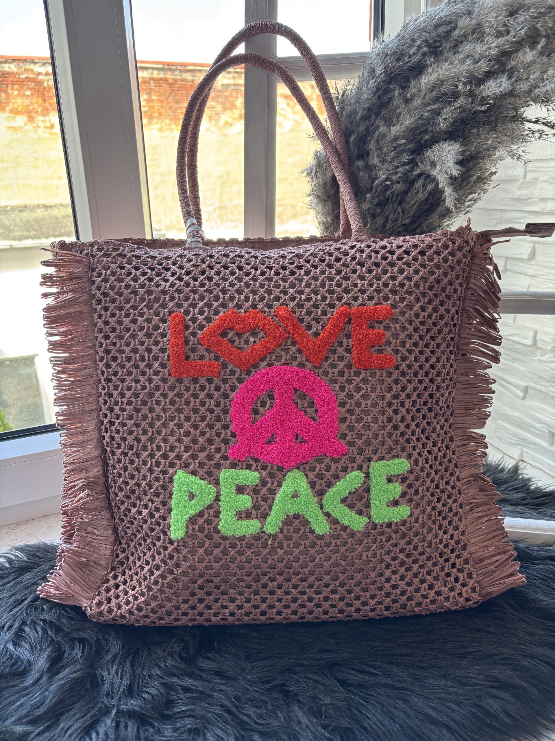 In den WarenkorbBasttasche / Strandtasche Love & Peace Orange