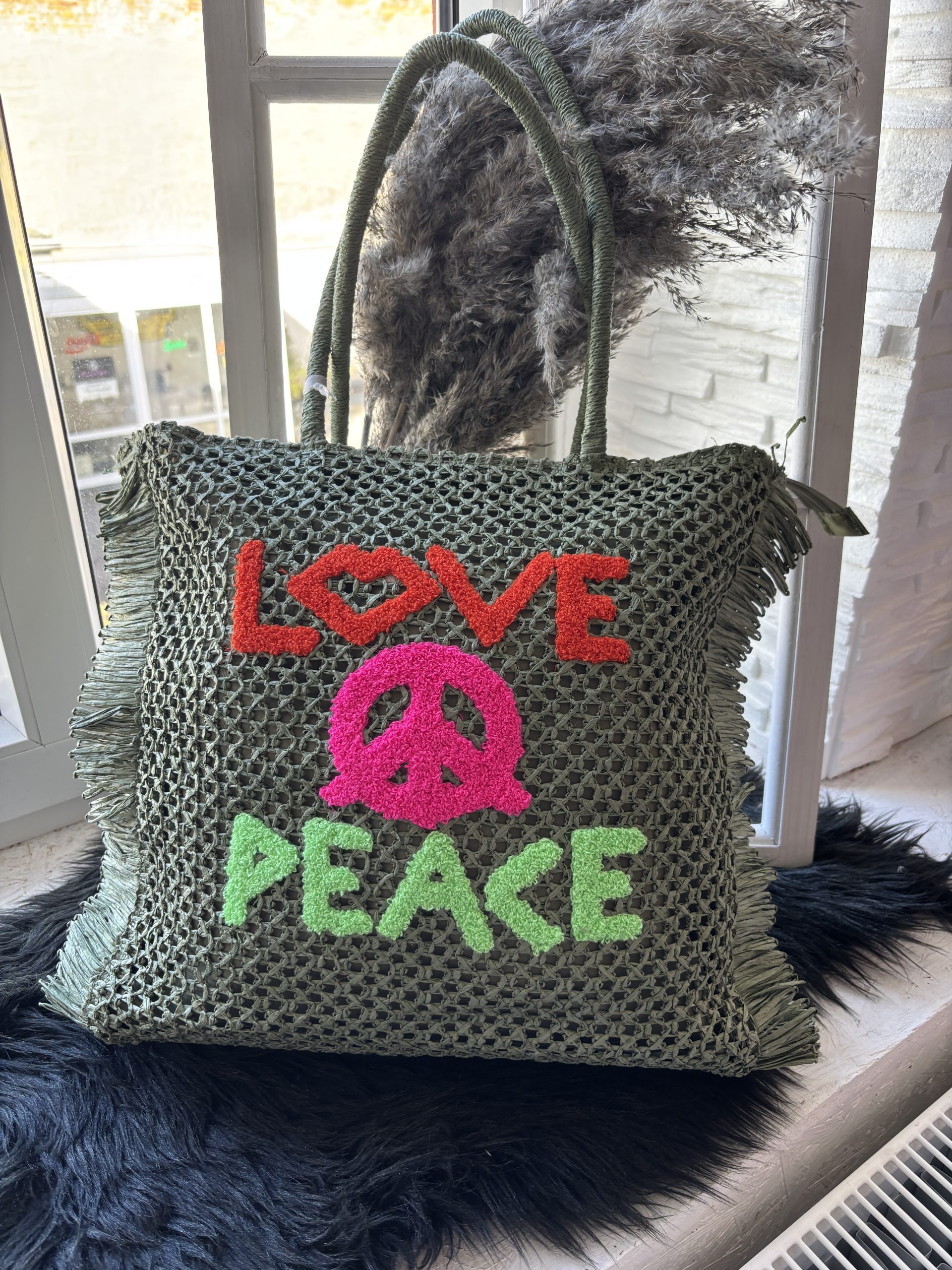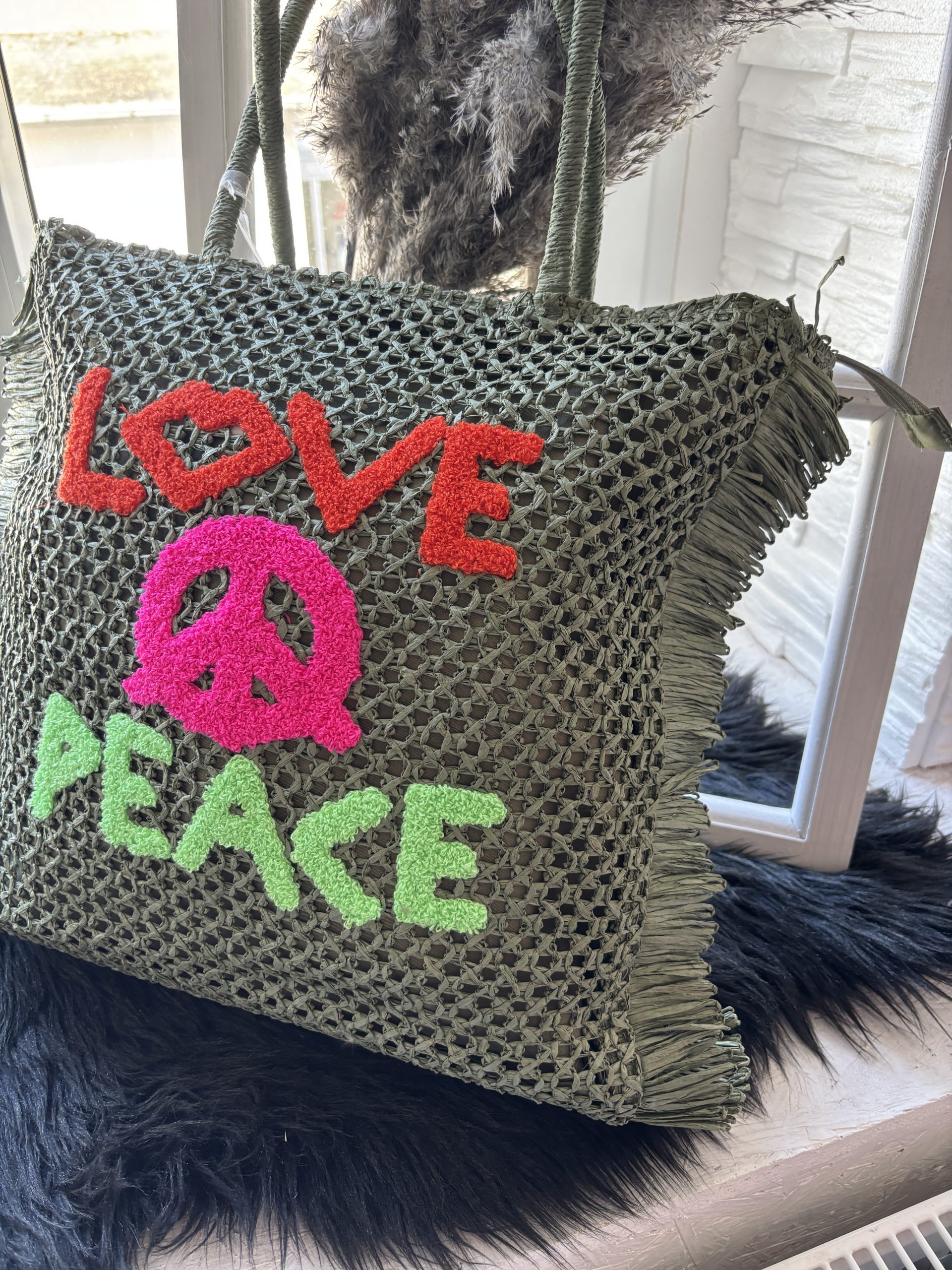 In den WarenkorbBasttasche / Strandtasche Love & Peace Schwarz