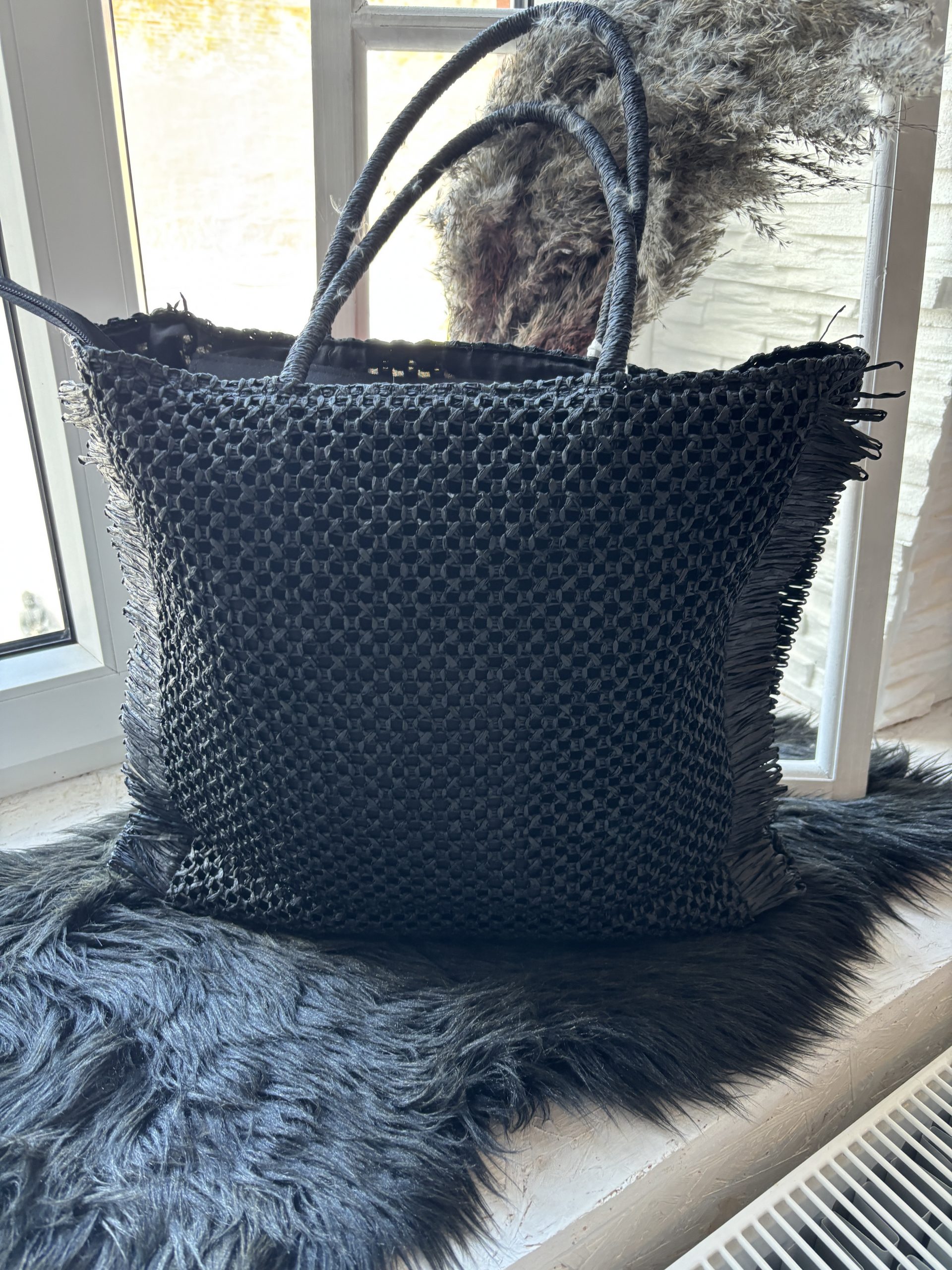 Basttasche / Strandtasche Love & Peace Schwarz