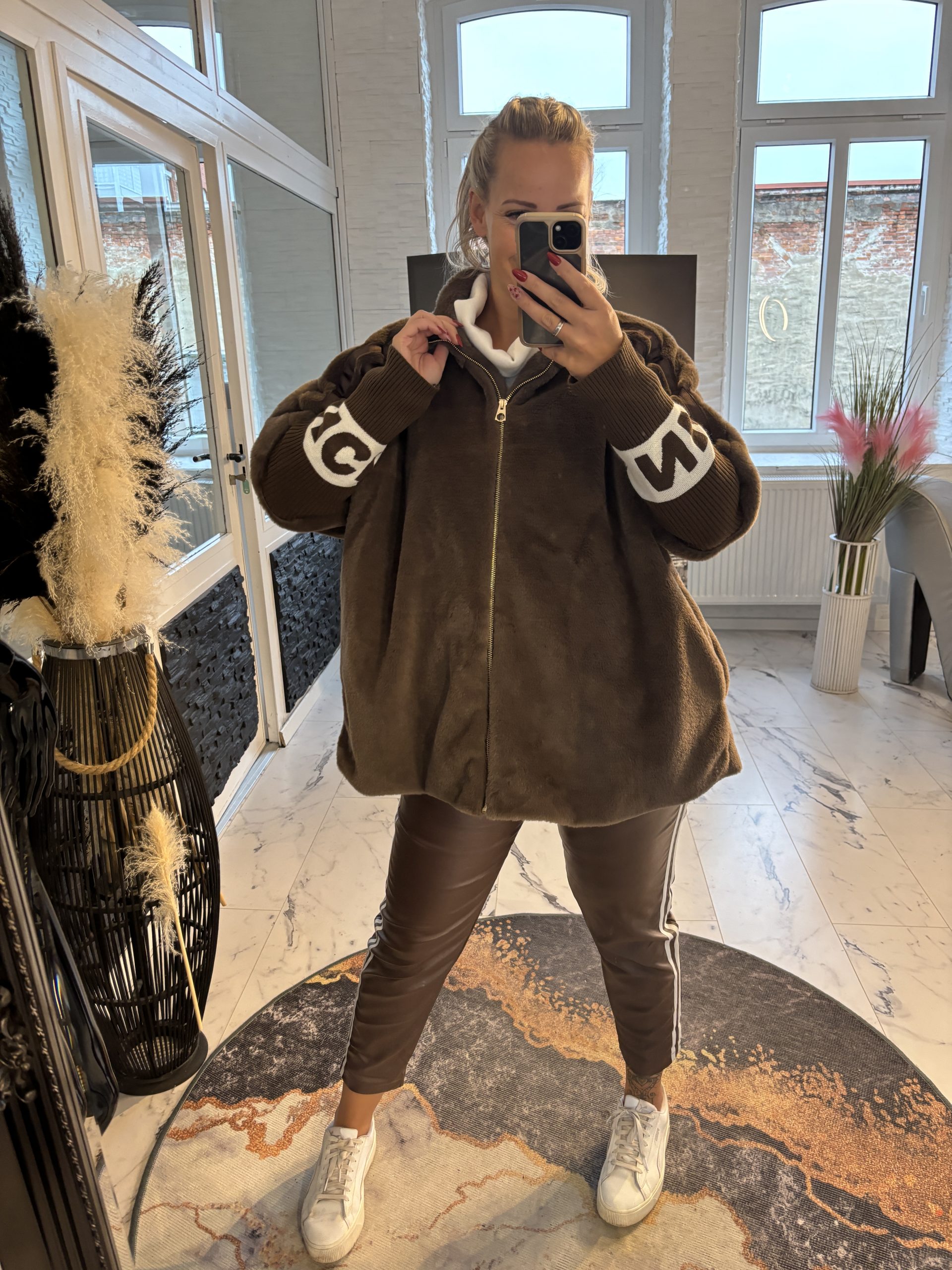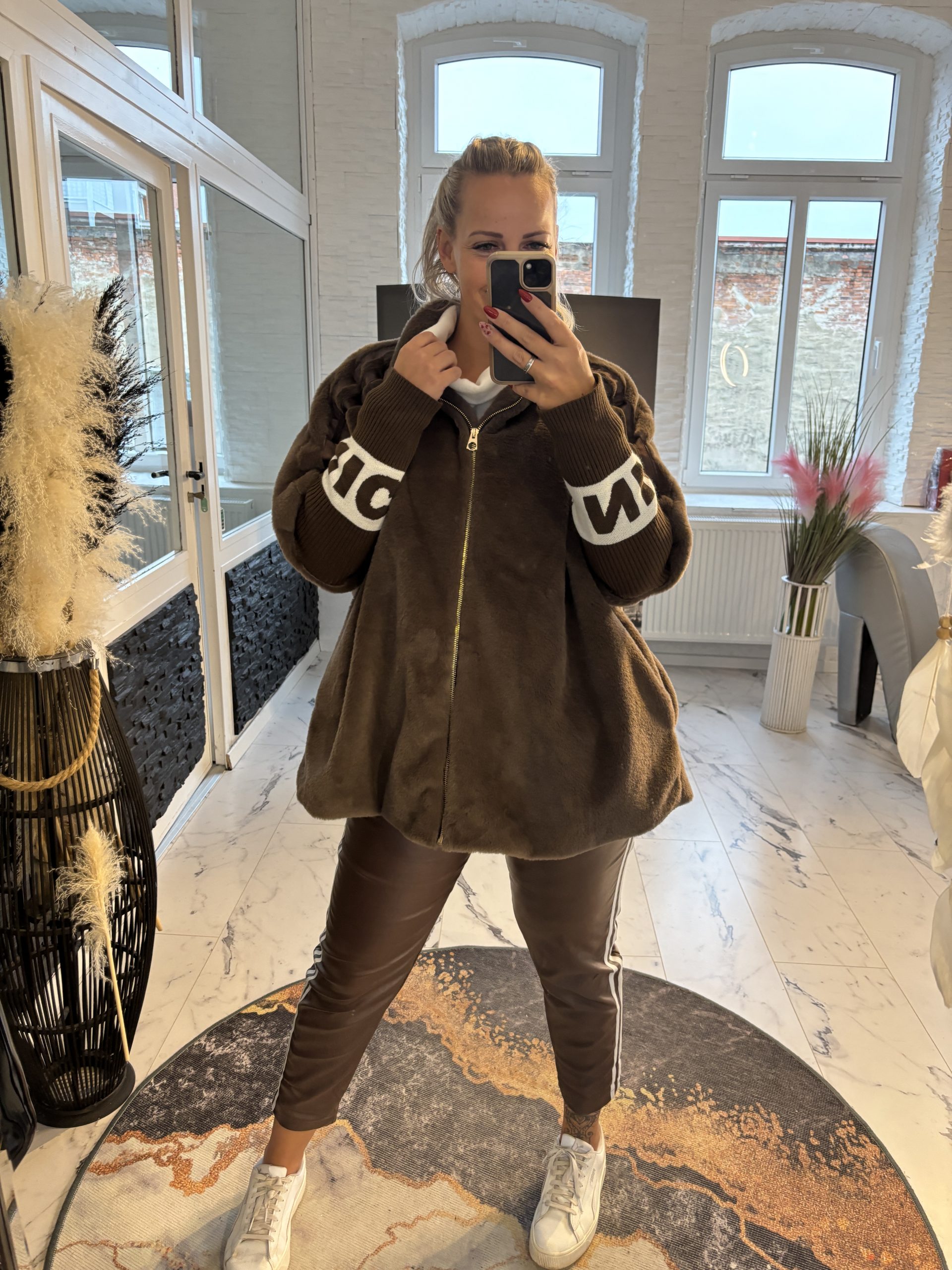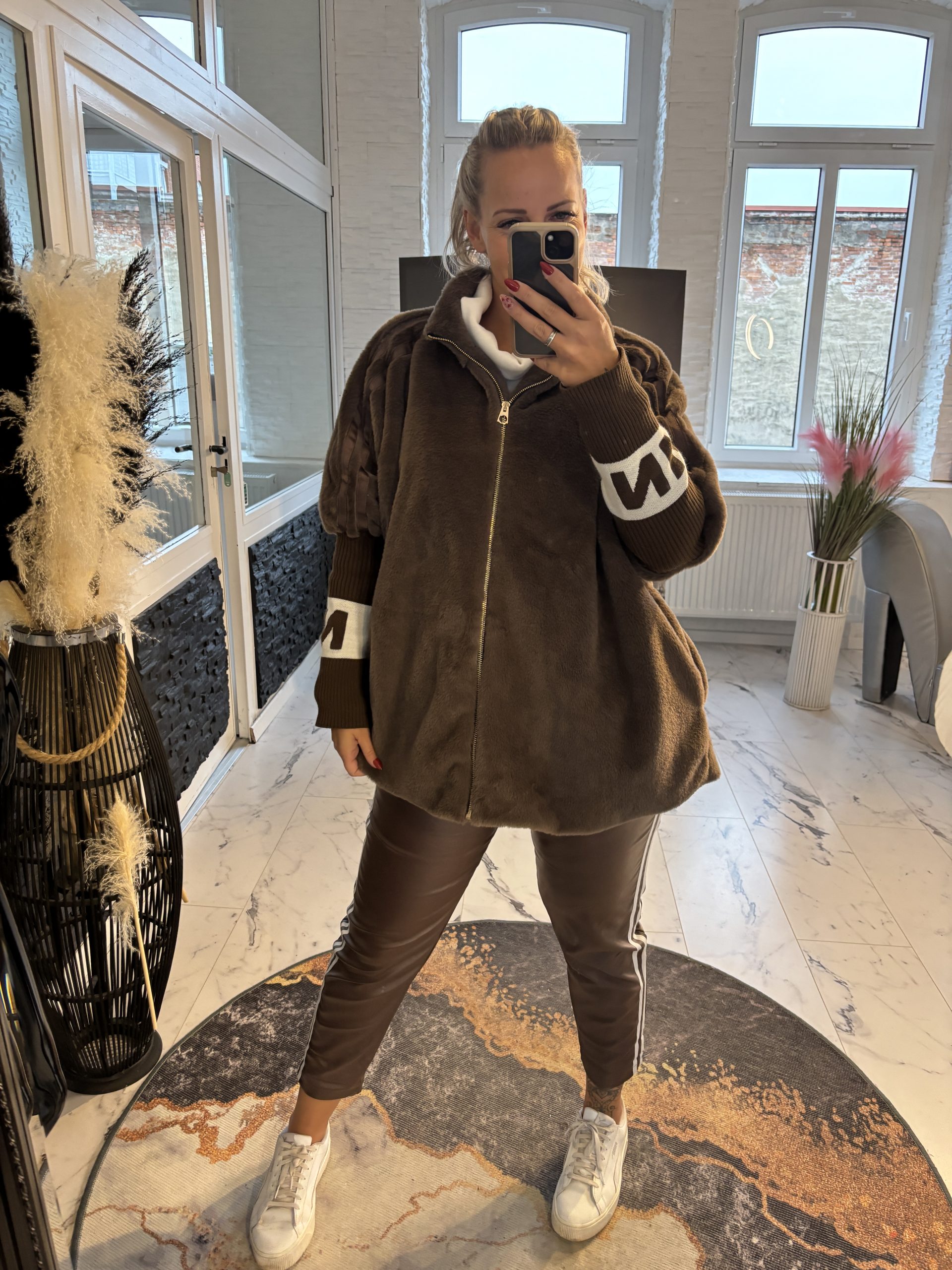 Cloé Jacke schokobraun over Size Schnitt mit Rippärmeln one Size 38-46 #1106