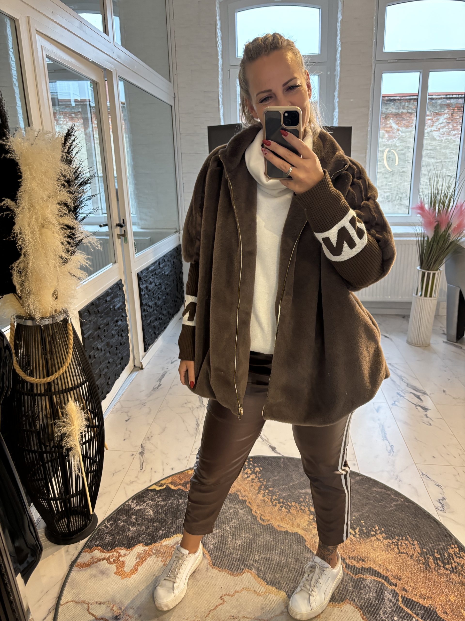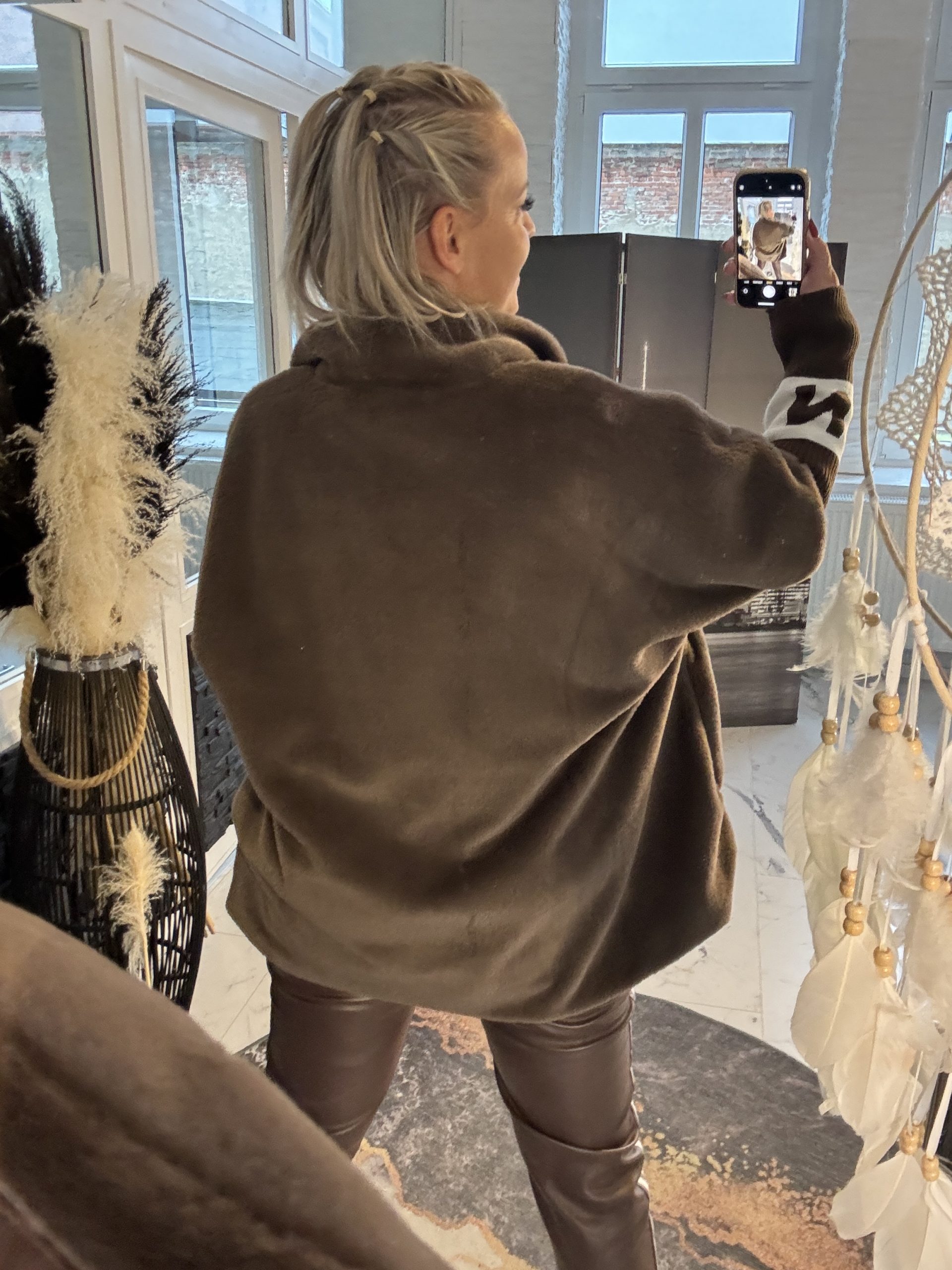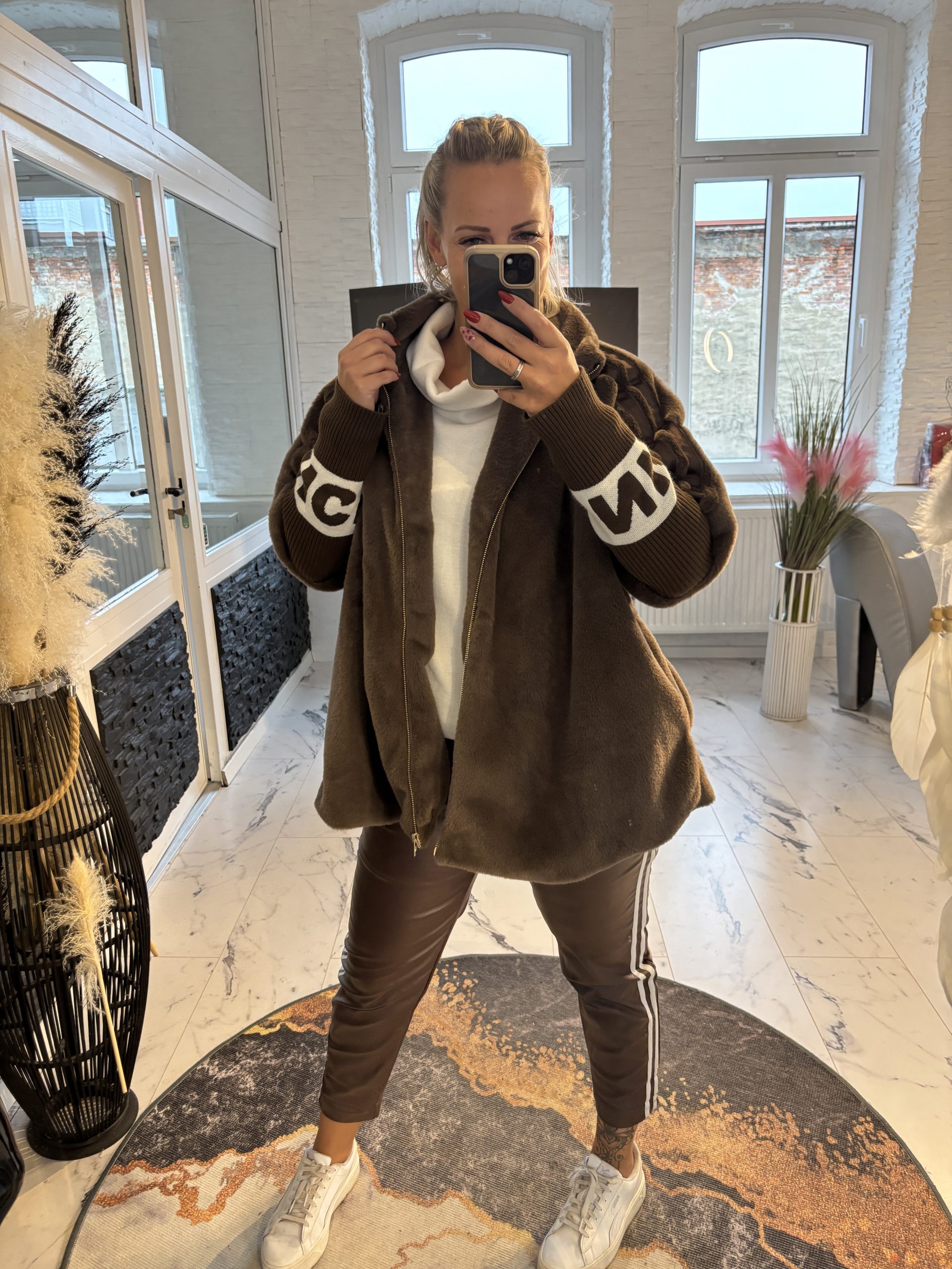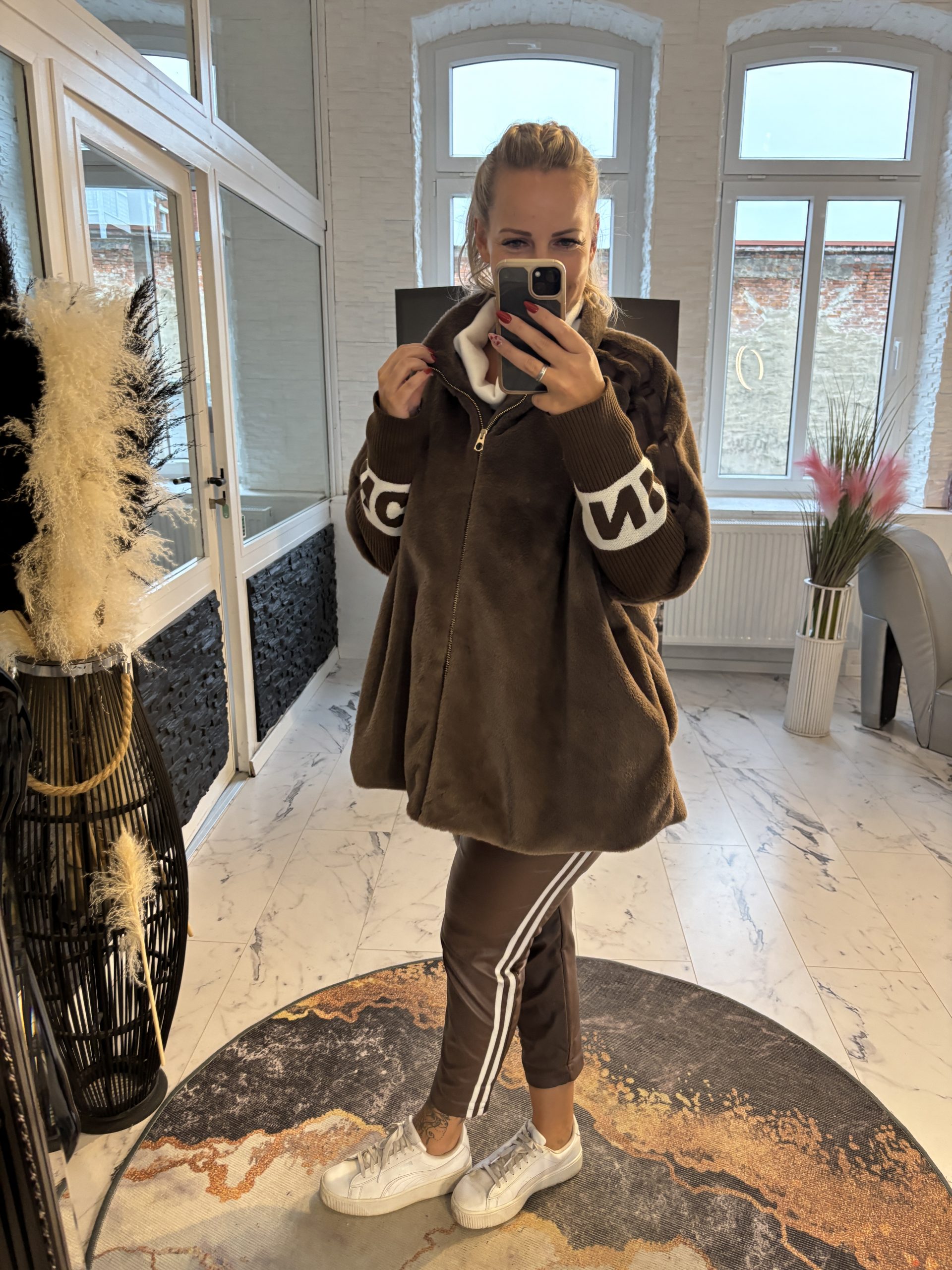 Cloé Jacke schokobraun over Size Schnitt mit Rippärmeln one Size 38-46 #1106