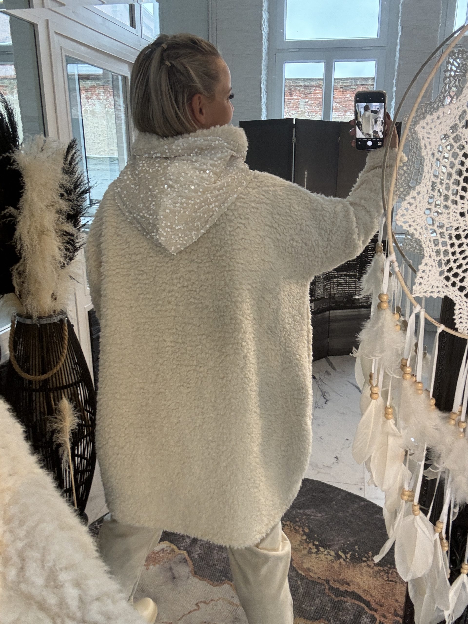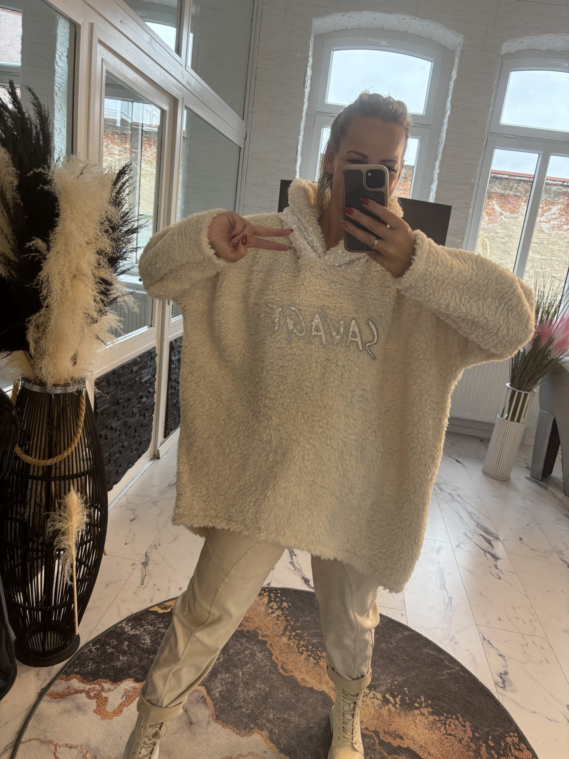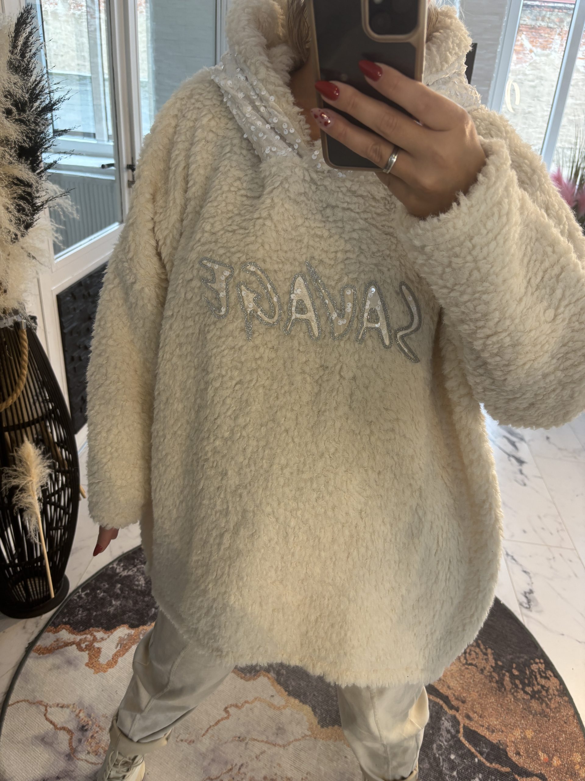 Creme Bouclé Savage Longpulli Glitzer Kapuze one Size 38-46 #1058