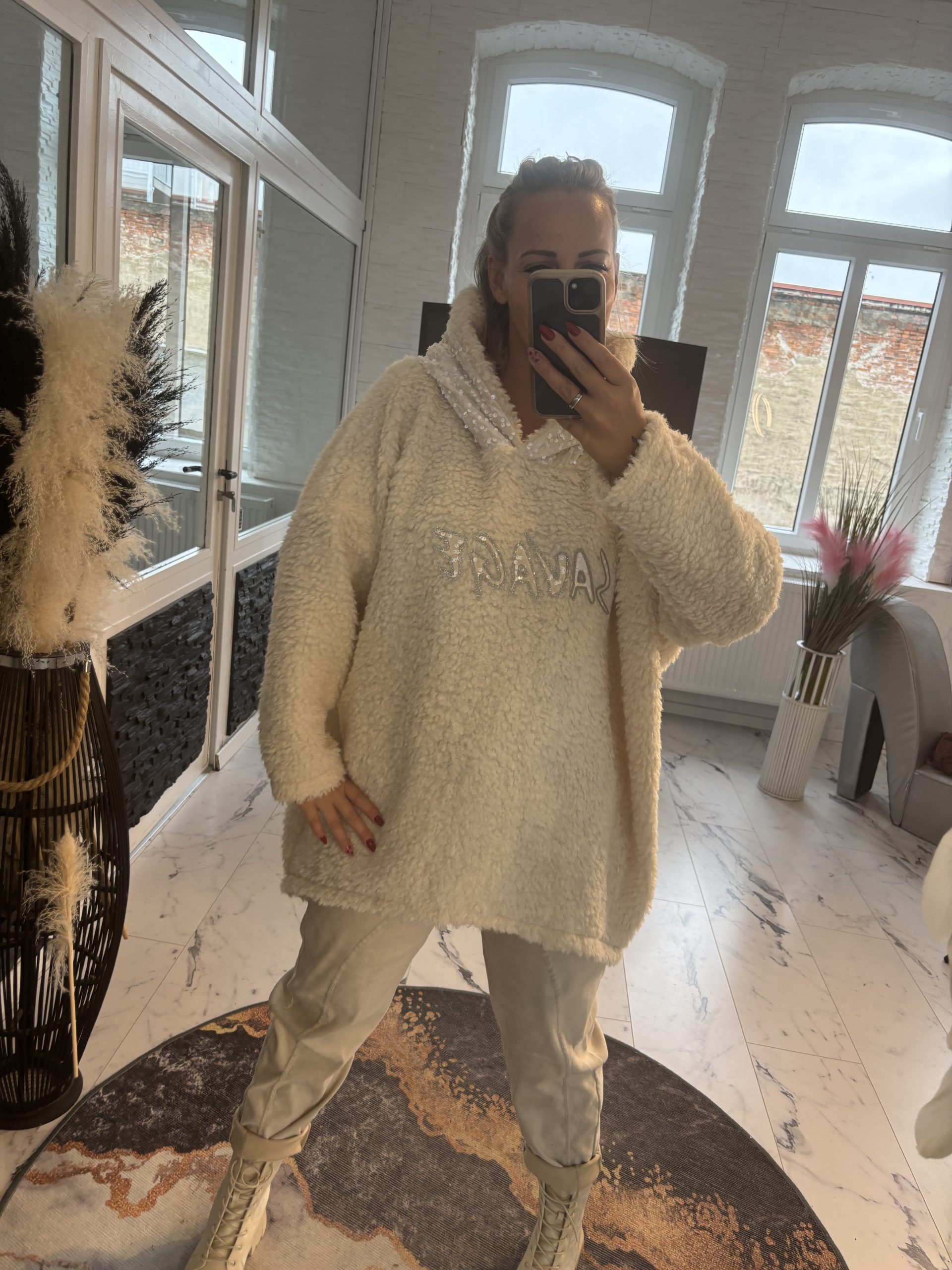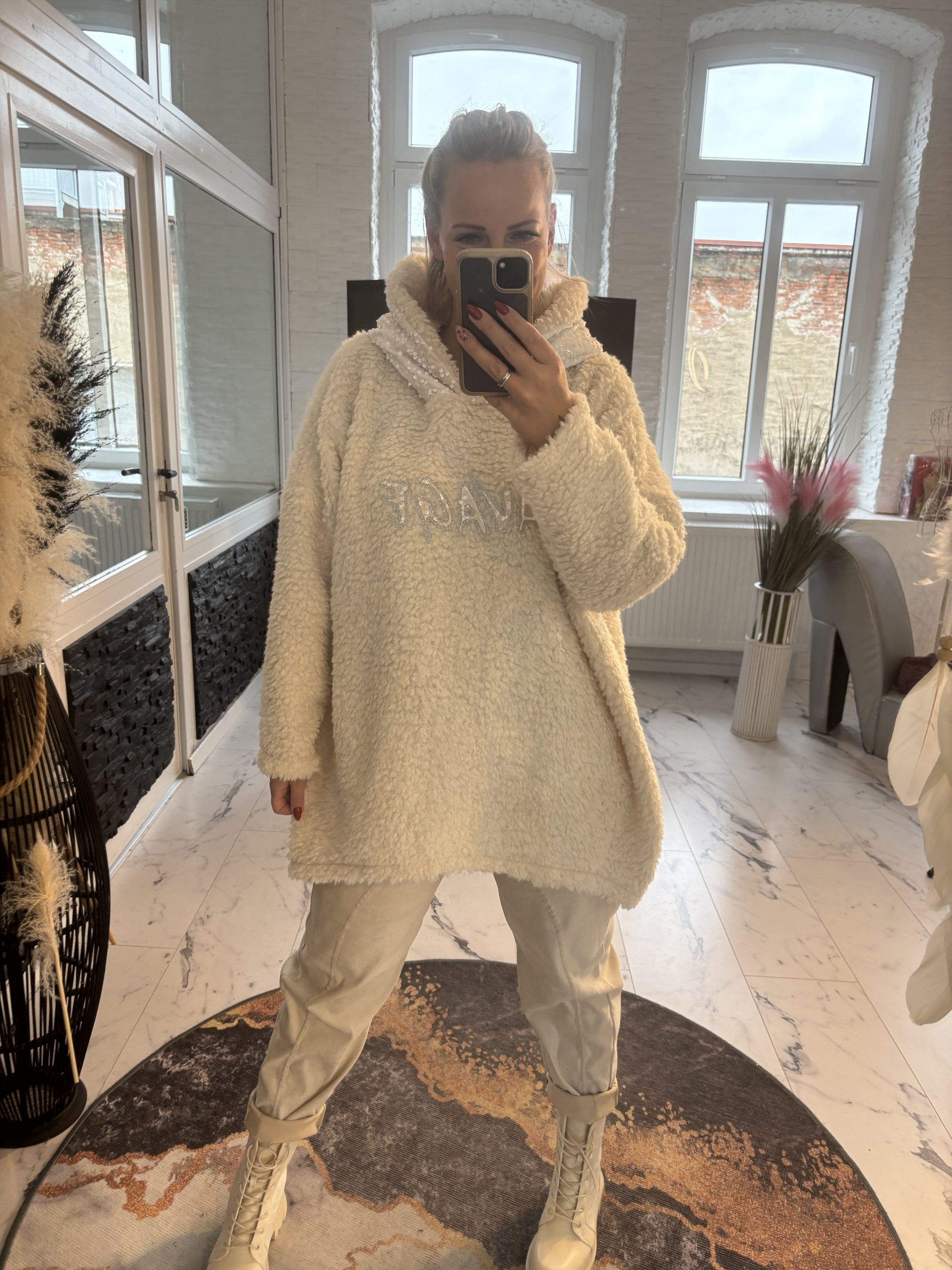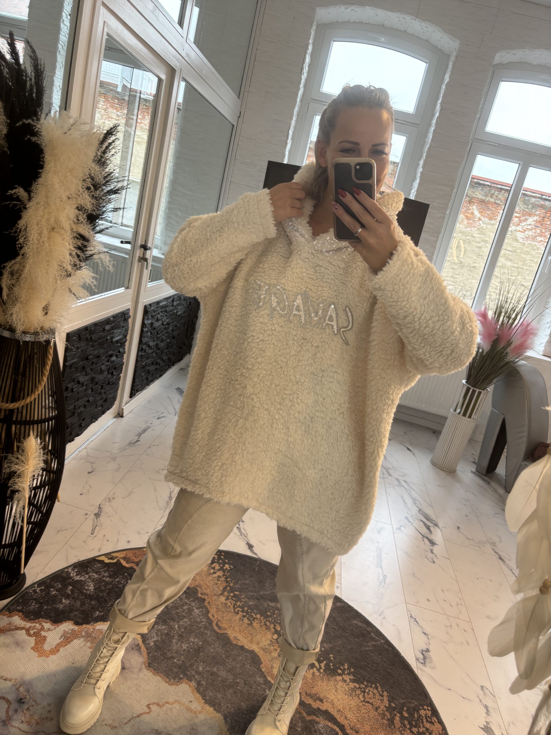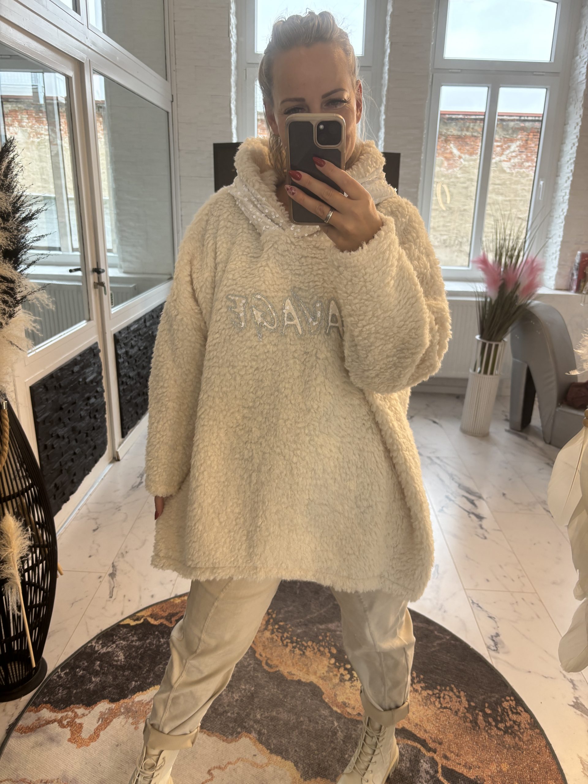 Creme Bouclé Savage Longpulli Glitzer Kapuze one Size 38-46 #1058