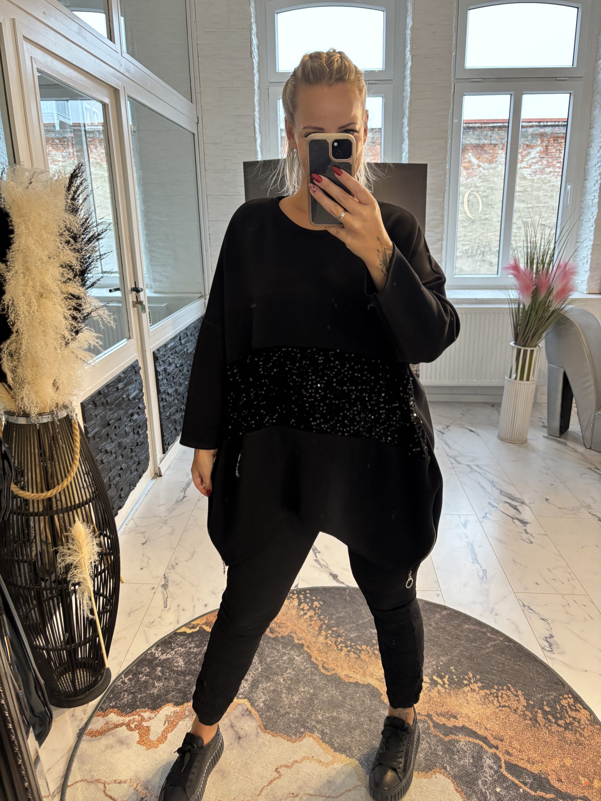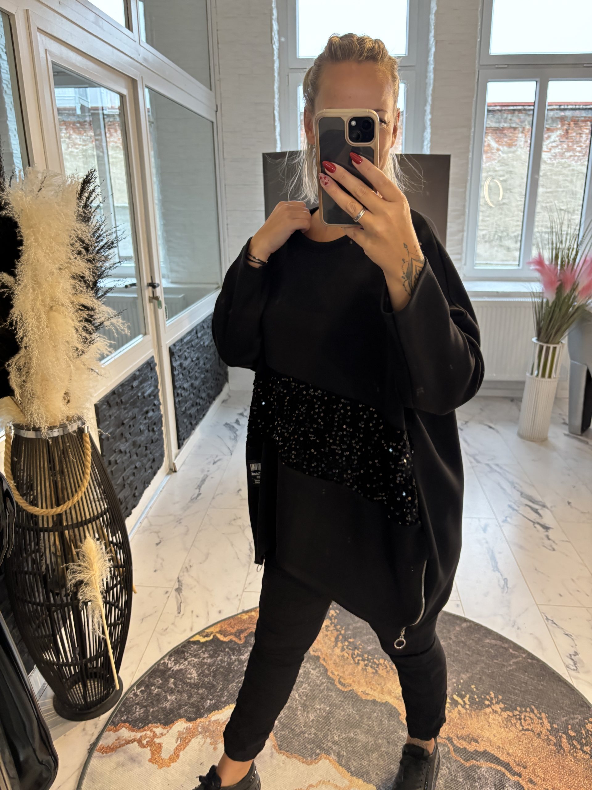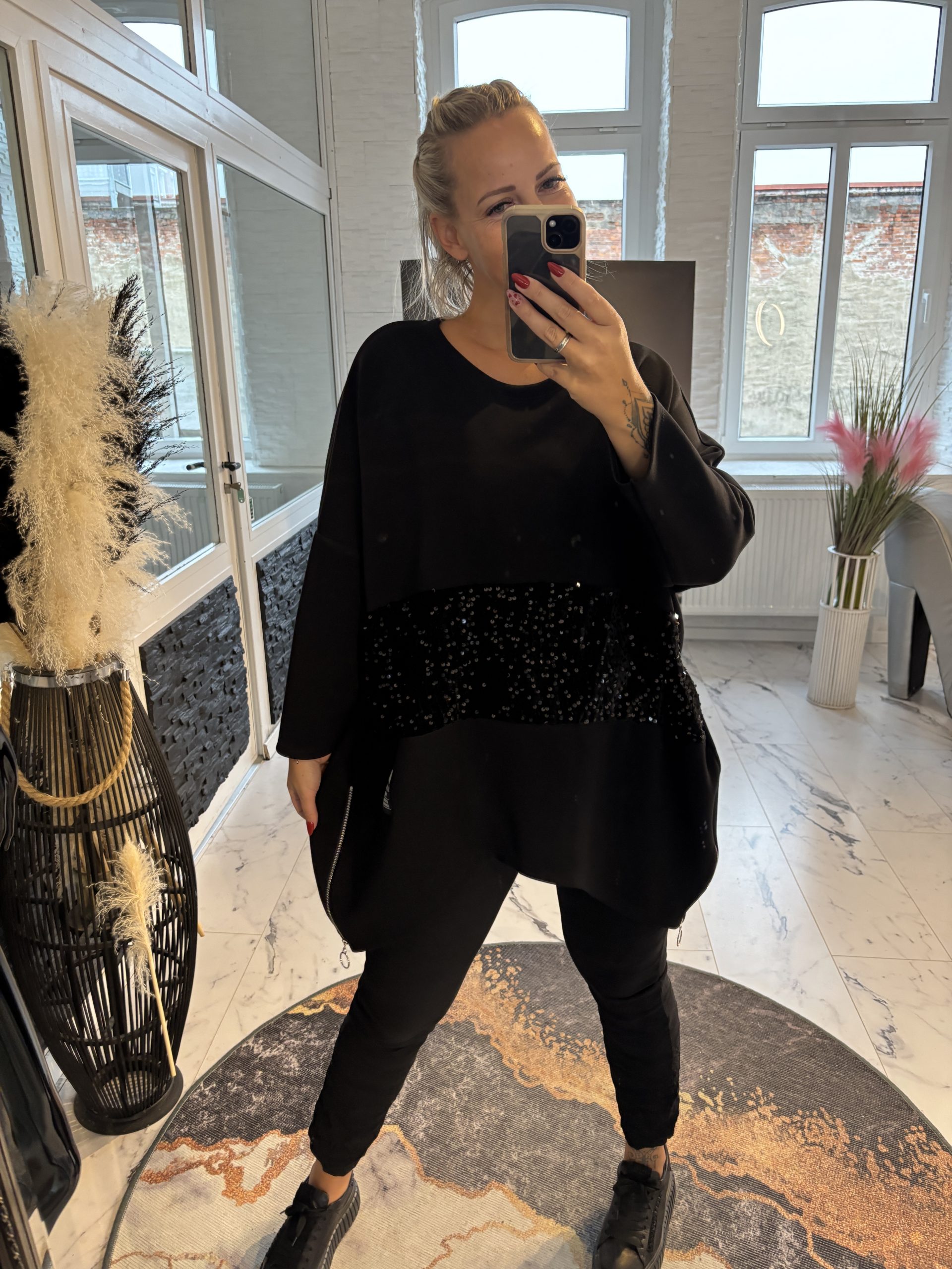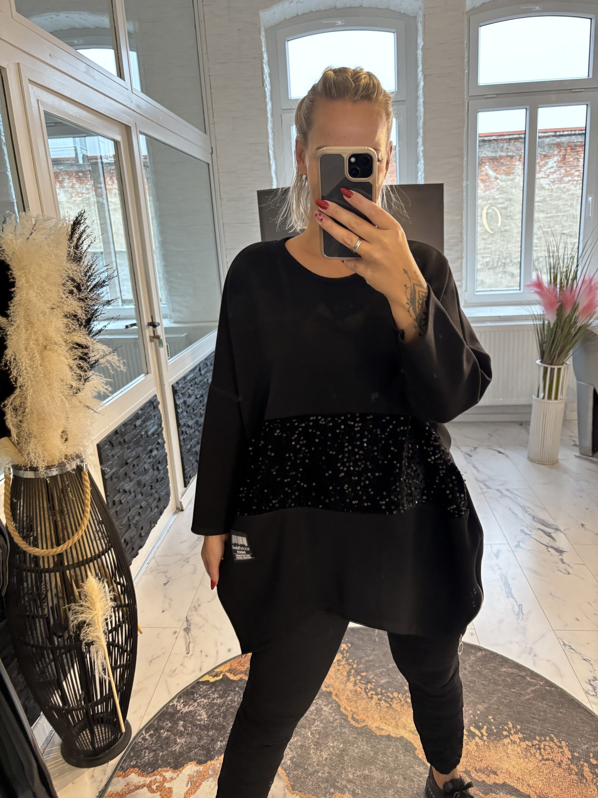 Glitzer Longpulli Mira schwarz one Size 38-46 #1130