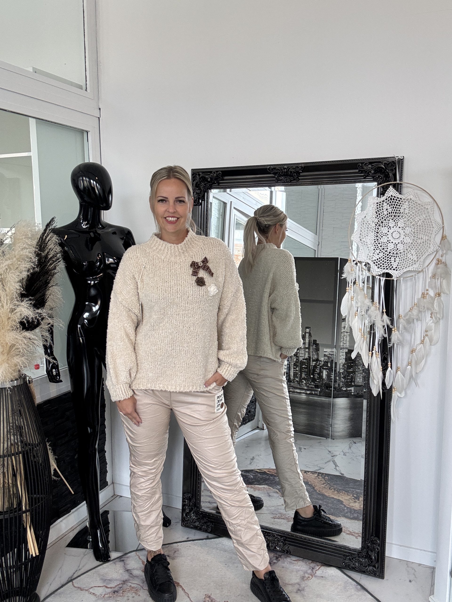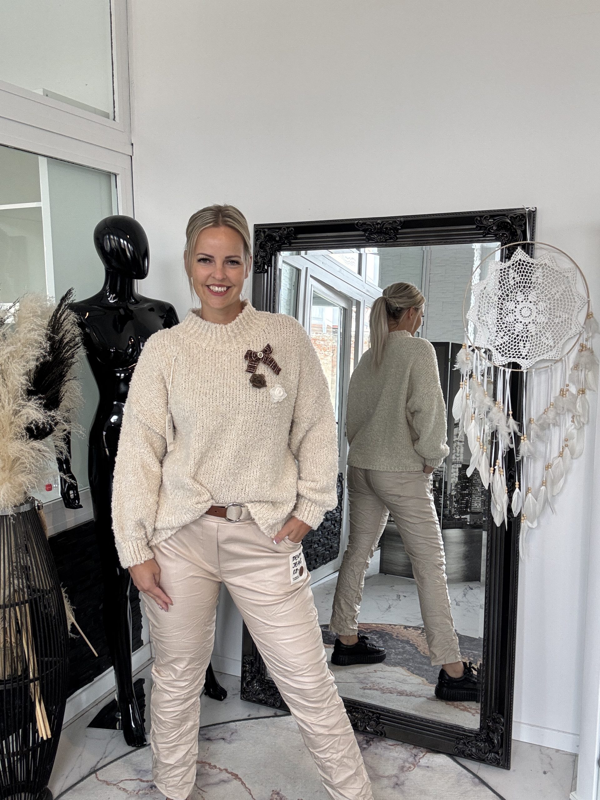 Kuschelpulli mit Brosche Natur one Size 38-44 #1144