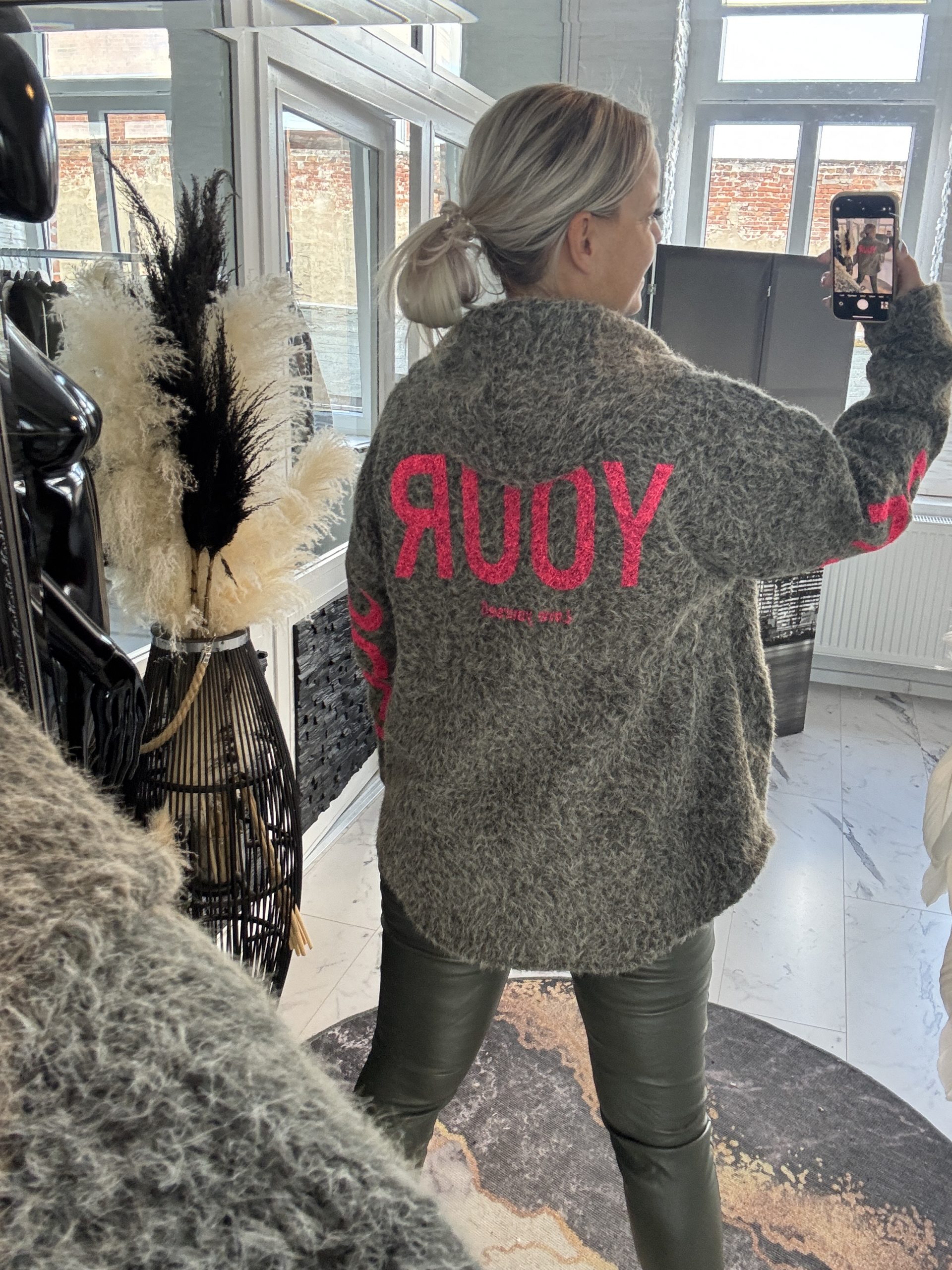 Leichte Jacke in Wolloptik mit Rückenprint khaki one Size 38-44 # 1013