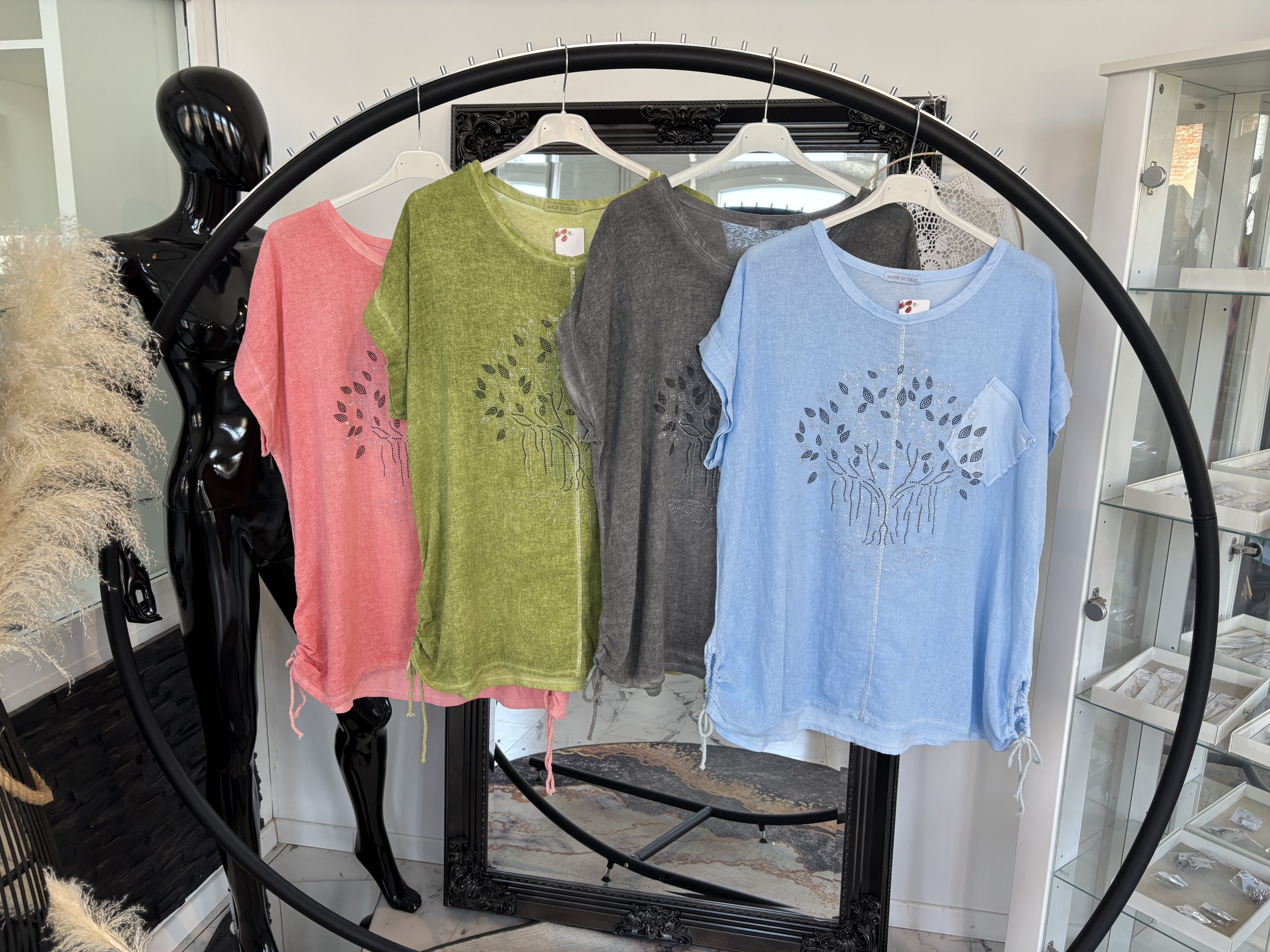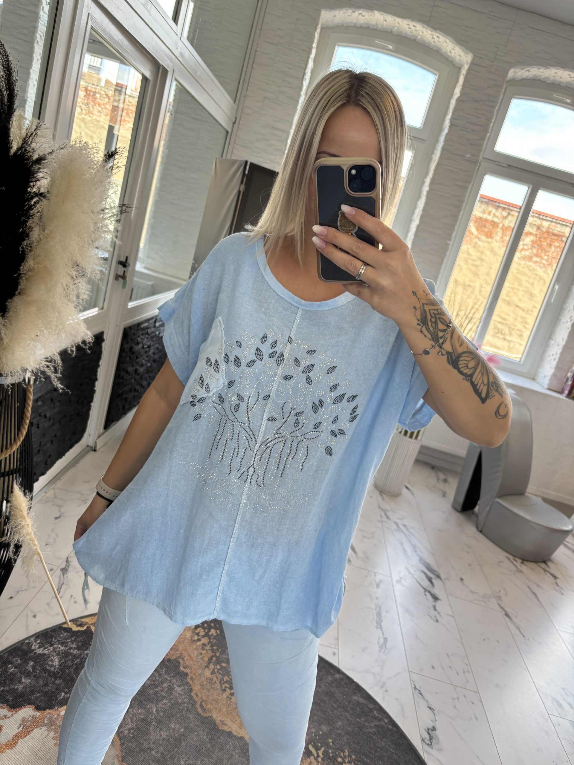 Leinen T-Shirt mit Lebensbaum Print one Size 38-44/46 #1162