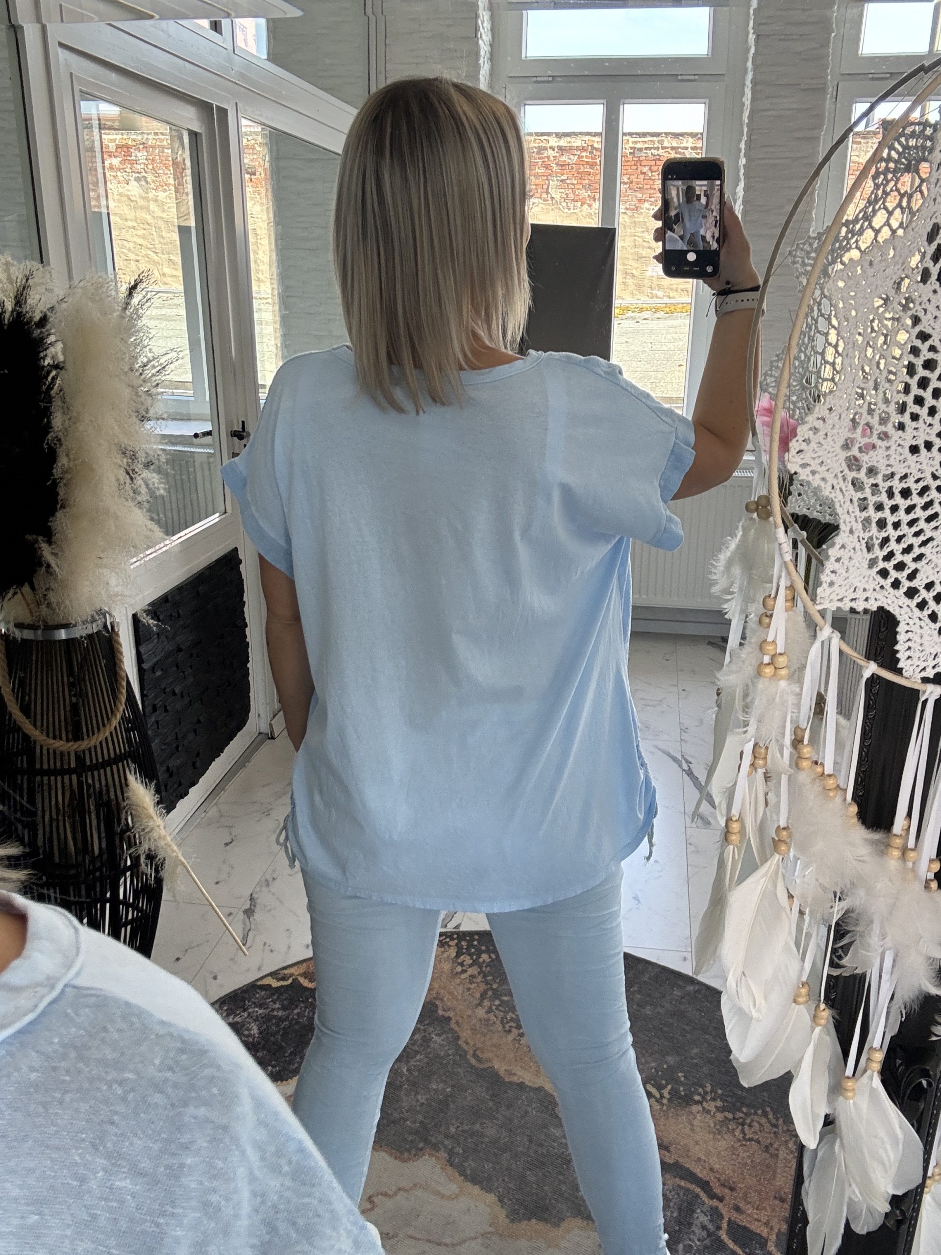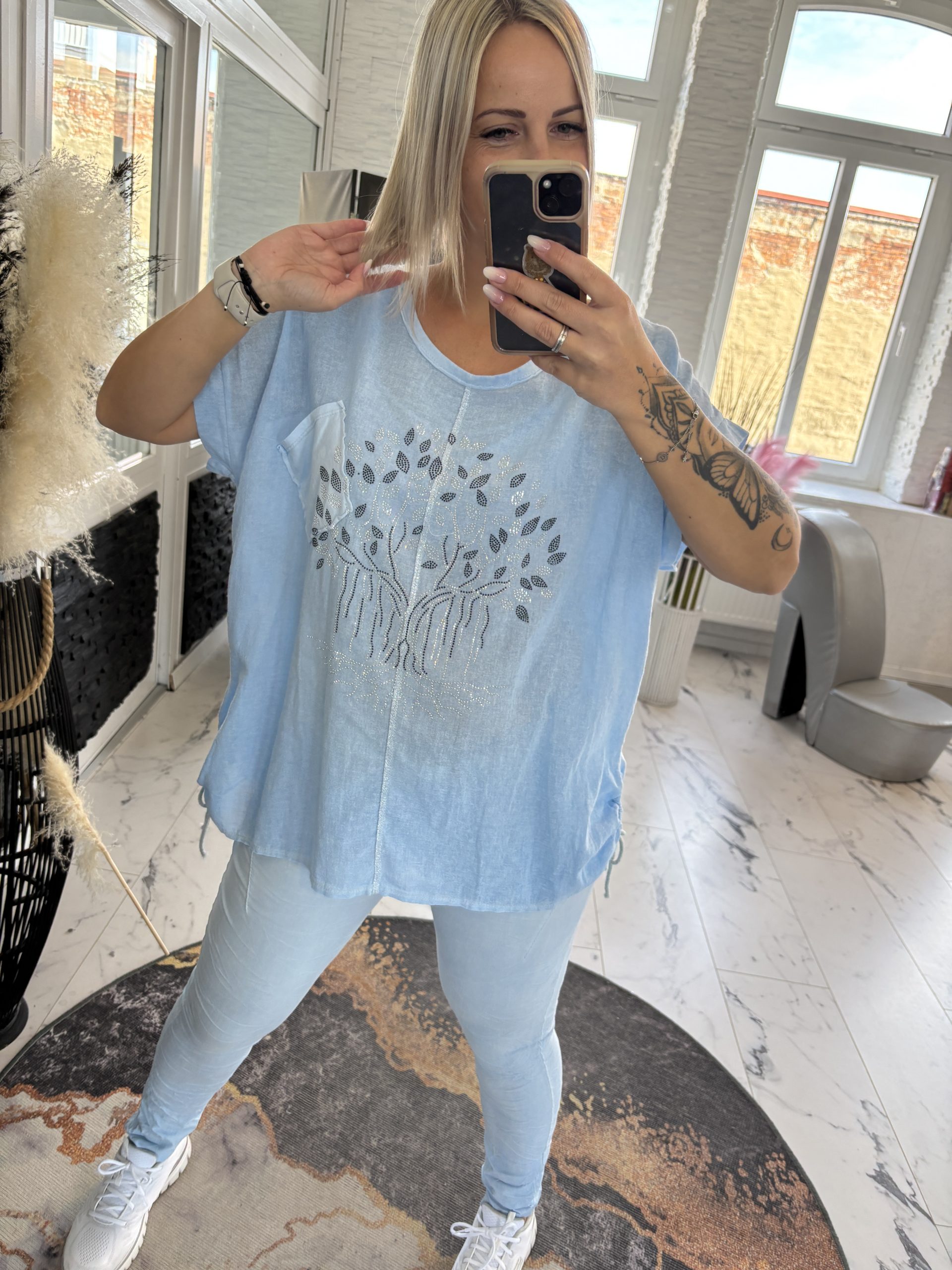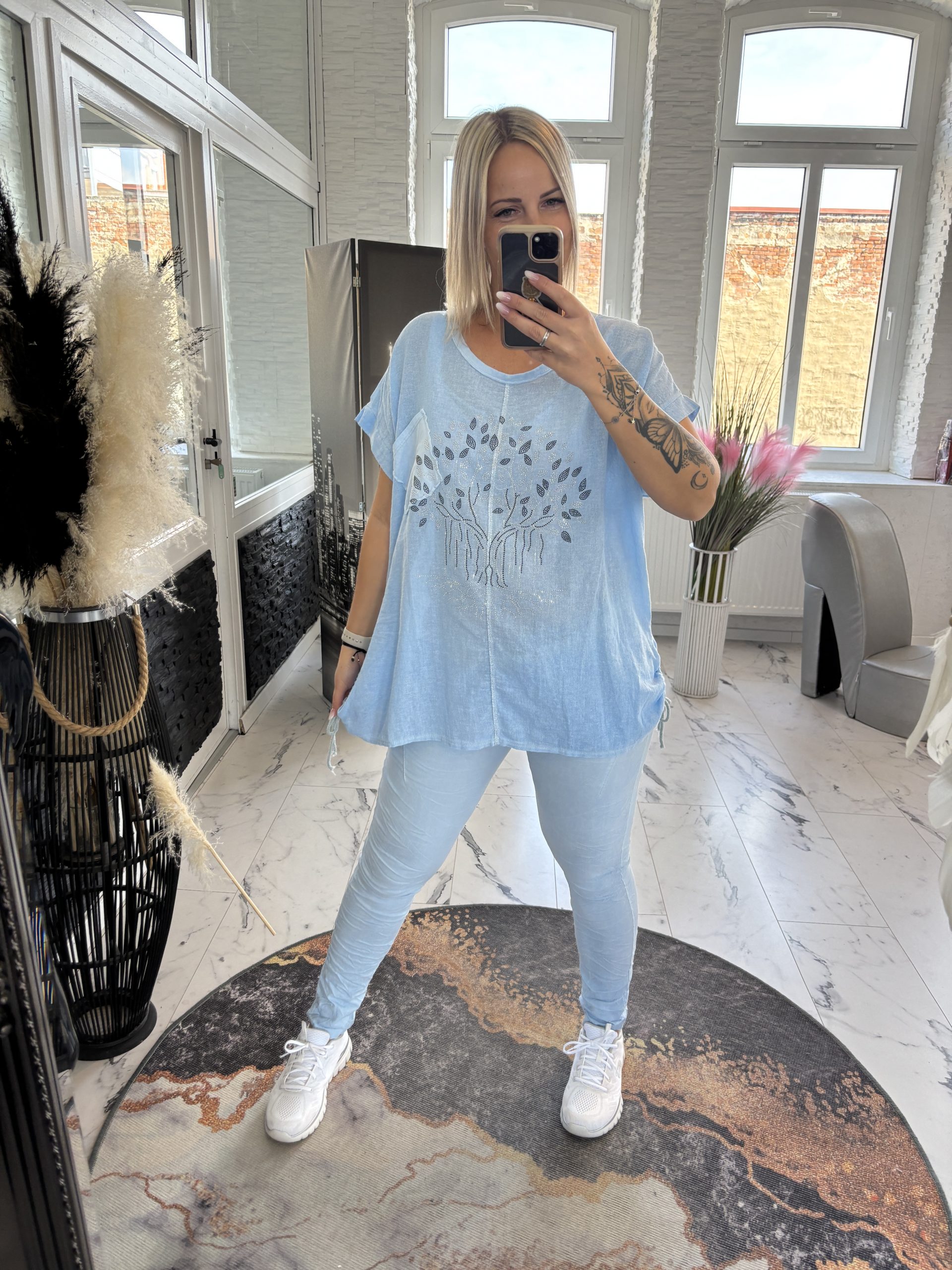 Leinen T-Shirt mit Glitzer Lebensbaum Print