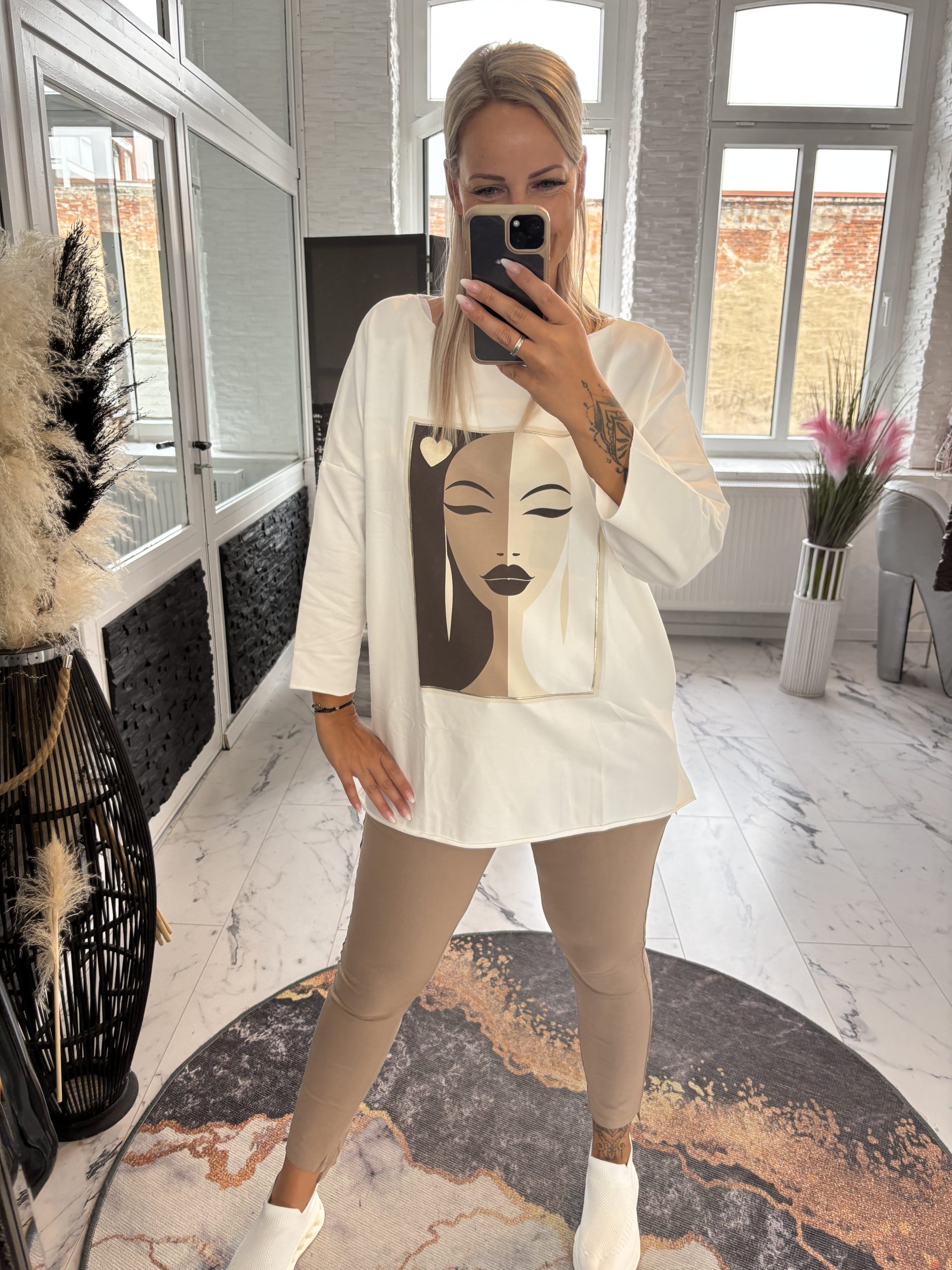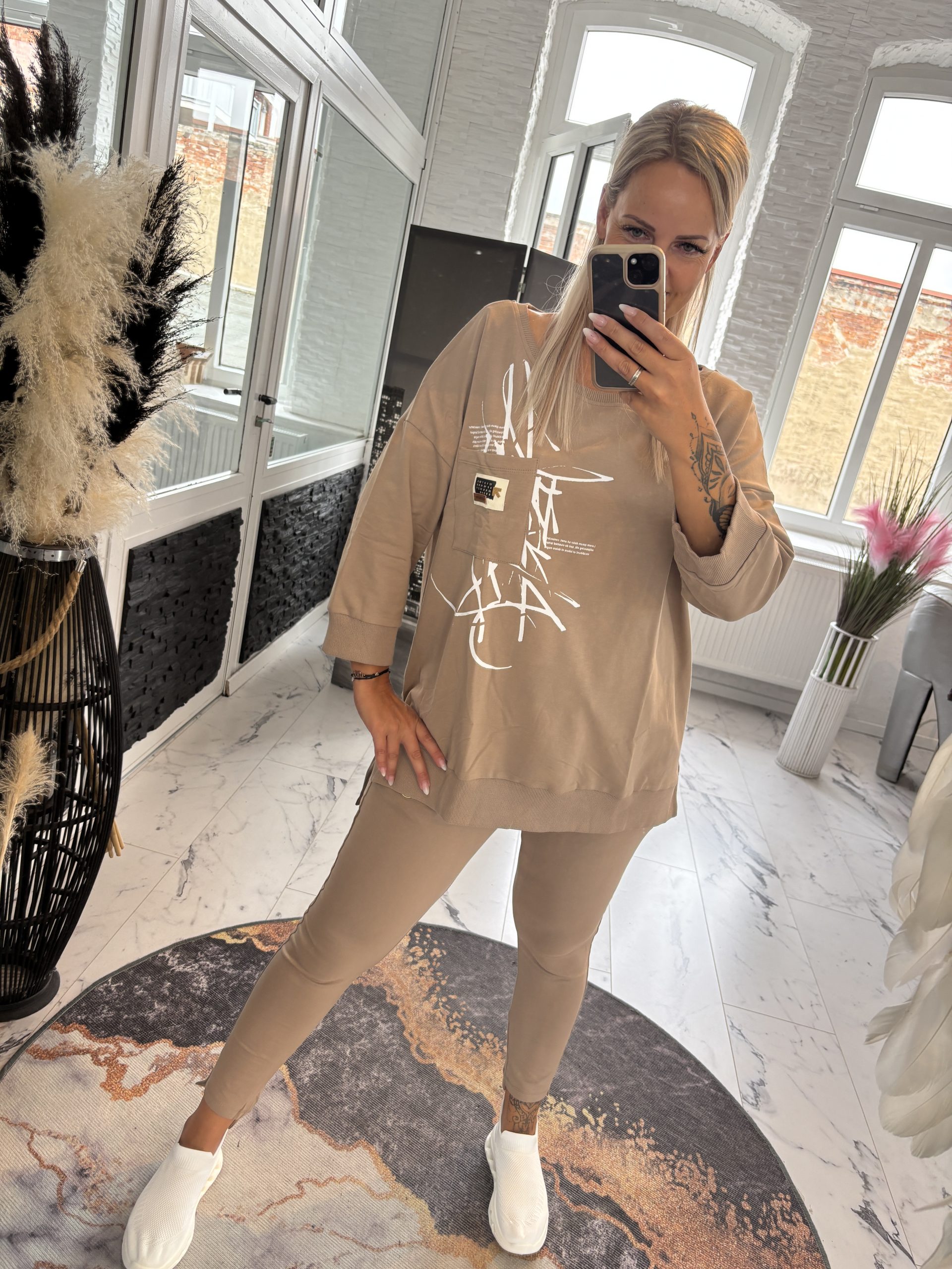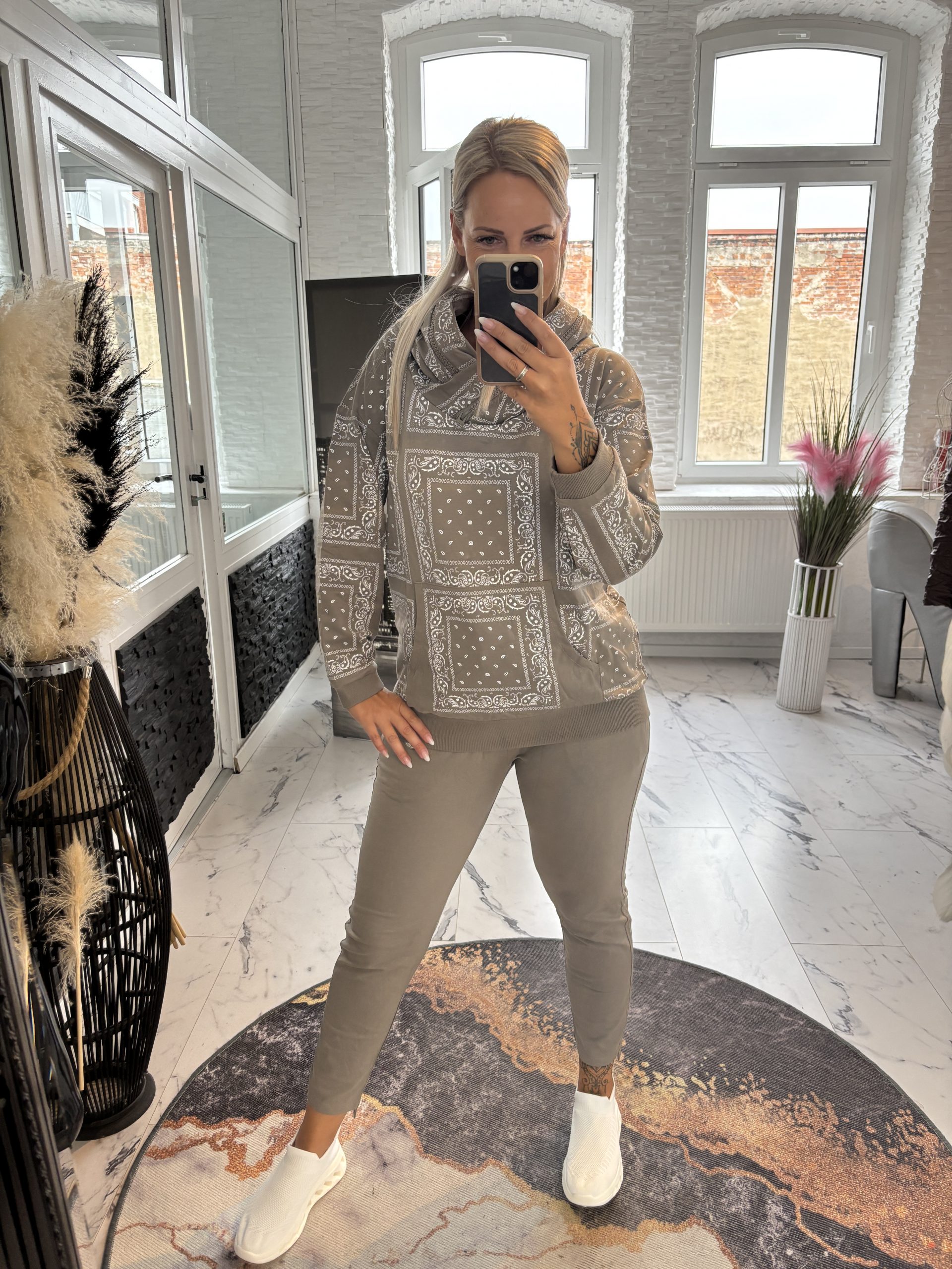 Ausführung wählen Dieses Produkt weist mehrere Varianten auf. Die Optionen können auf der Produktseite gewählt werdenMegi Hoodie Cappuccino Blätter S/M (38-42) L/XL (40-44) #1145