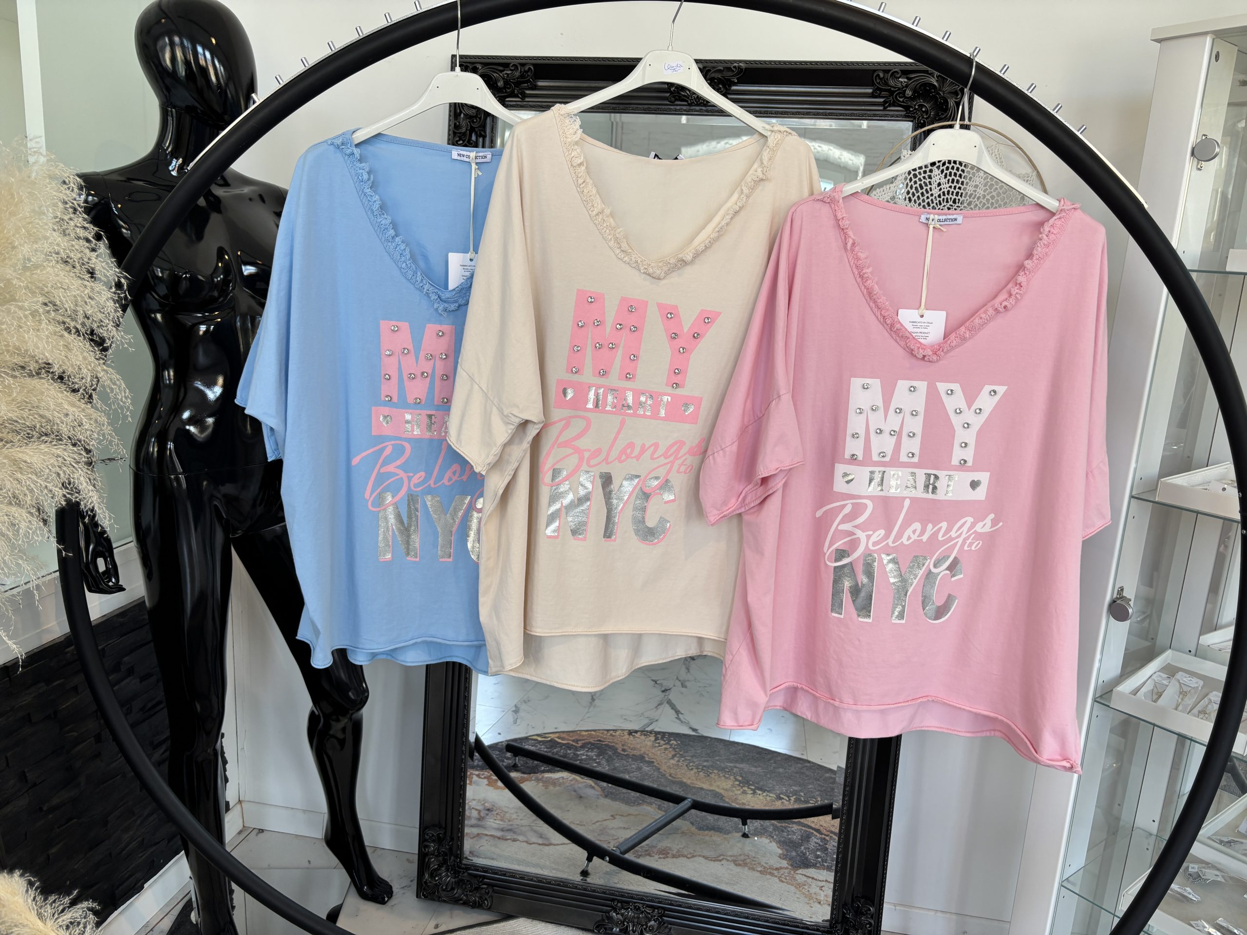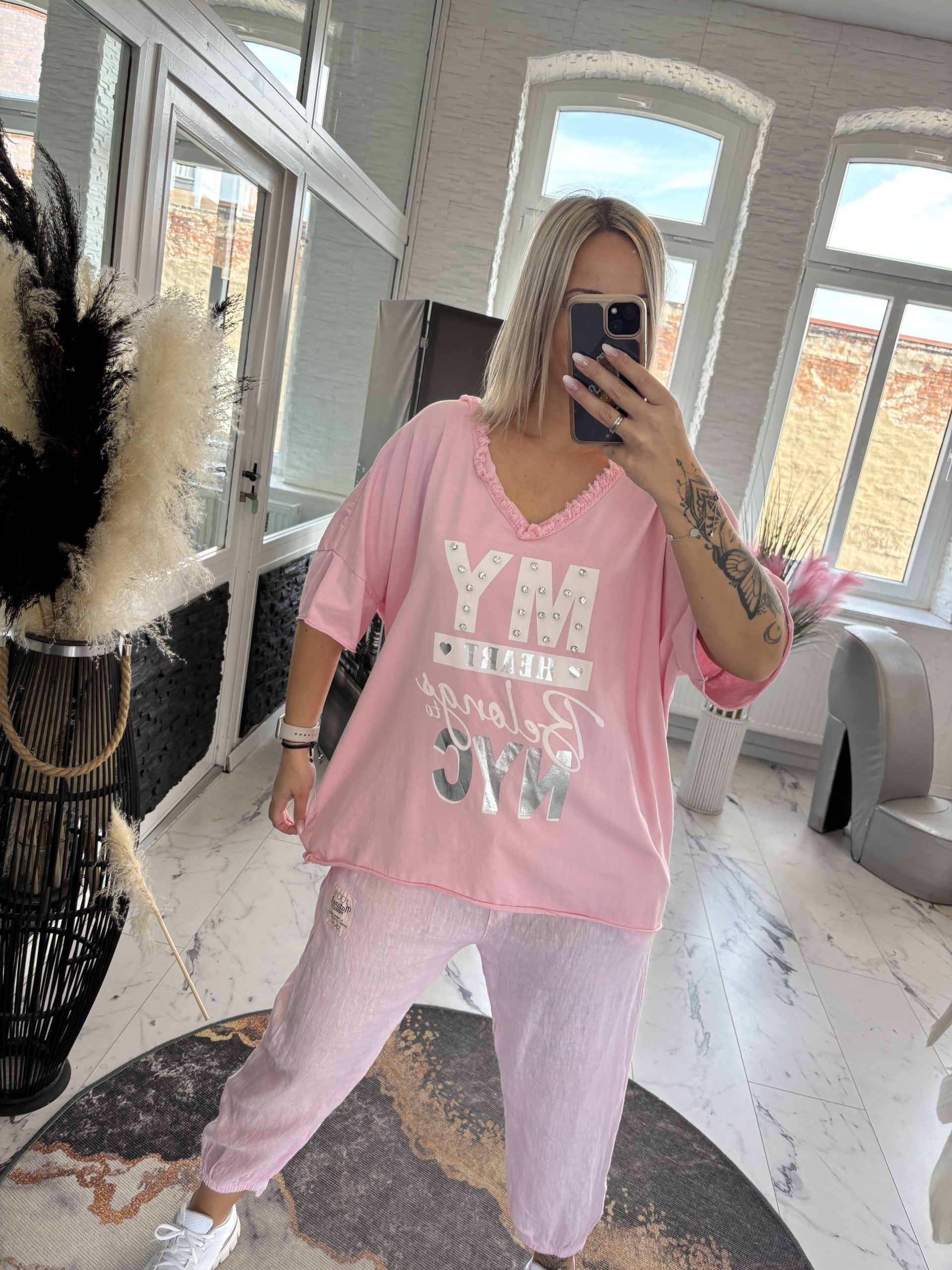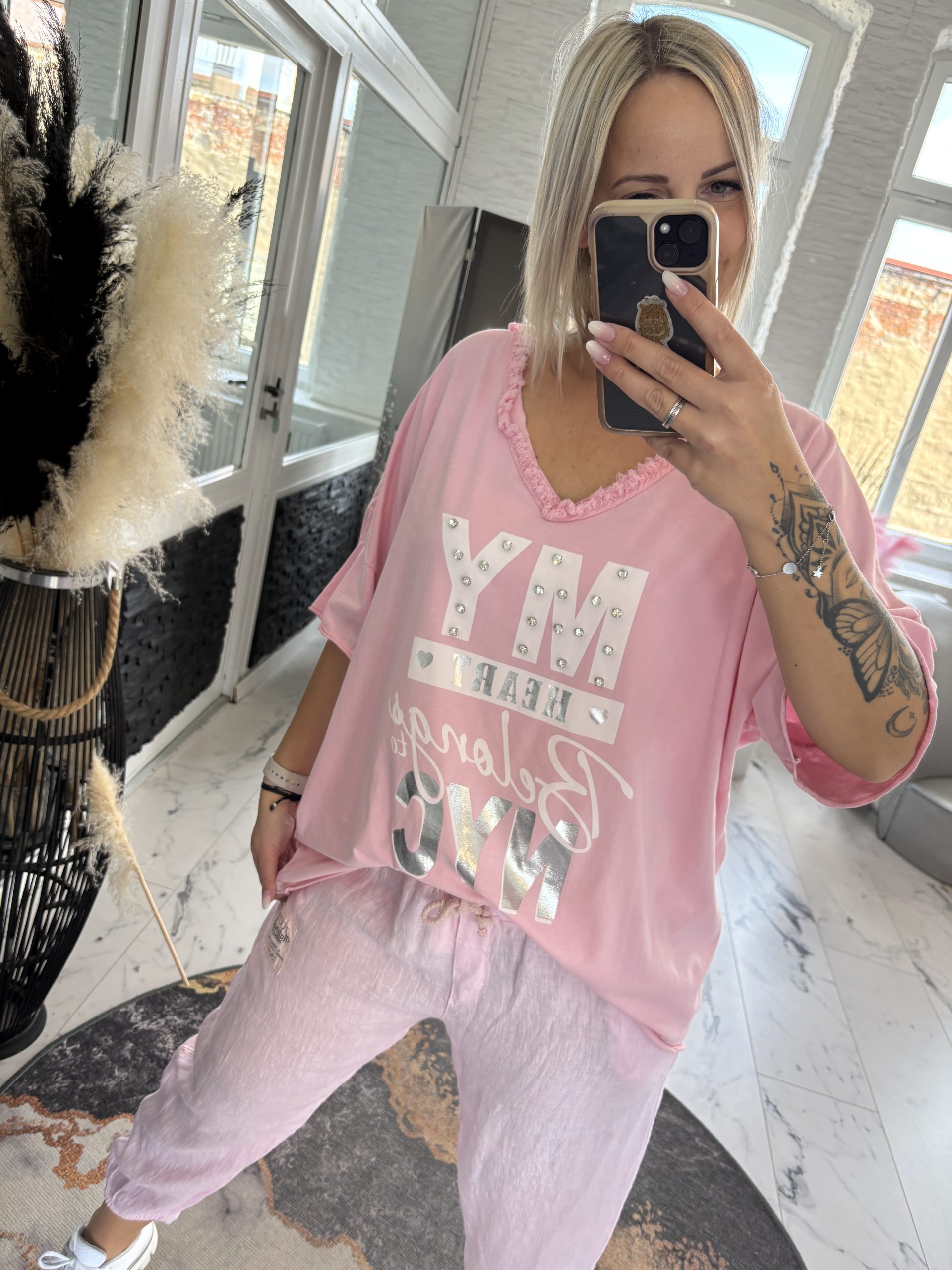 My Heart Shirt mit Fransenkante und Glitzersteine