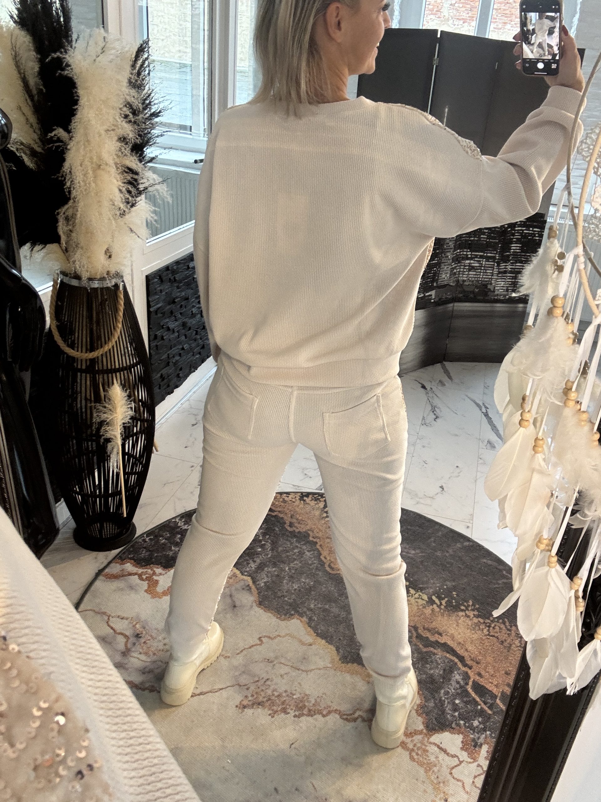 Zweiteiler aus Samt Cord Material und Samt Pailletten Optik