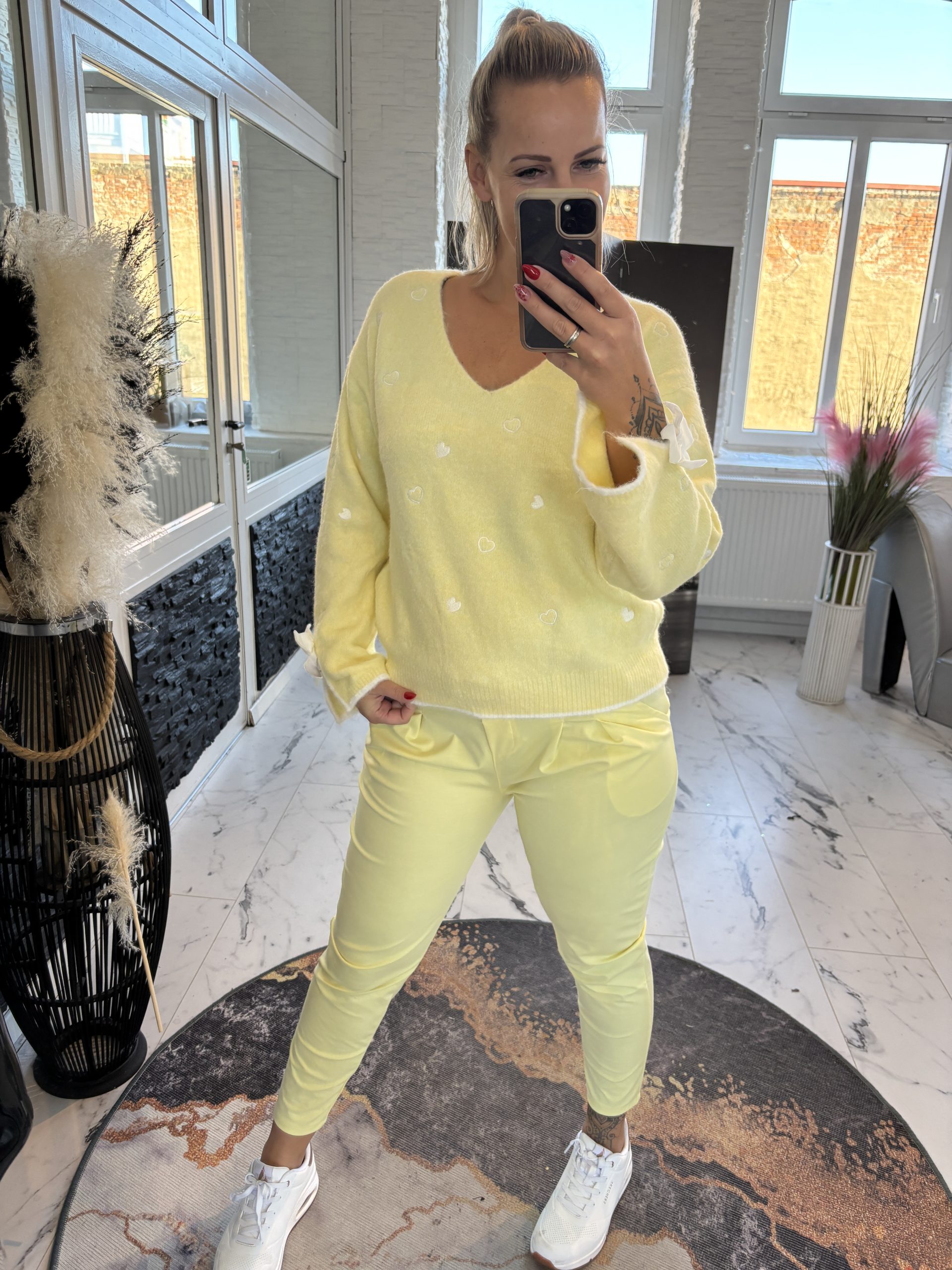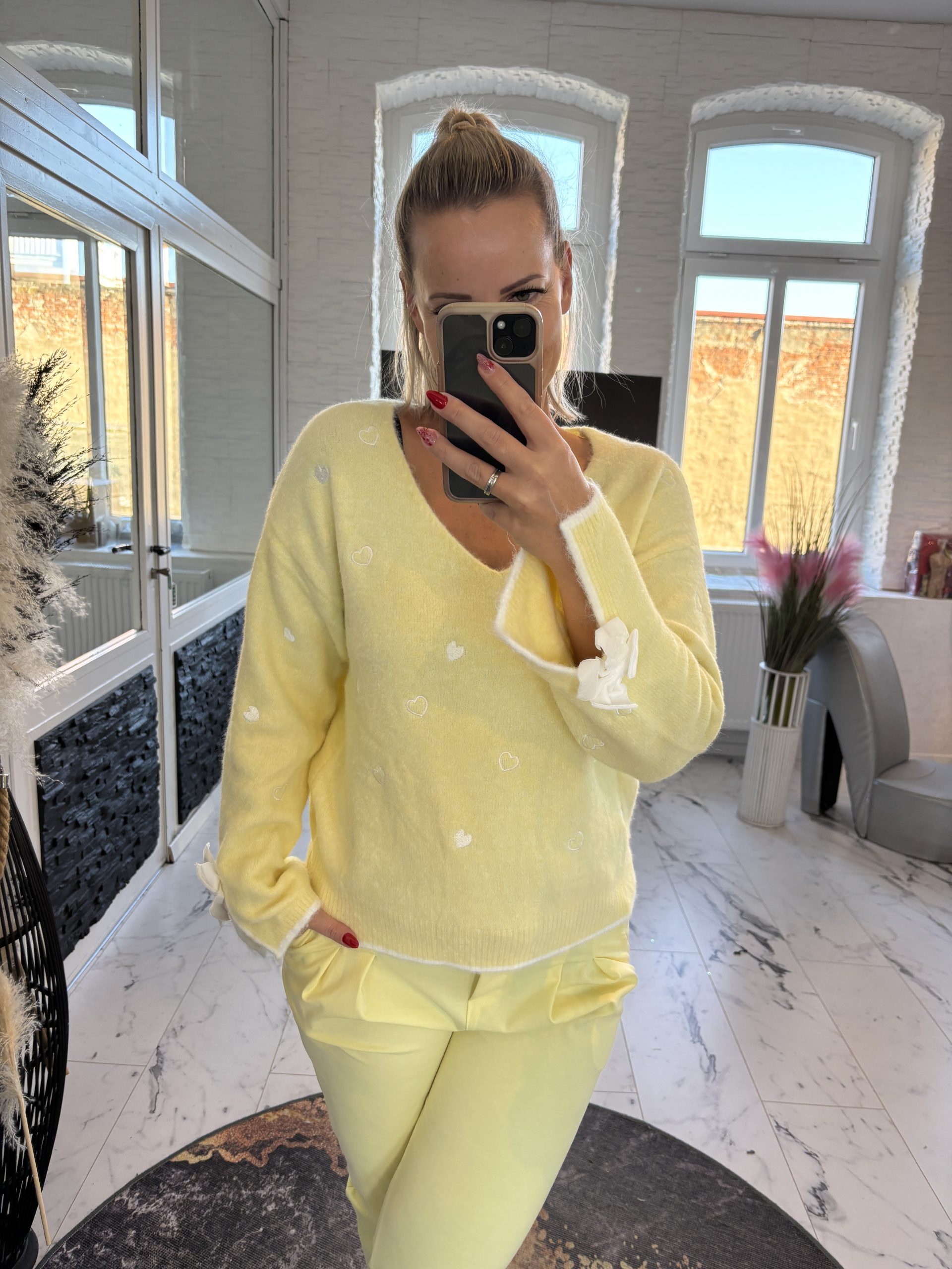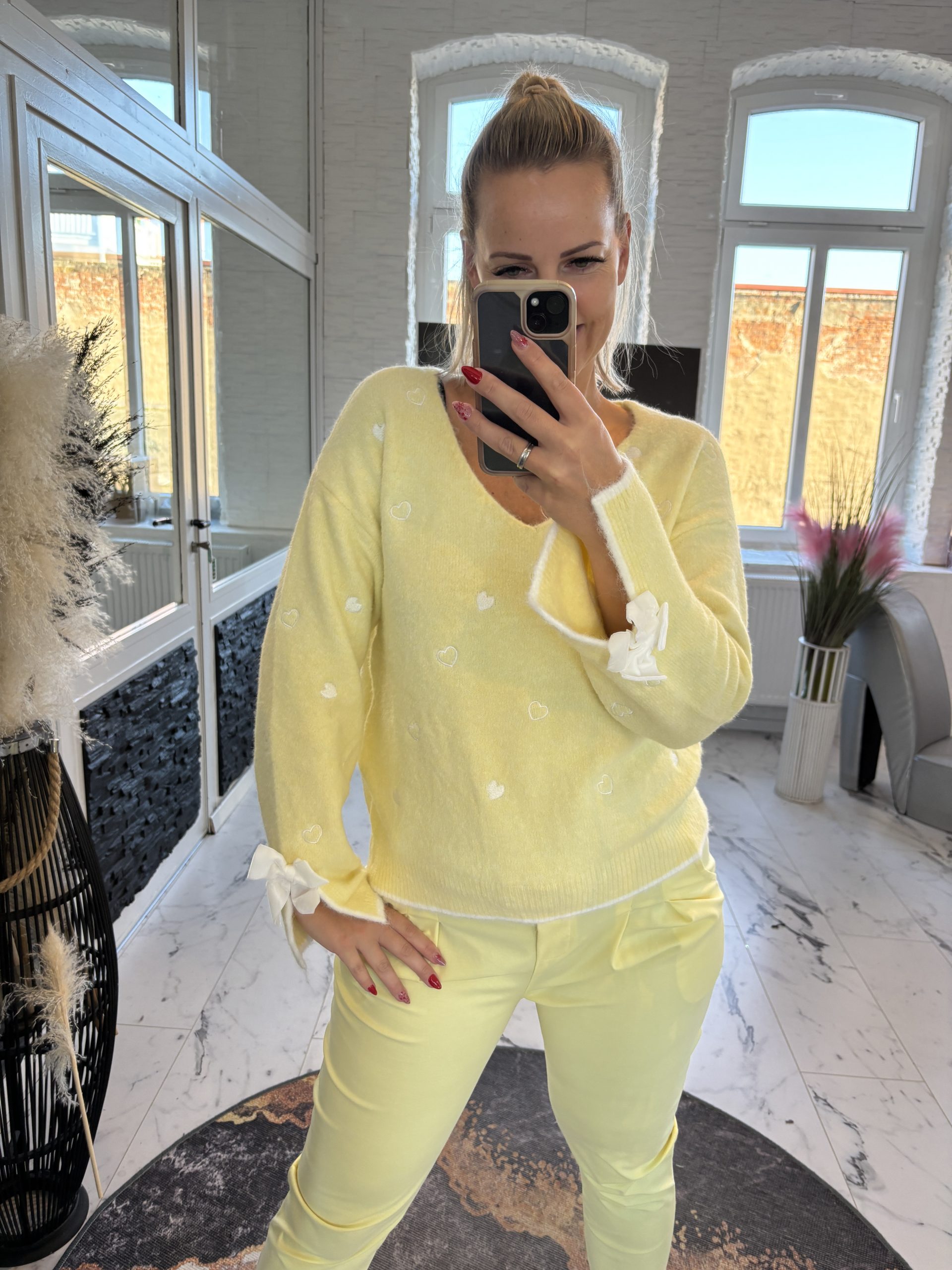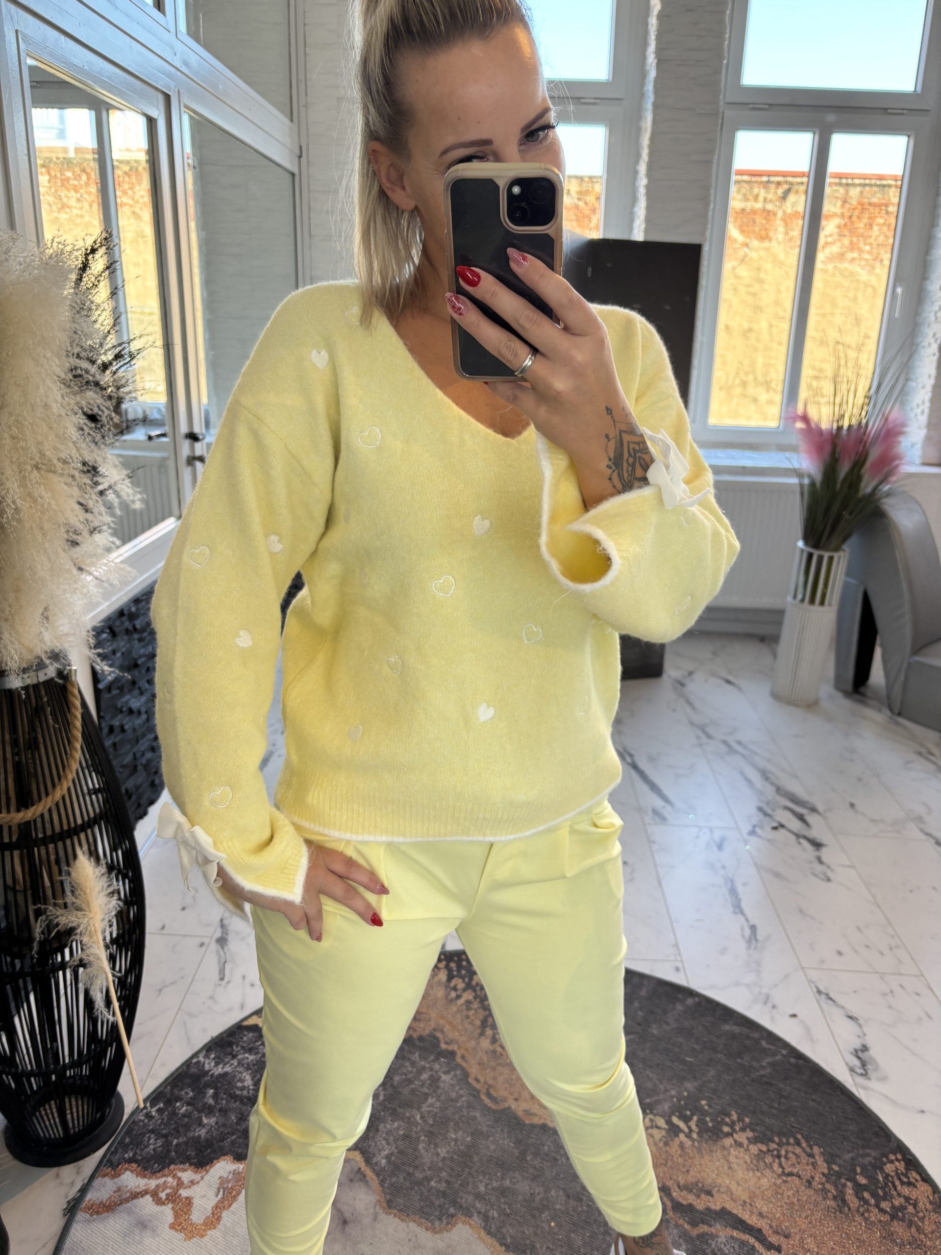 Paris Pulli Herzen mit Schleife Zitrone one Size 38-42 #1146