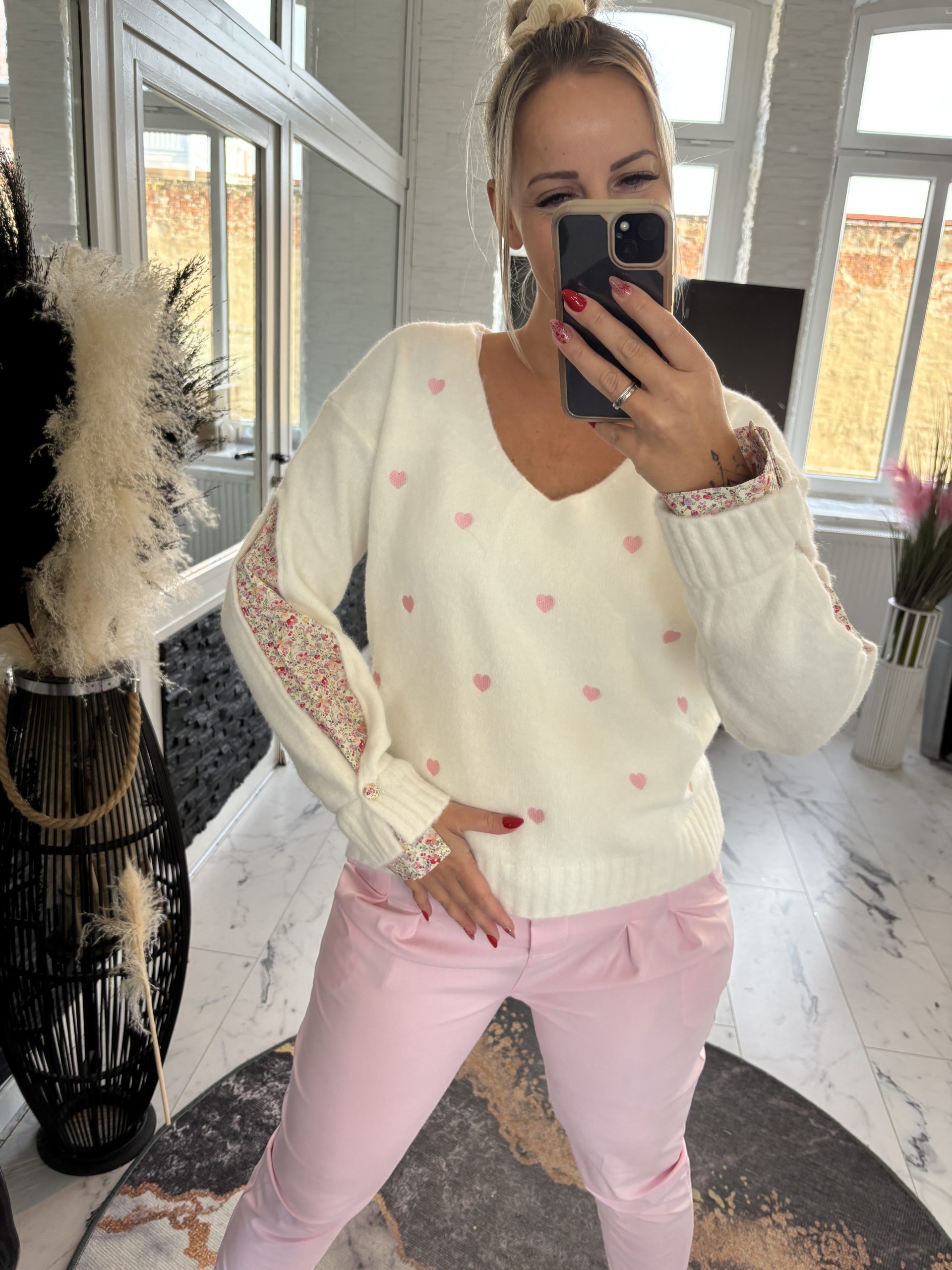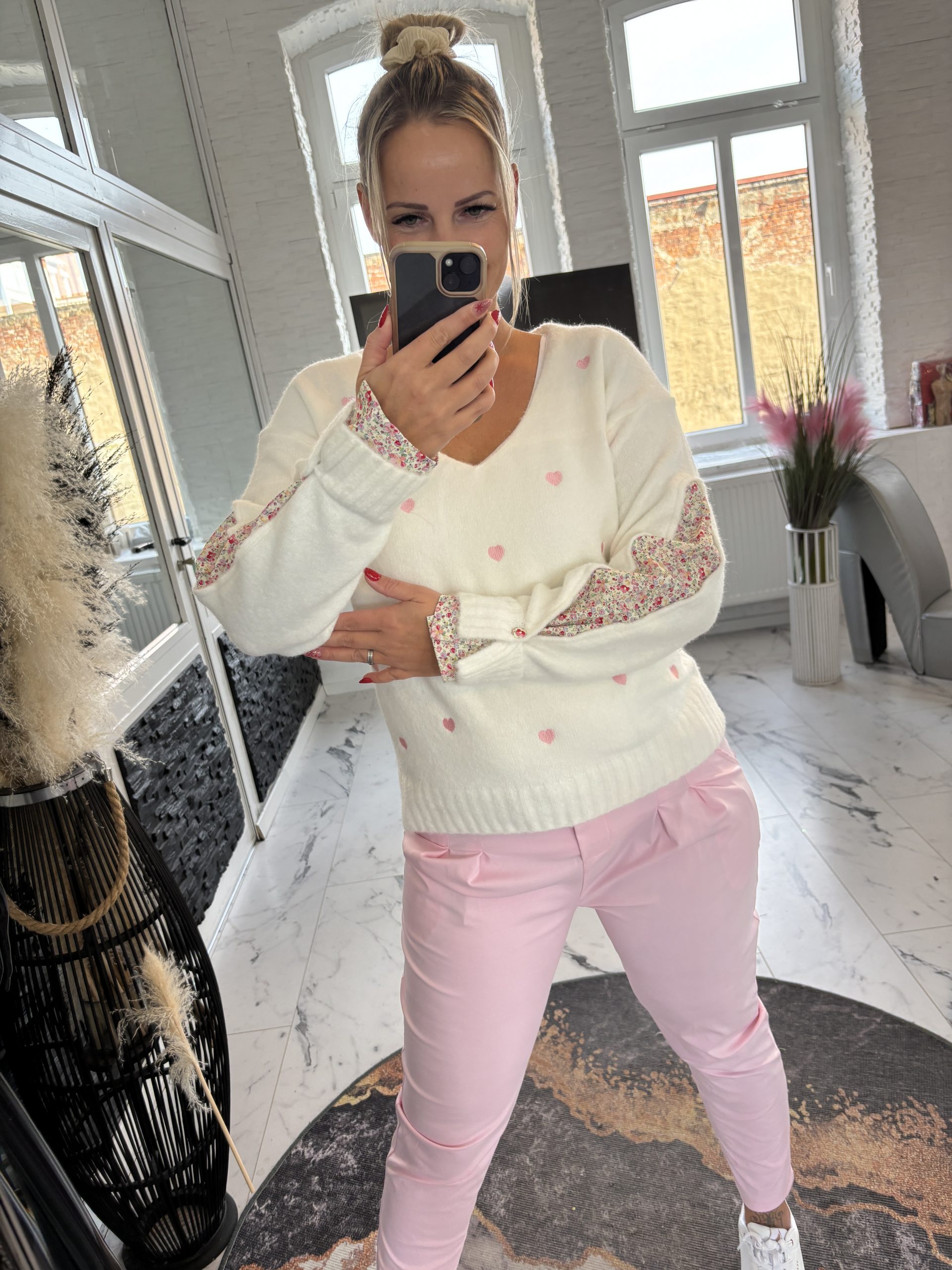Paris Pulli Rosa Herzen mit Blumenärmel one Size 38-42 #1127