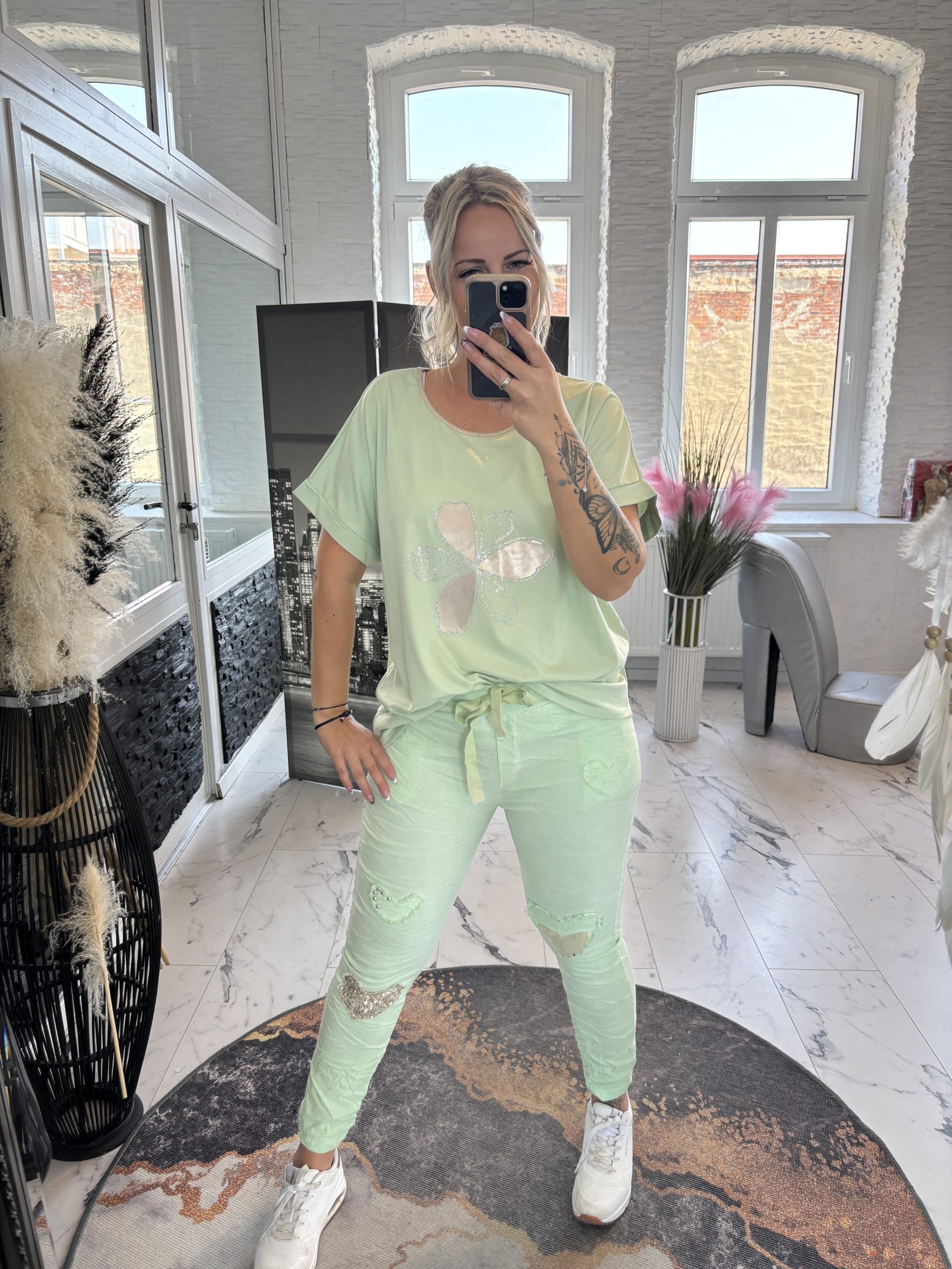 Lindgrün, Schwarz, Ecru