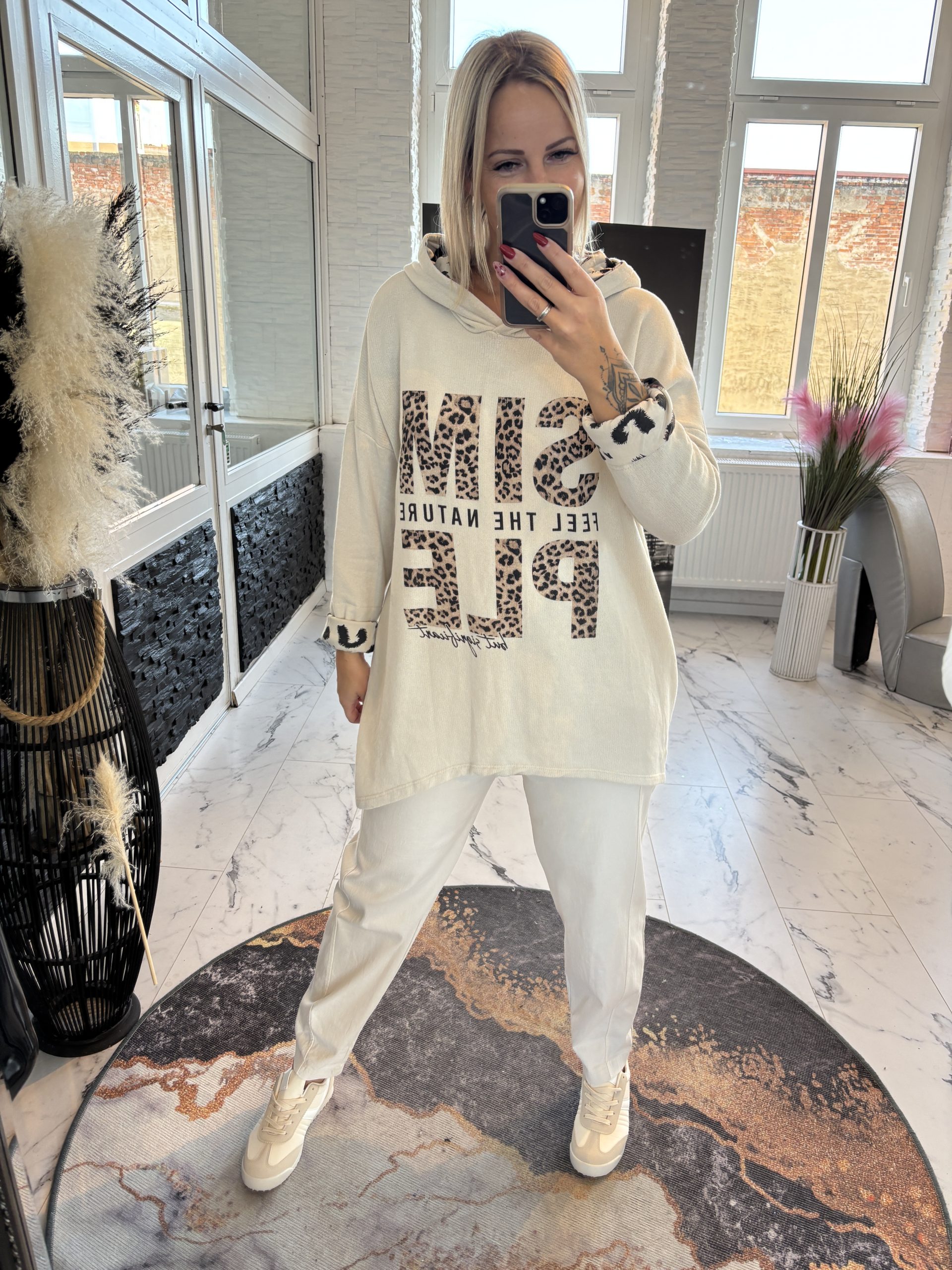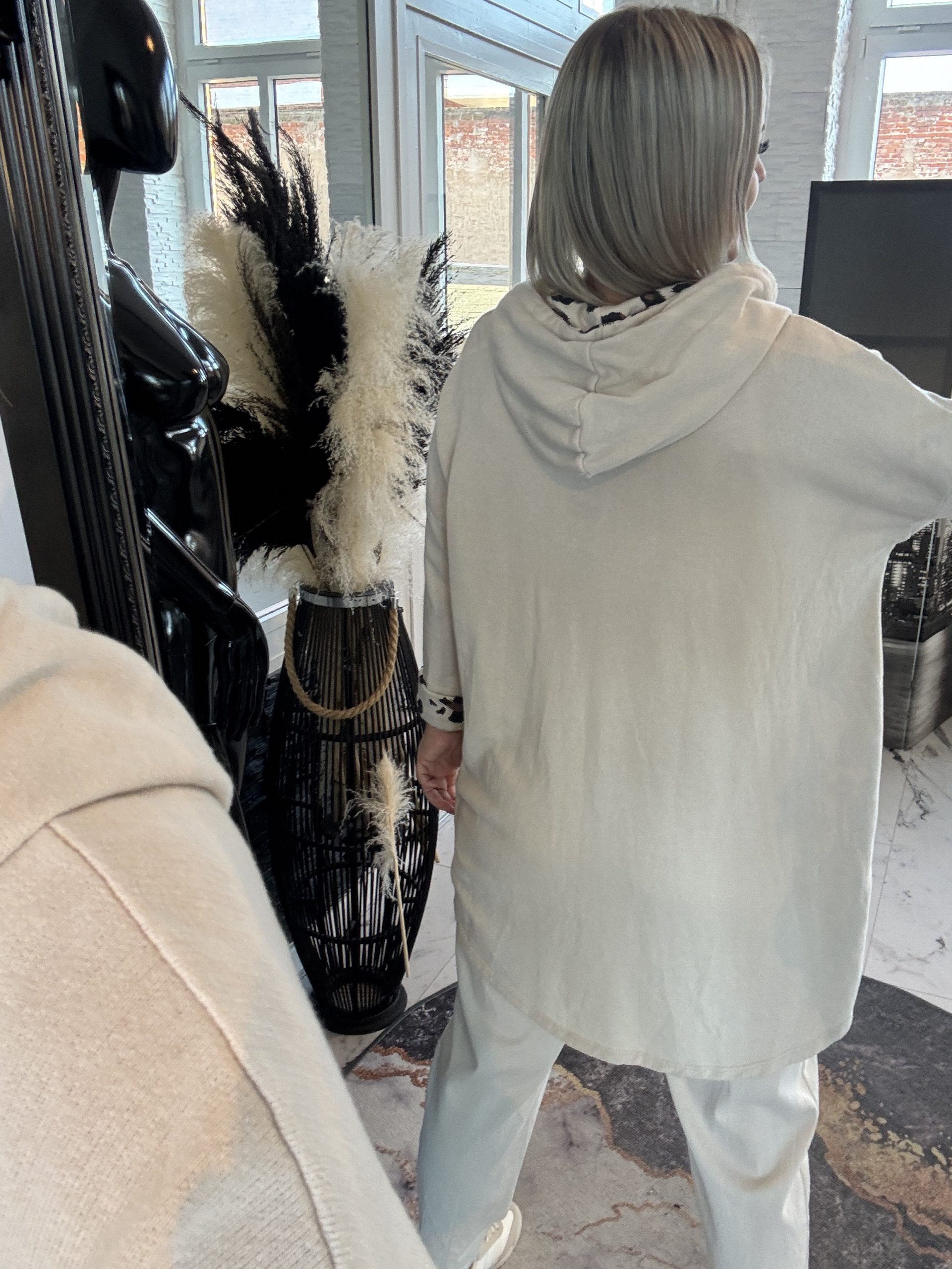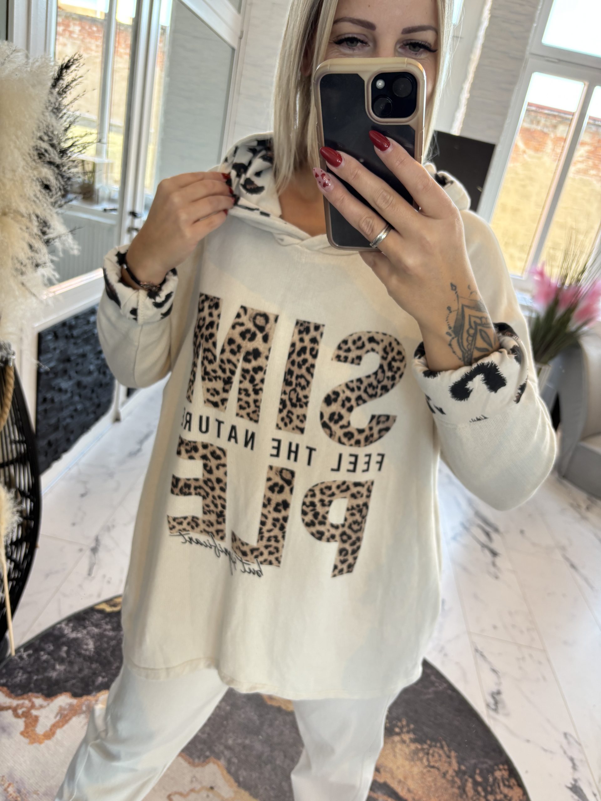 Longshirt mit Leo Print und Kapuze