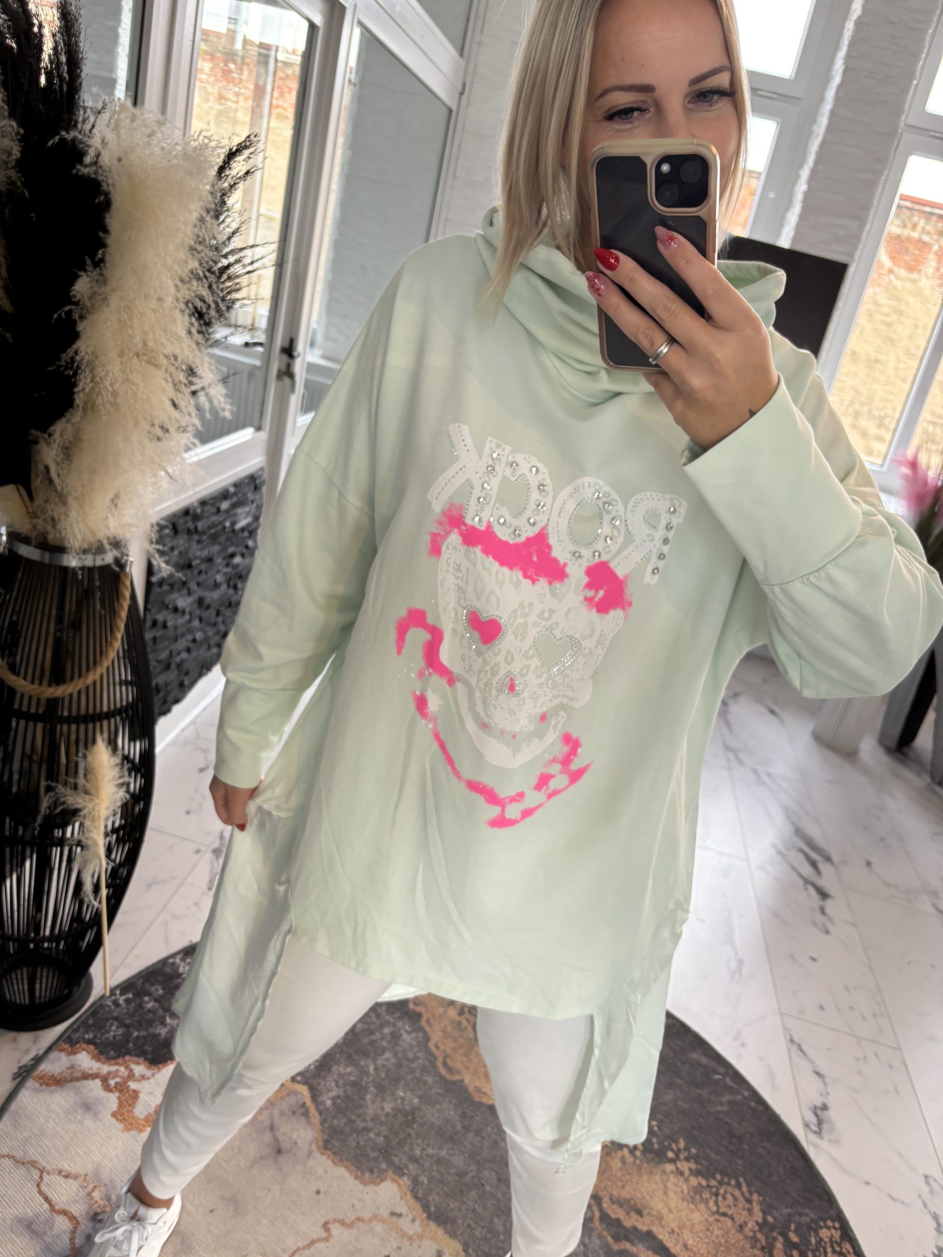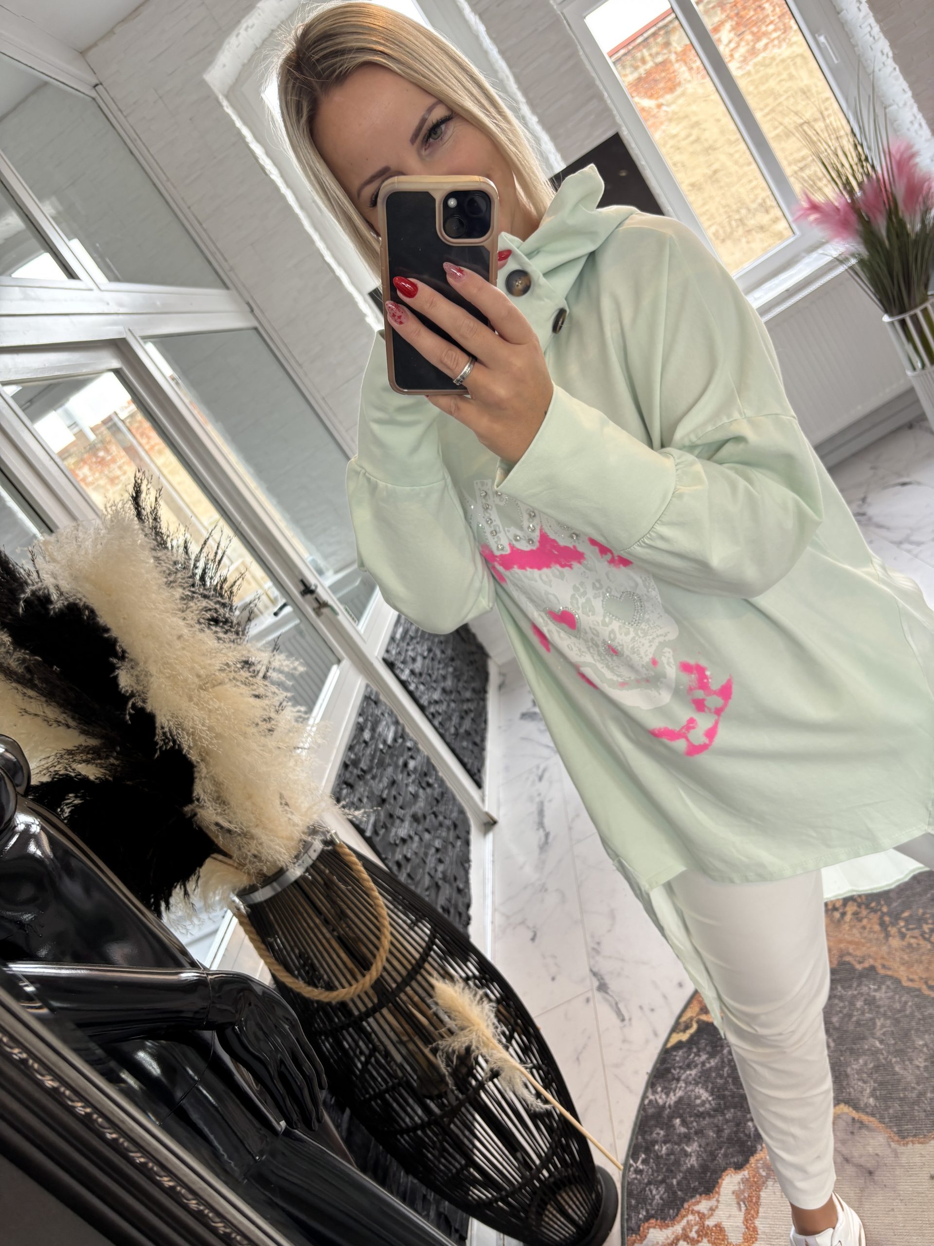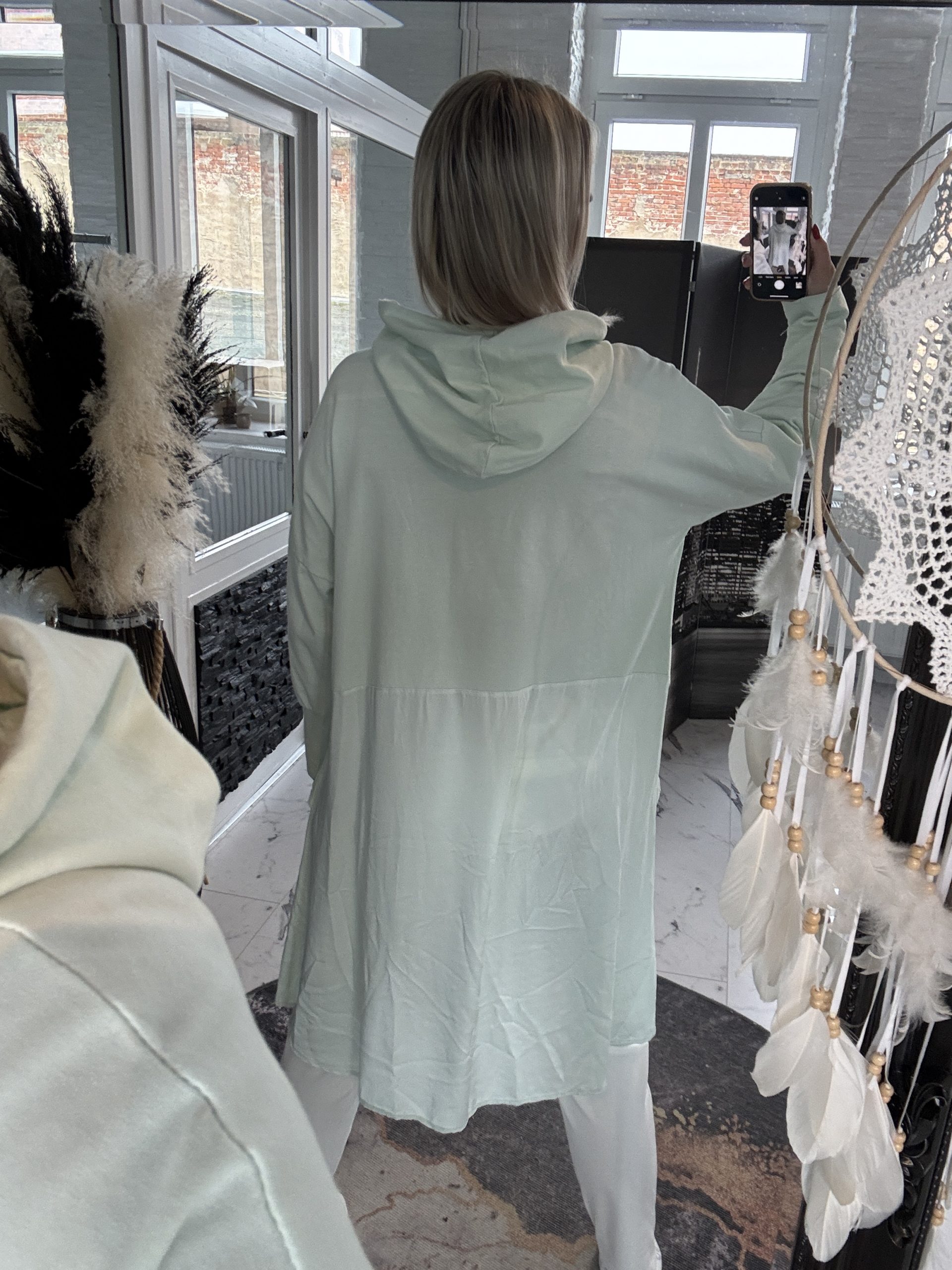 In den WarenkorbCreme Bouclé Savage Longpulli Glitzer Kapuze one Size 38-46 #1058