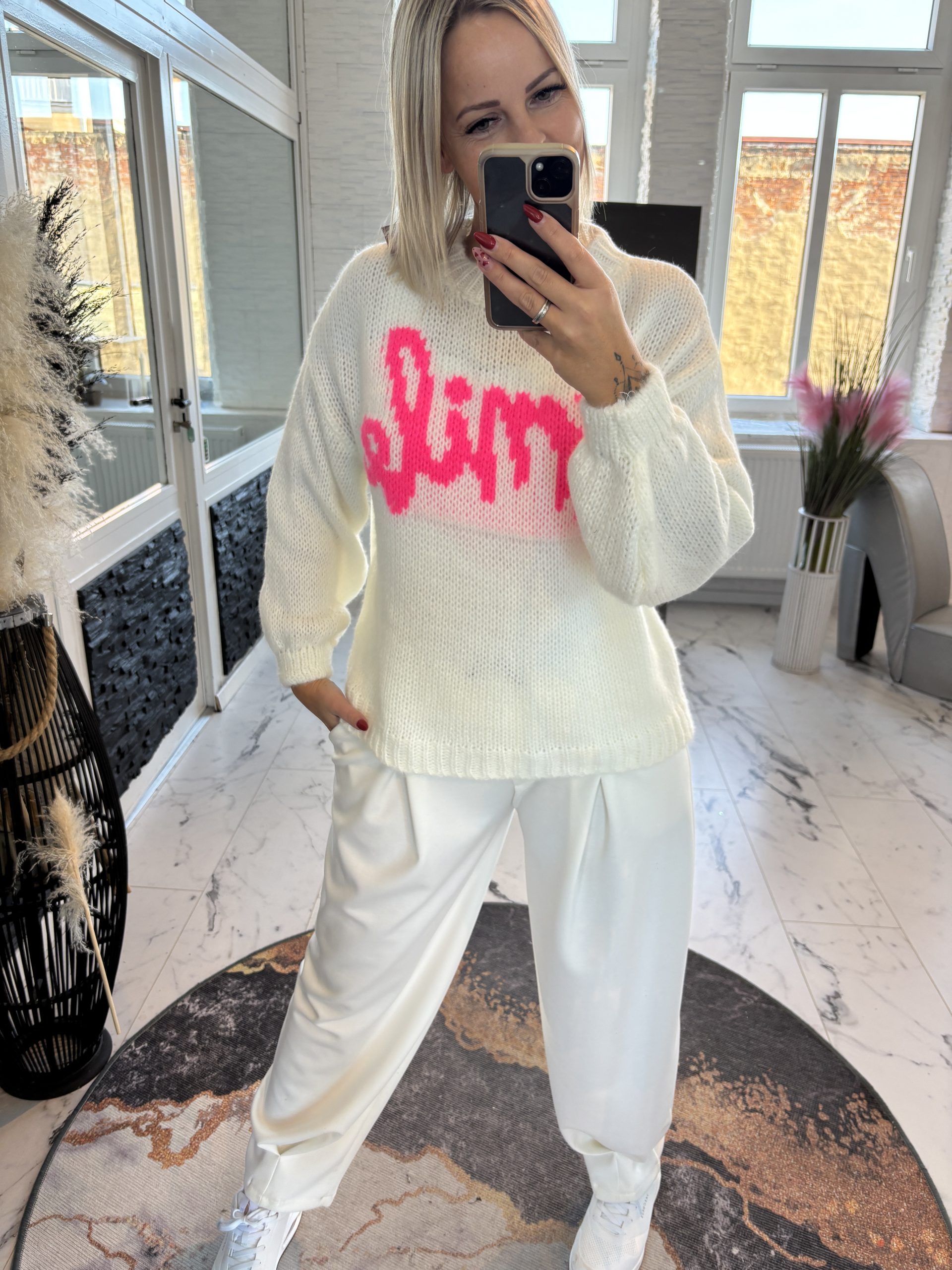 Strickpulli mit Neon Smile Schrift