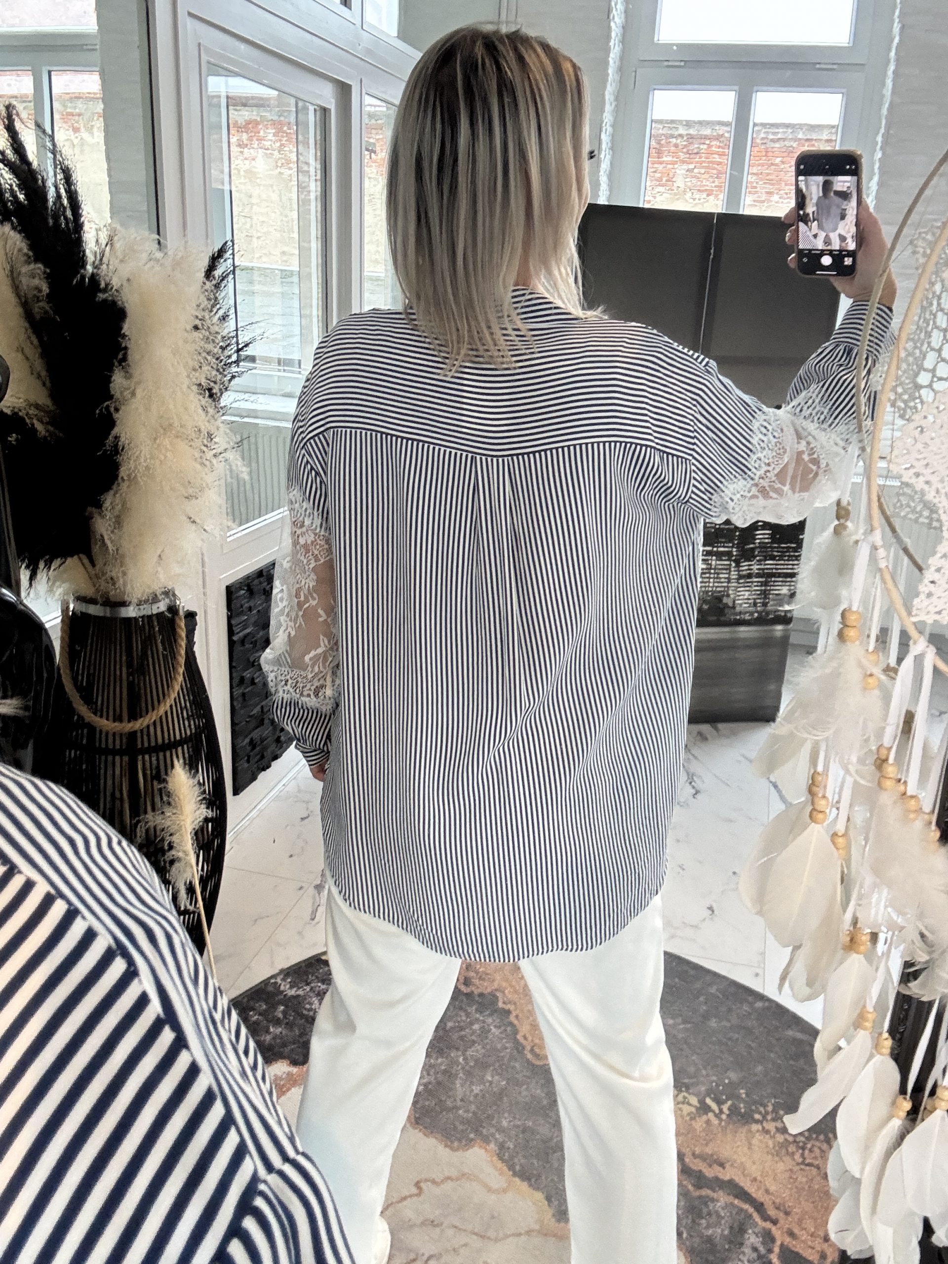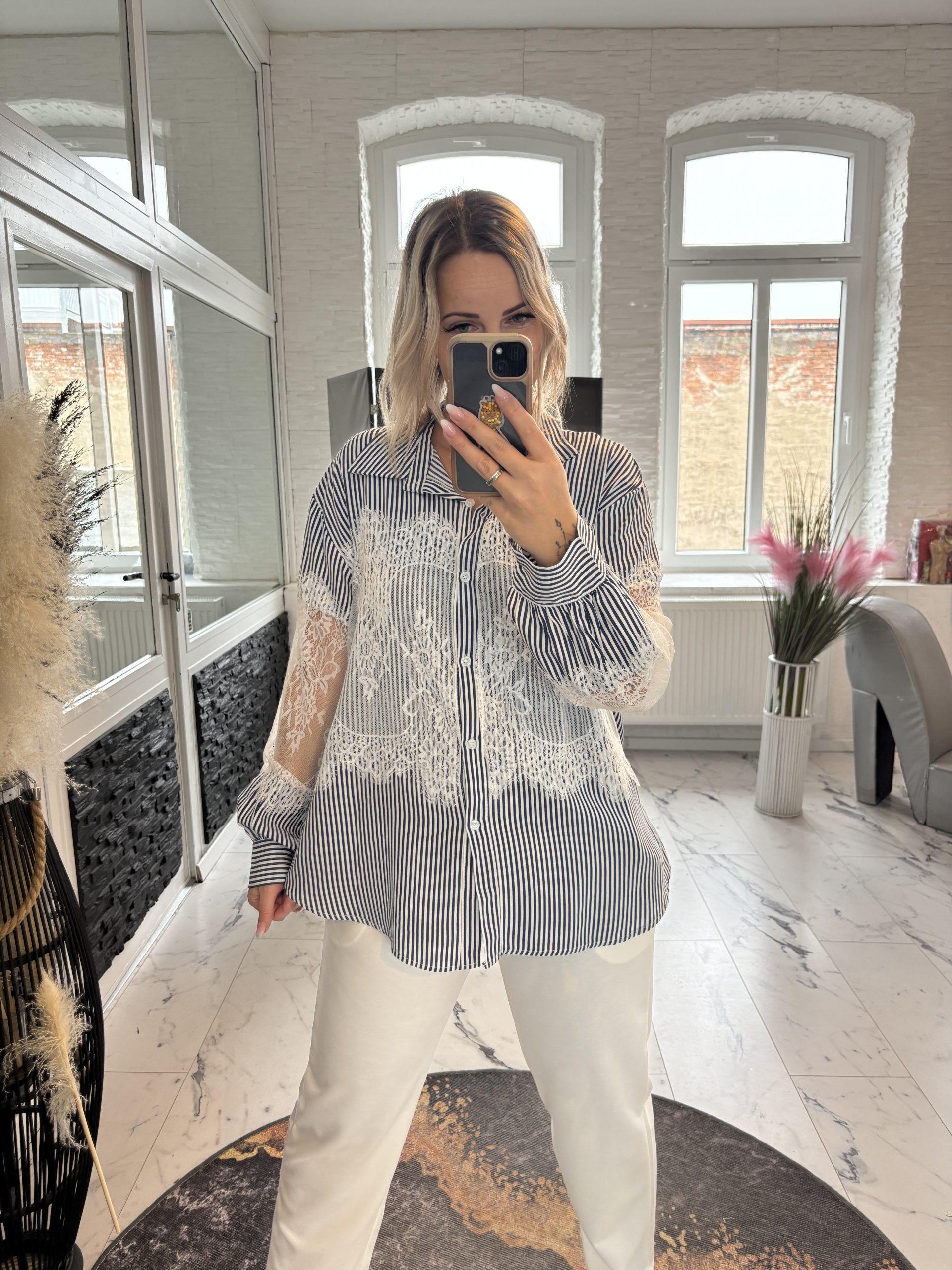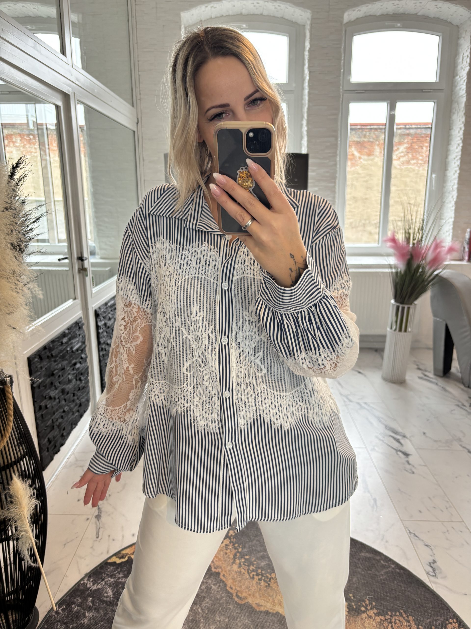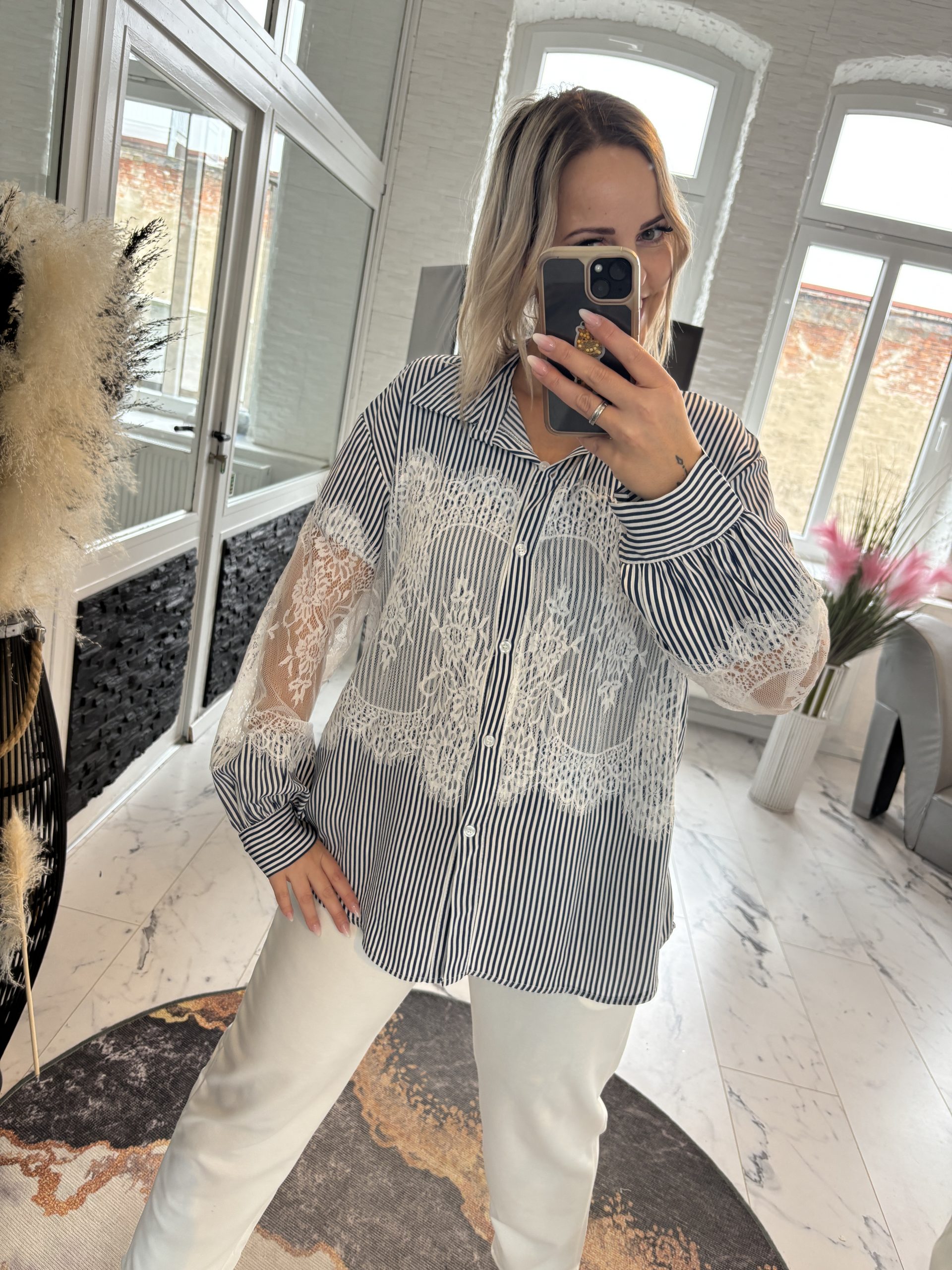 Spitzen Bluse Dolly Dunkelblau one Size 38-44 # 1076