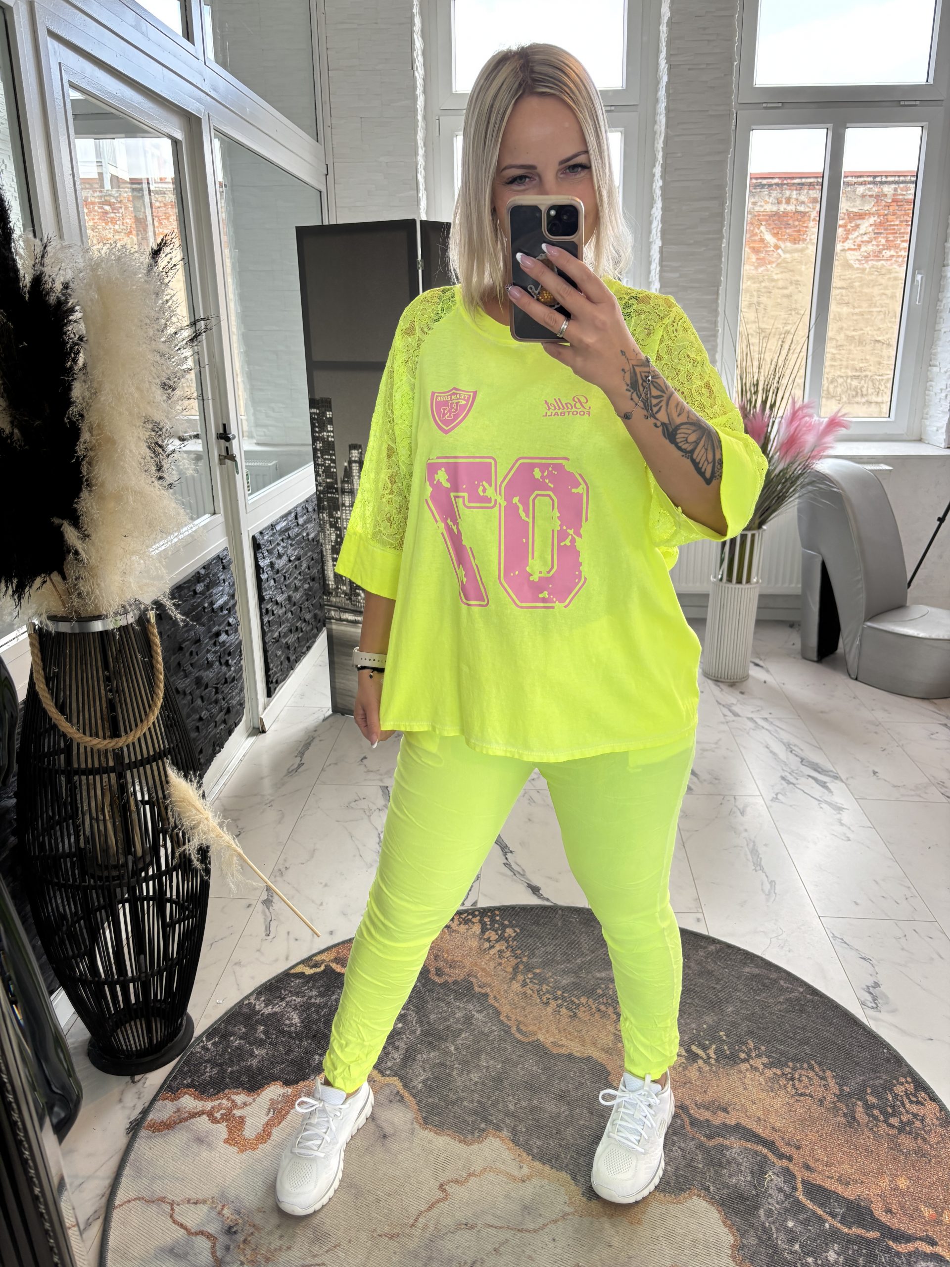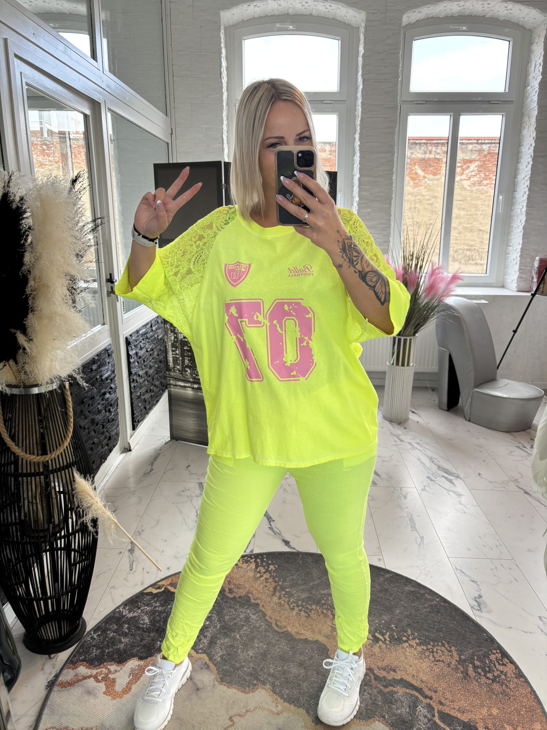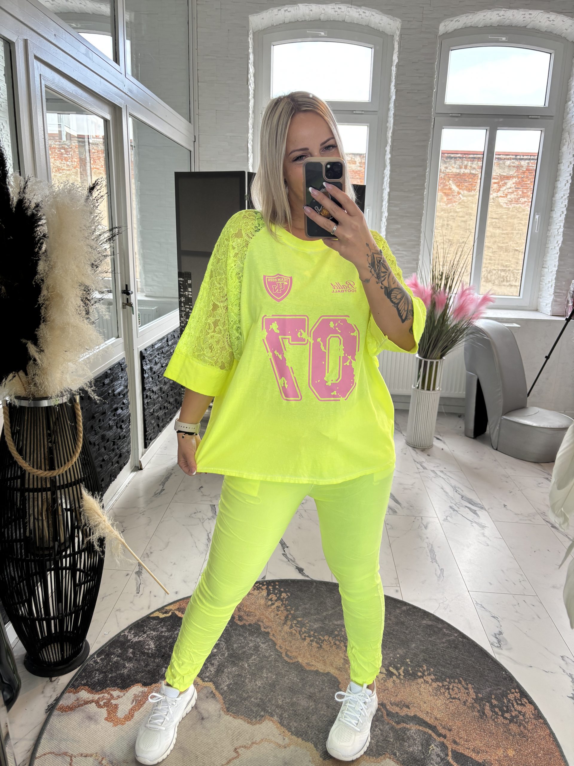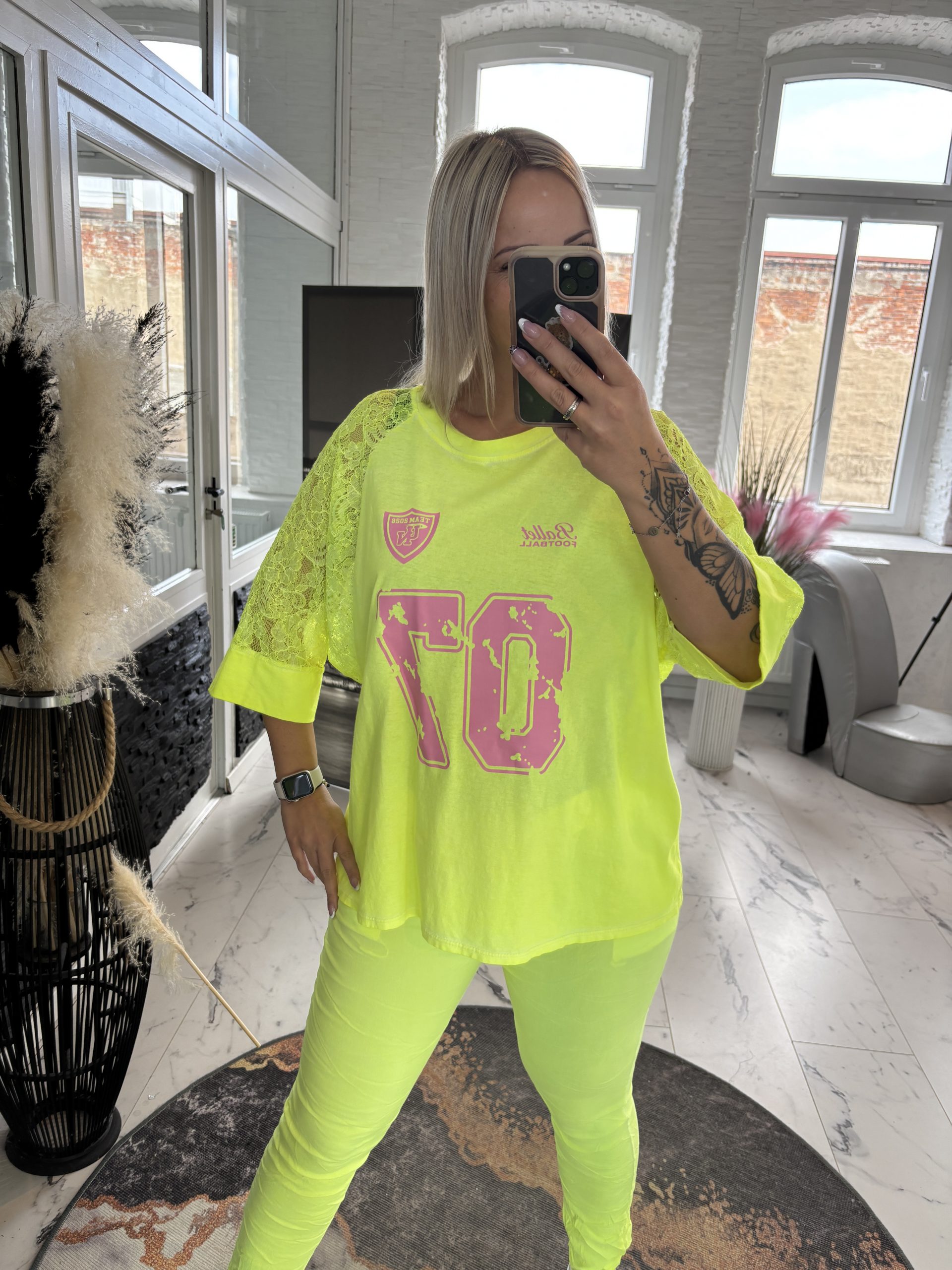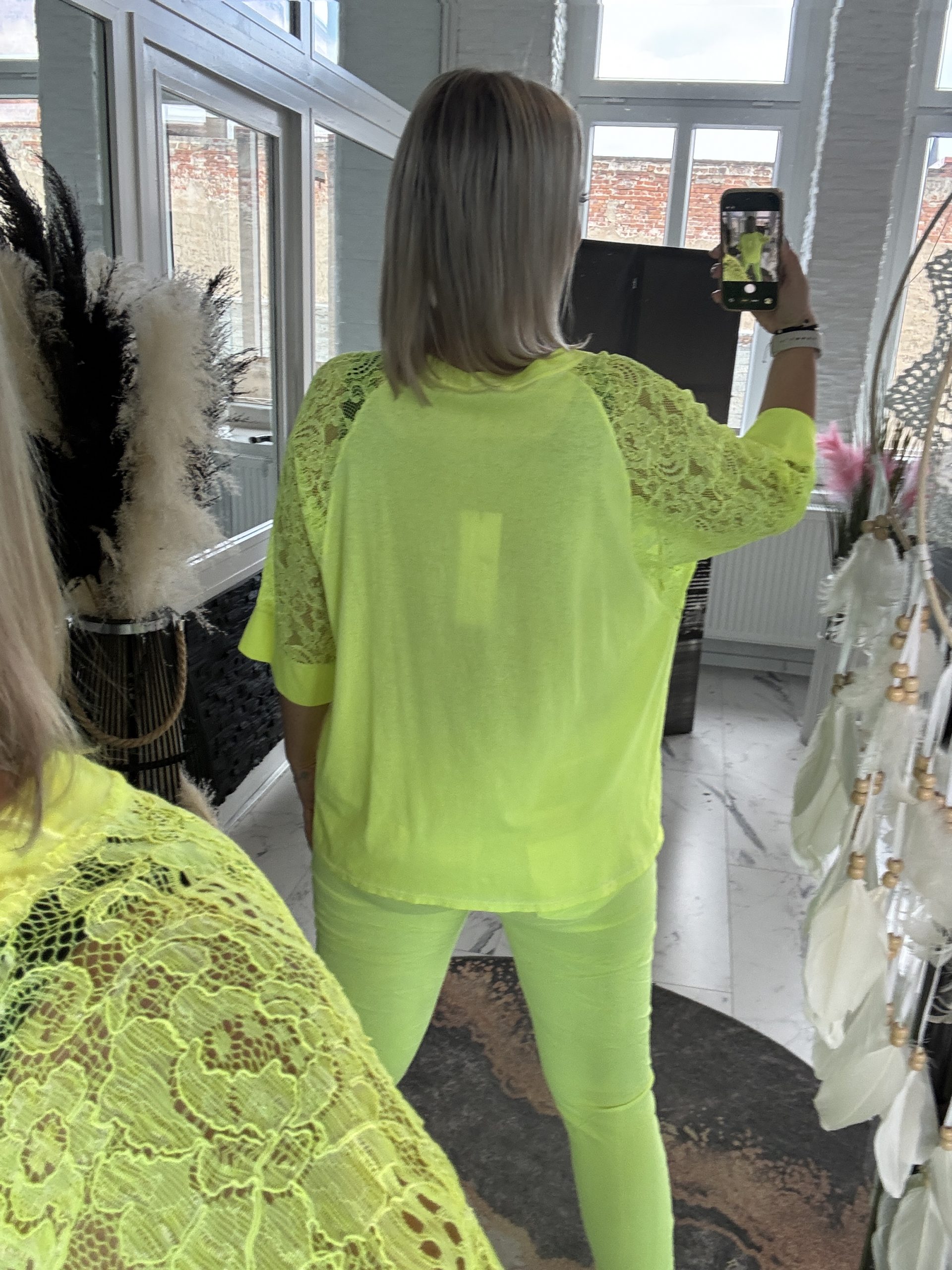 Spitzen Shirt 07 Neon Gelb one Size 38-44 #1059