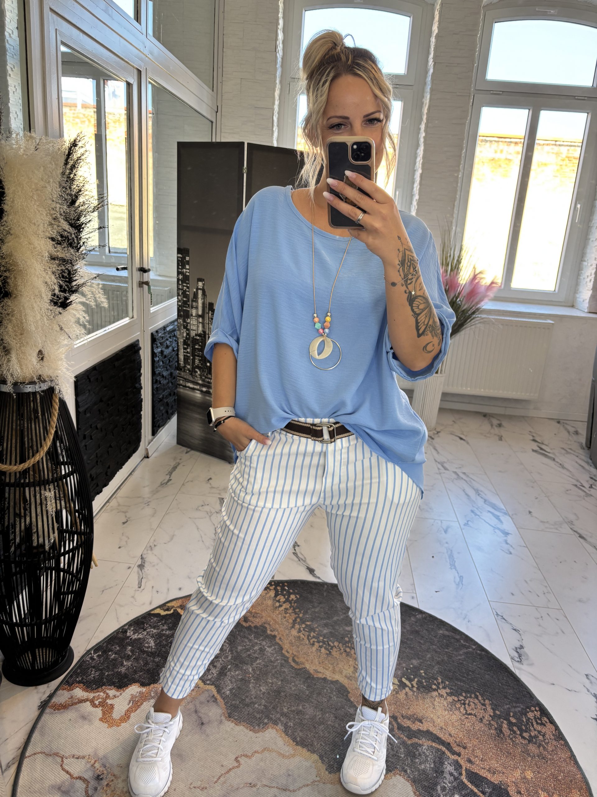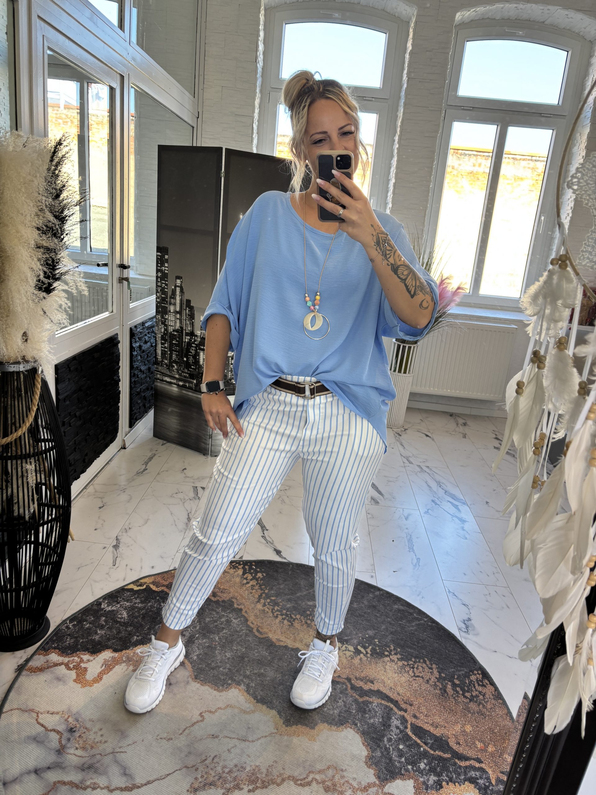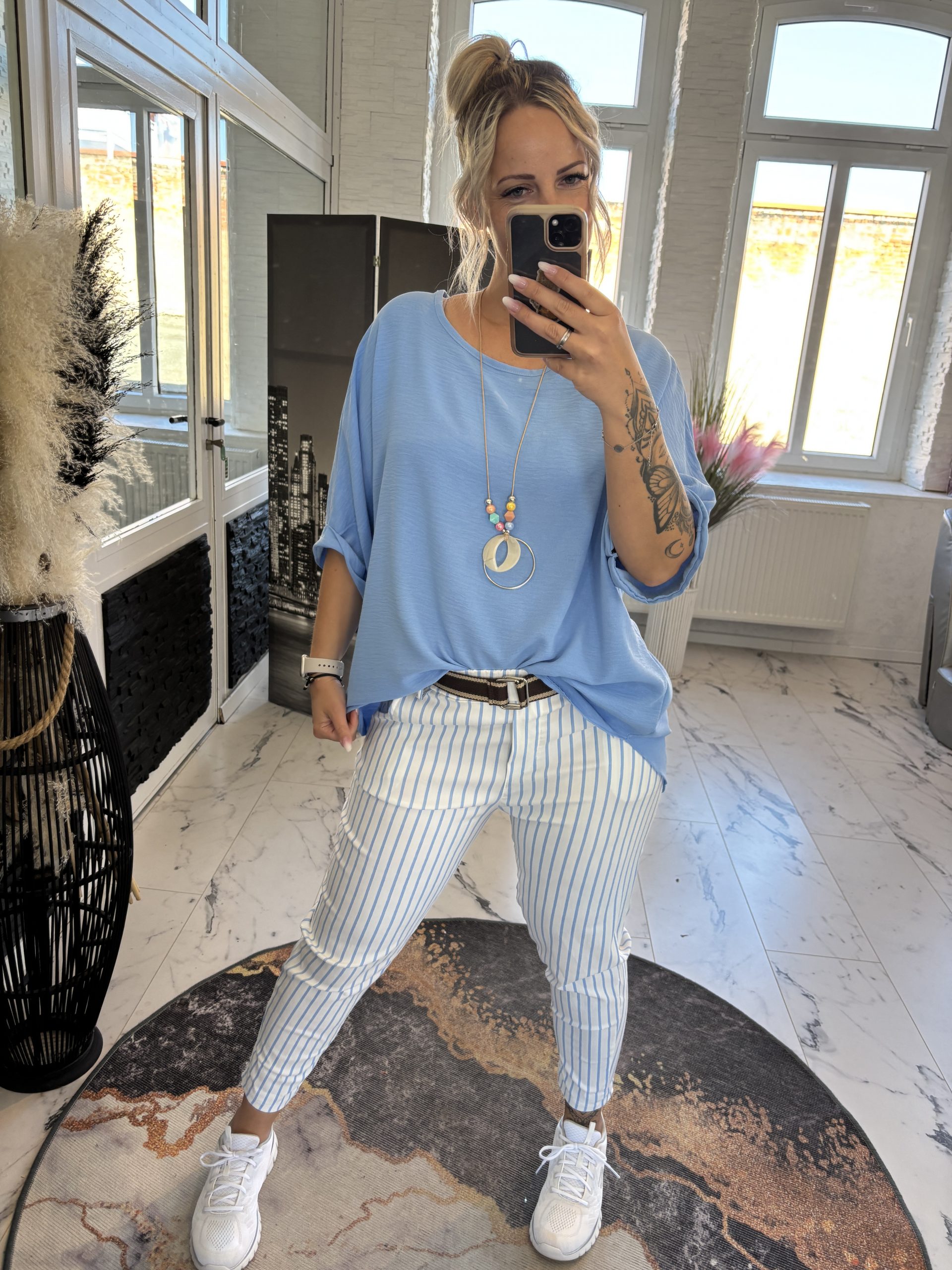 Streifen Hose Babyblau one SIZE 38-44 #1121