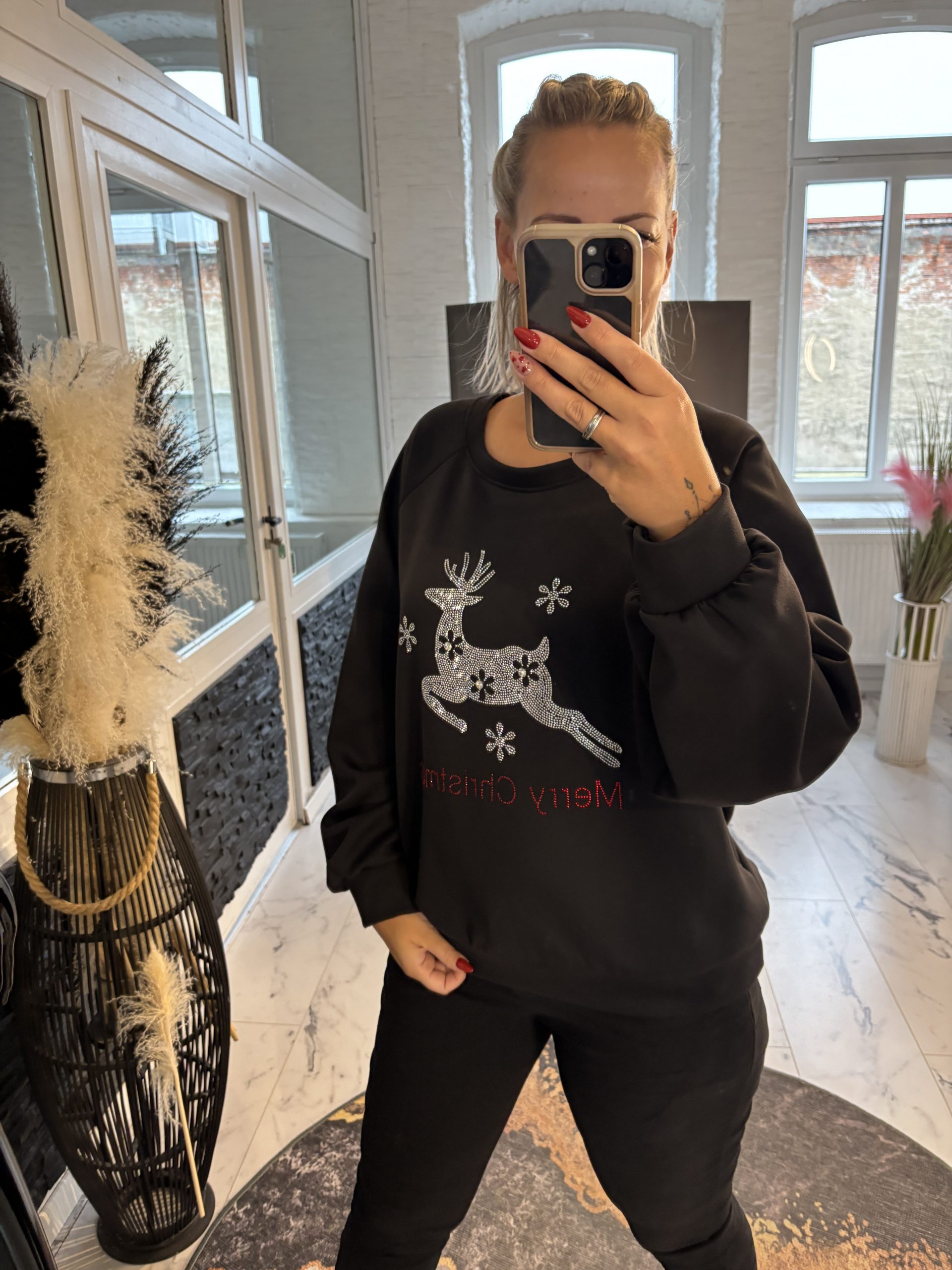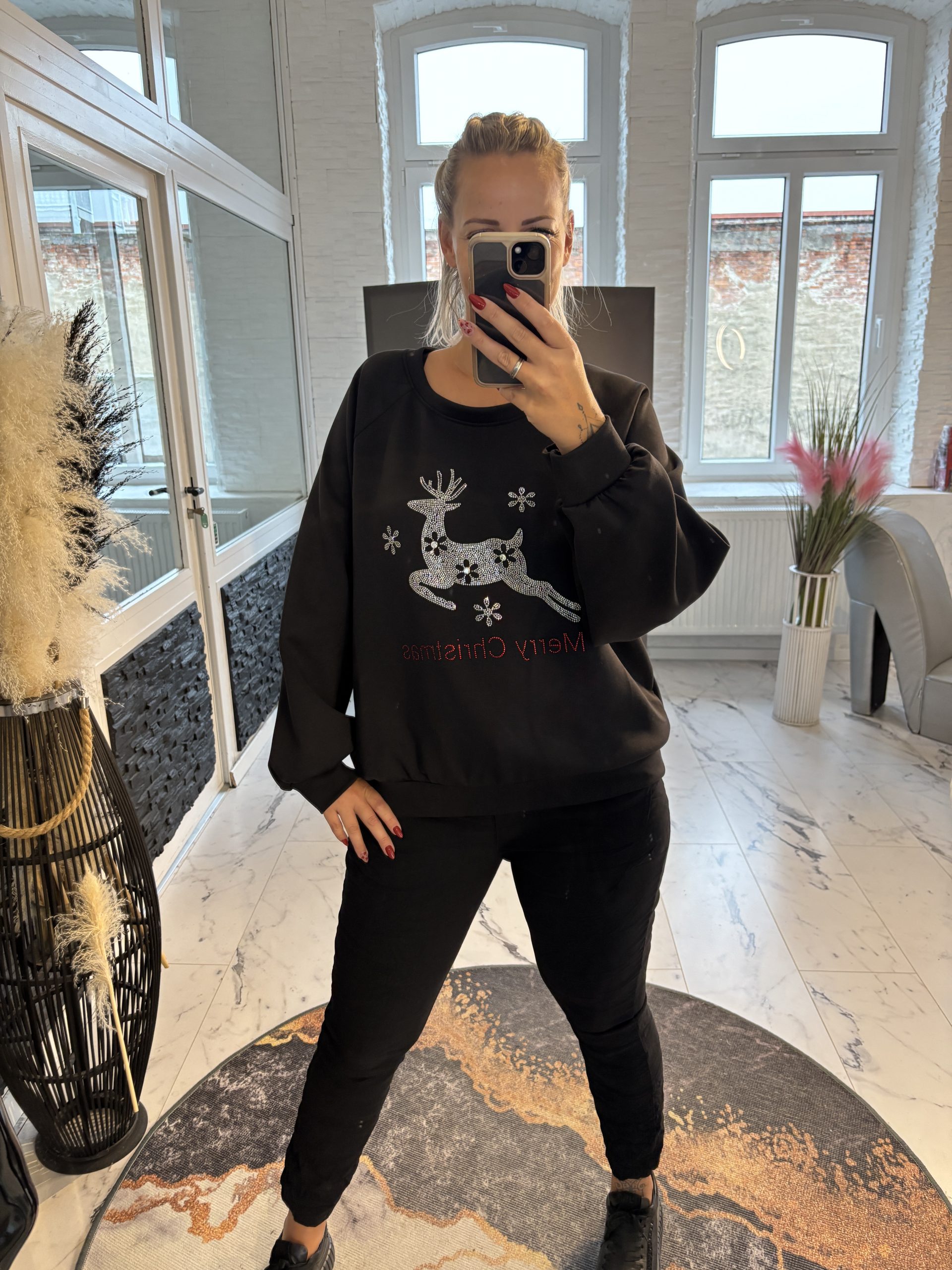 Glitzer Longpulli Mira schwarz one Size 38-46 #1130
