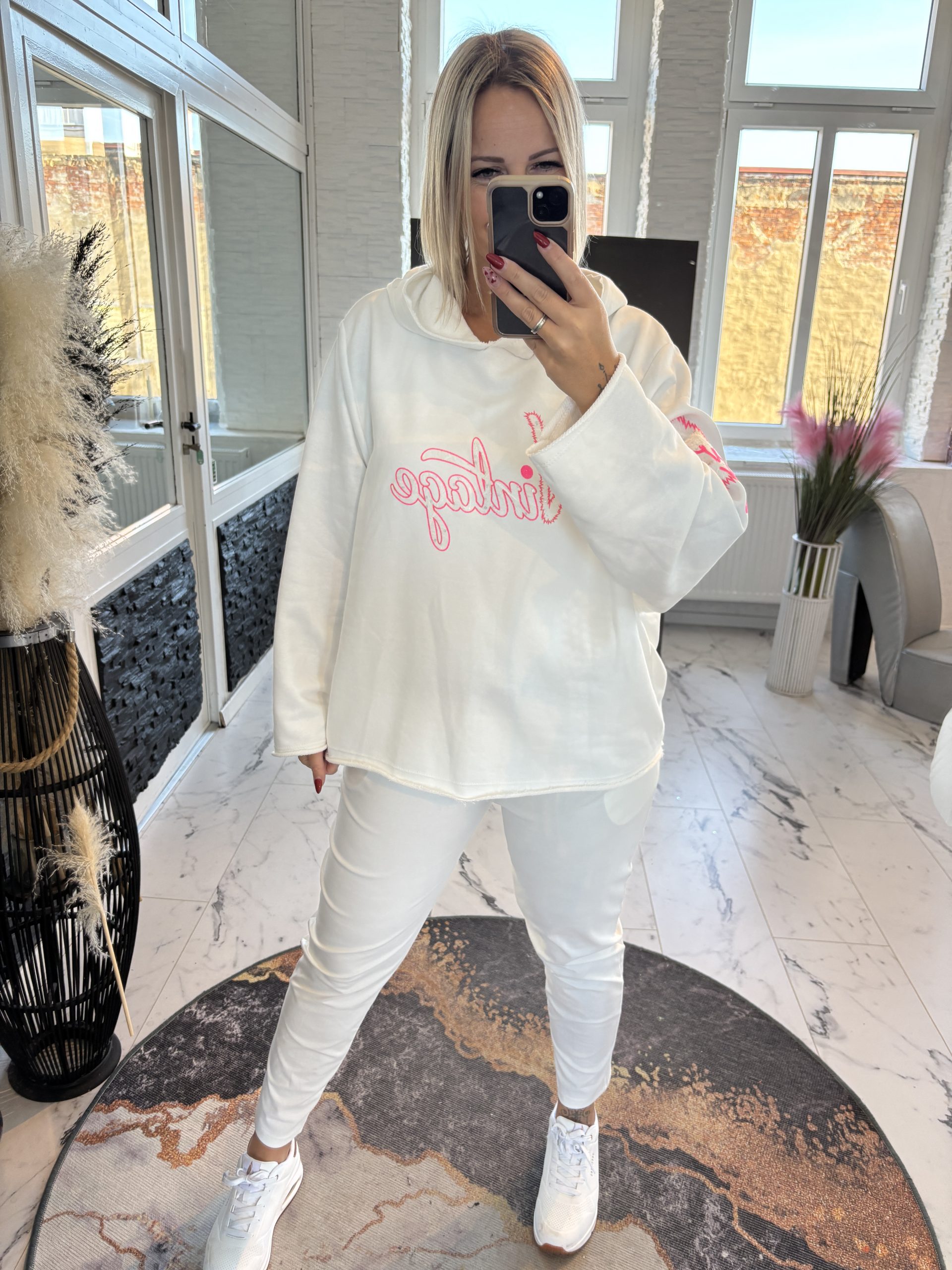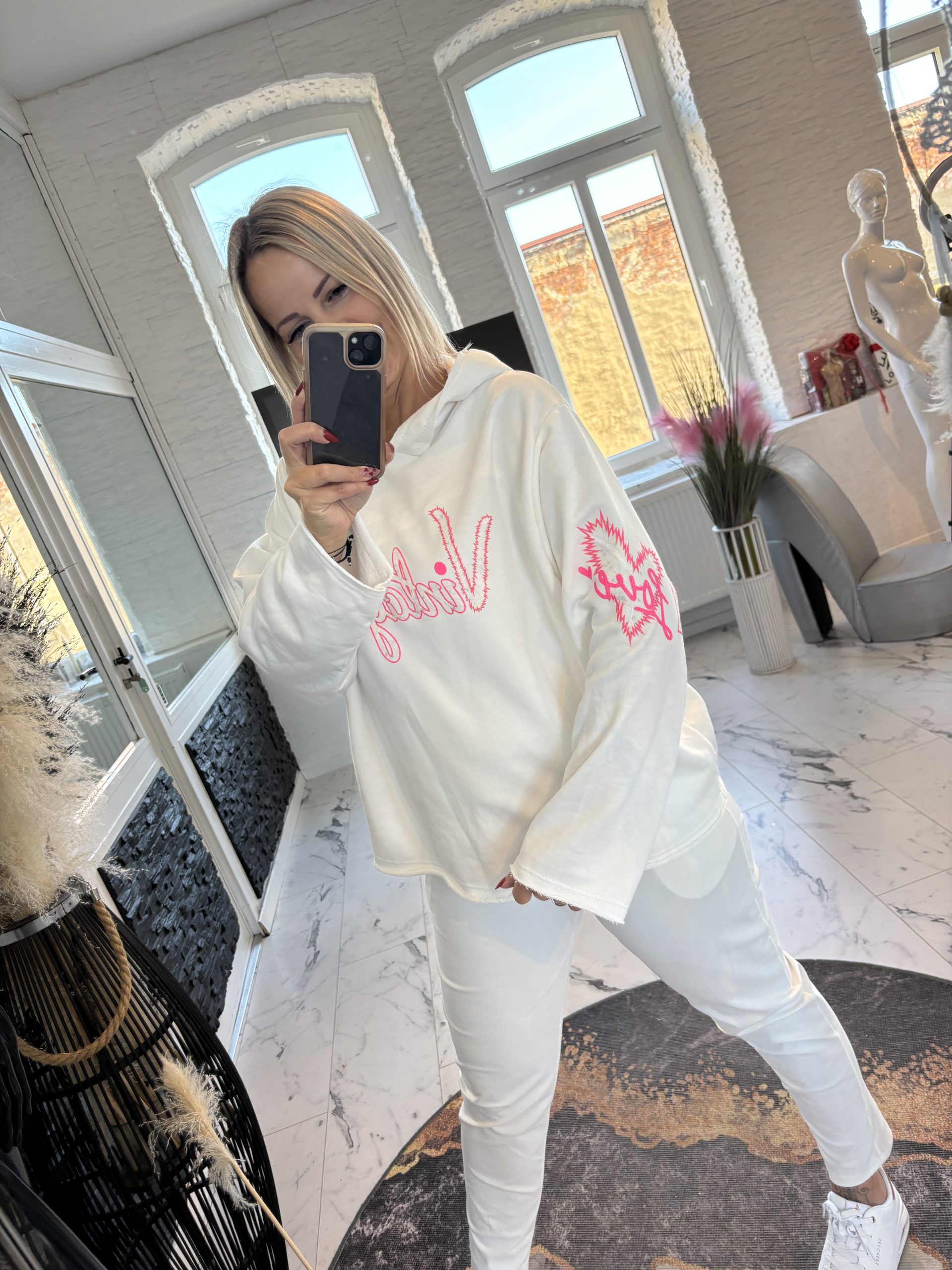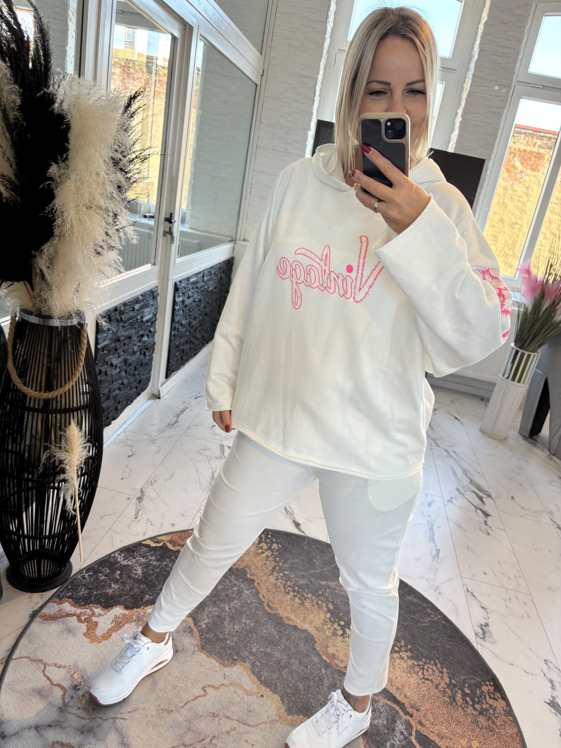 Sweatshirt mit Schrift und seitlichen Druck auf dem Ärmel
