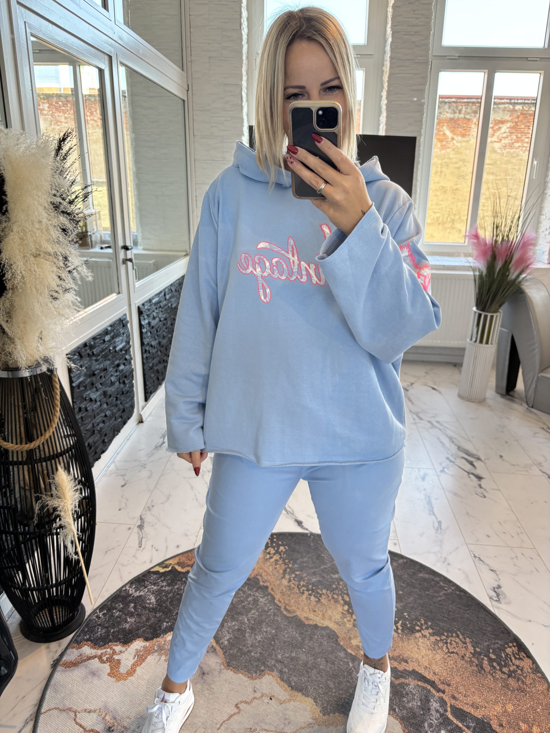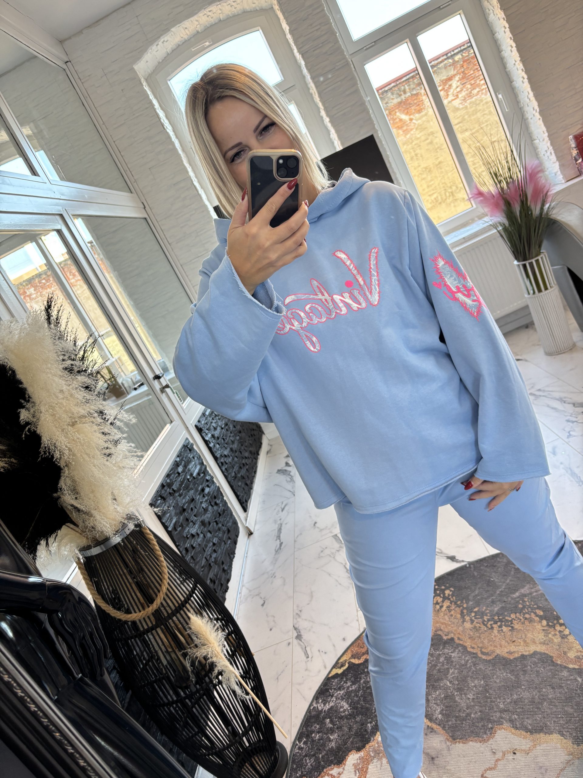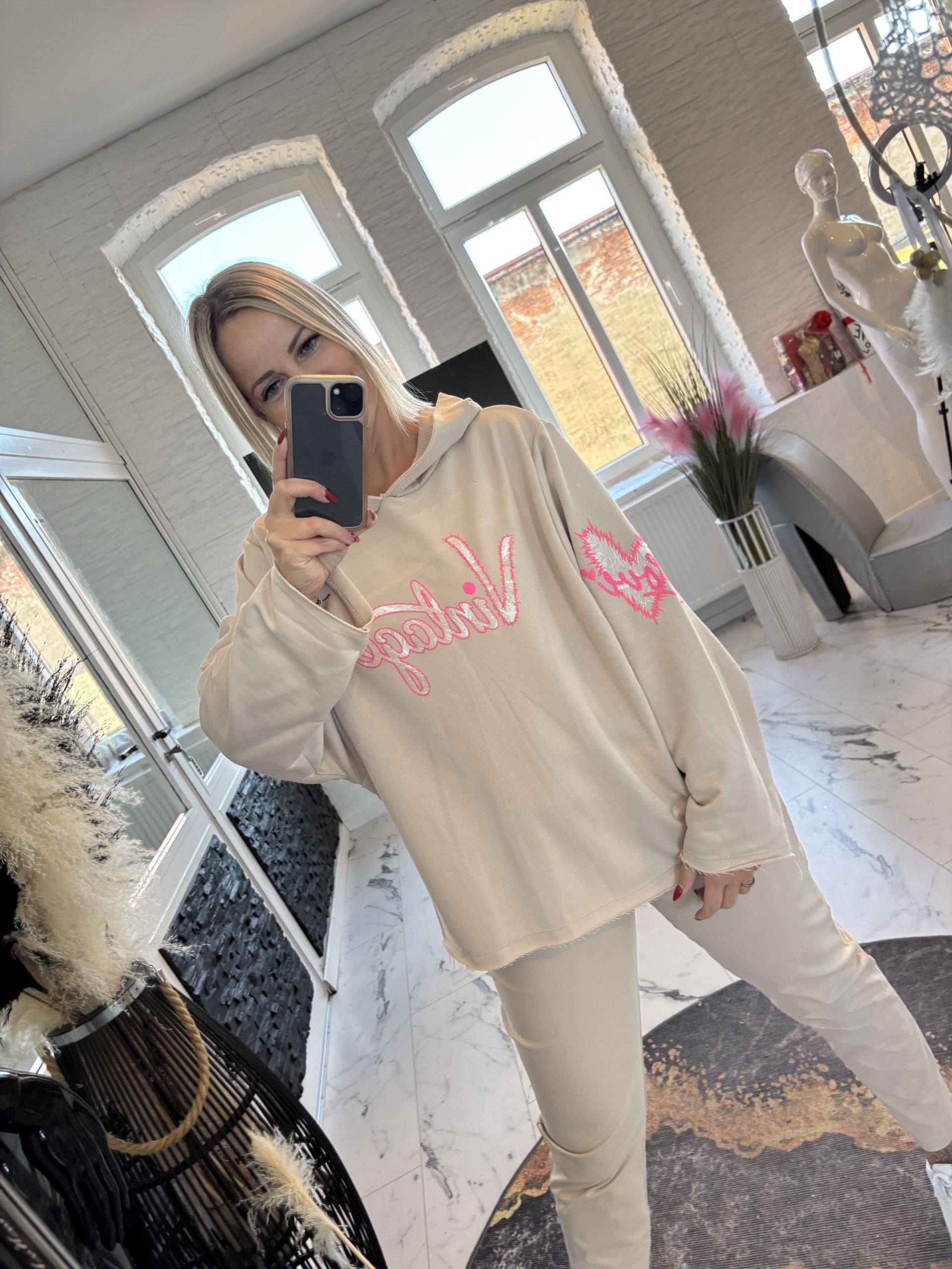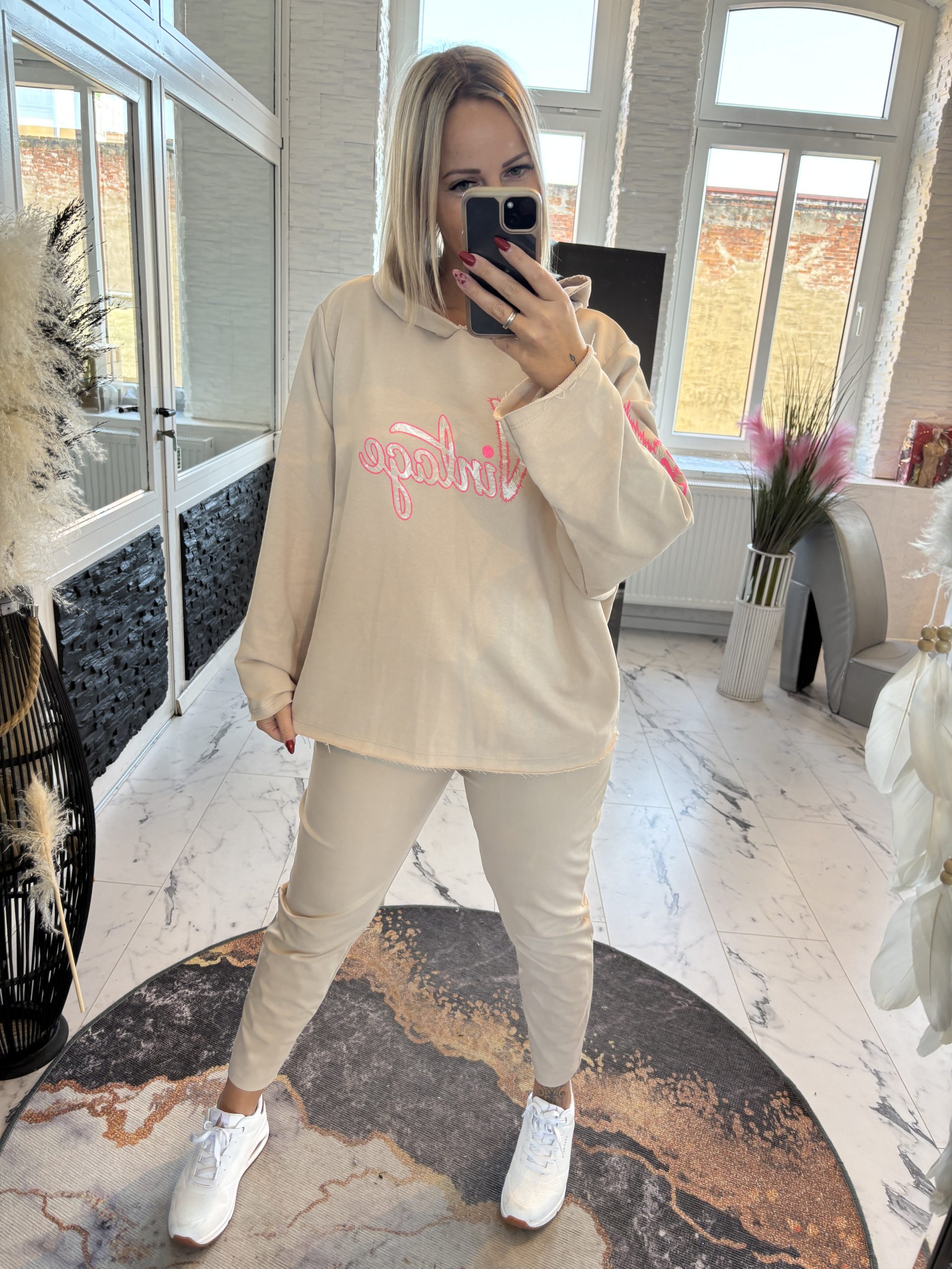 Sweatshirt mit Schrift und seitlichen Druck auf dem Ärmel