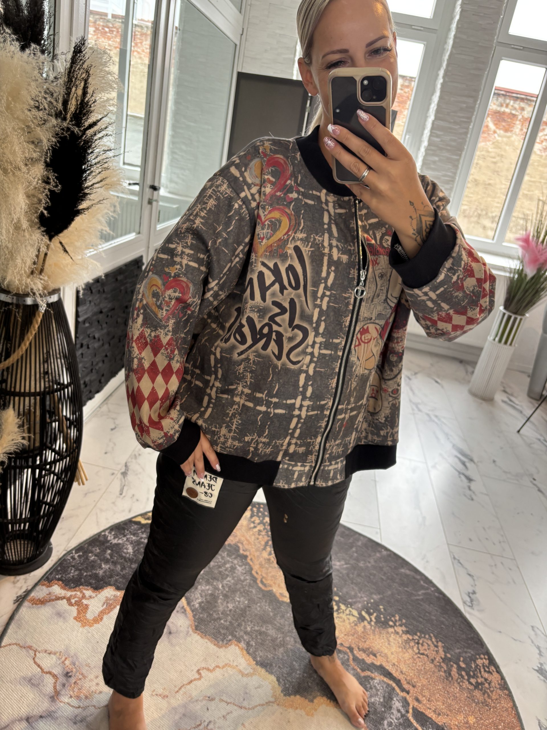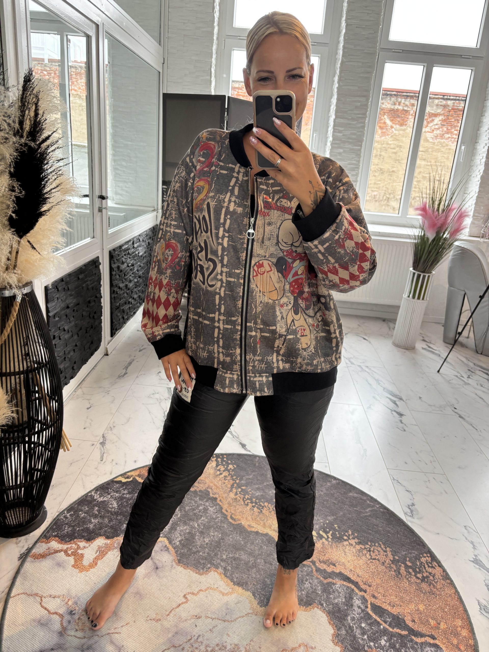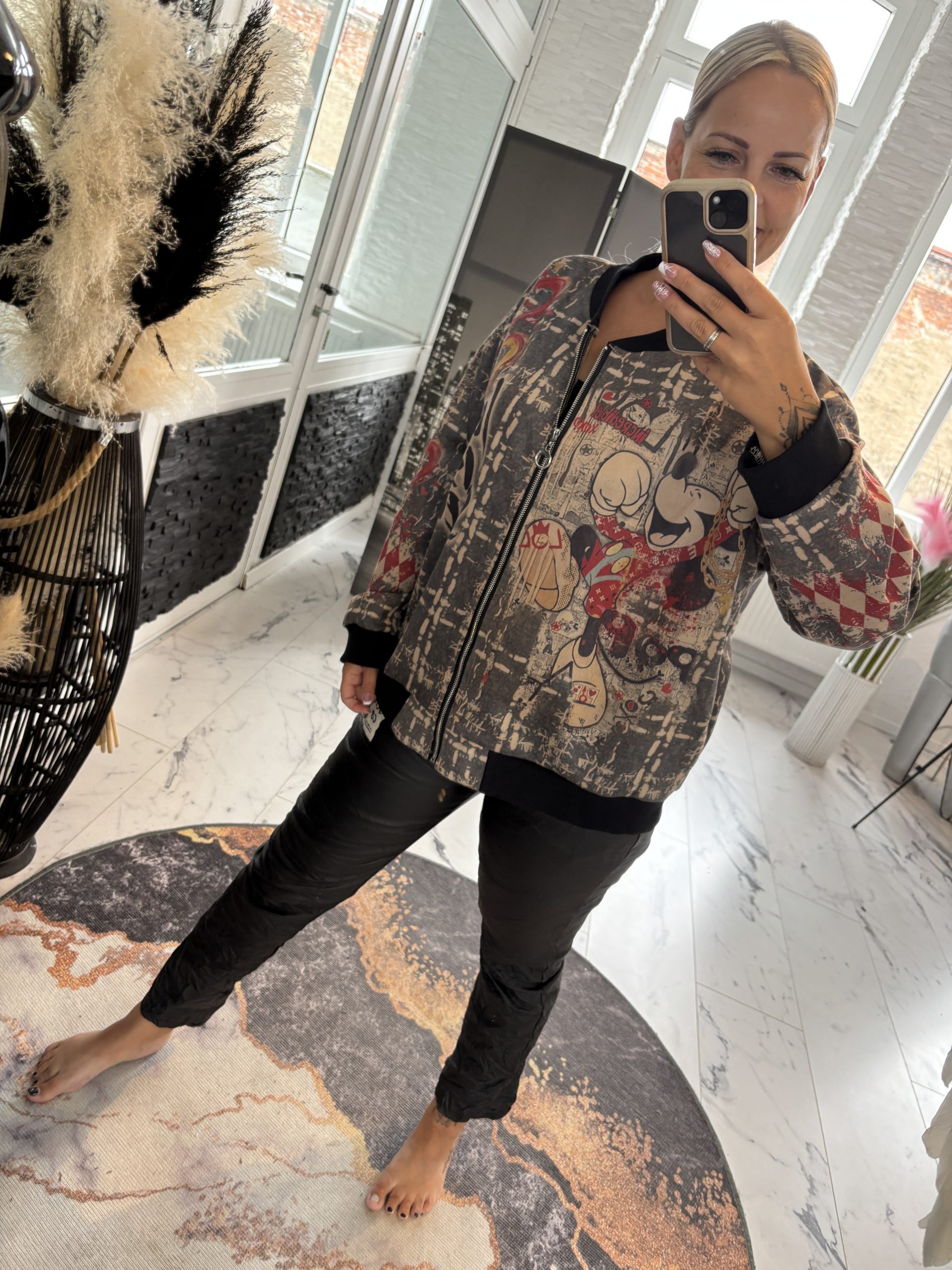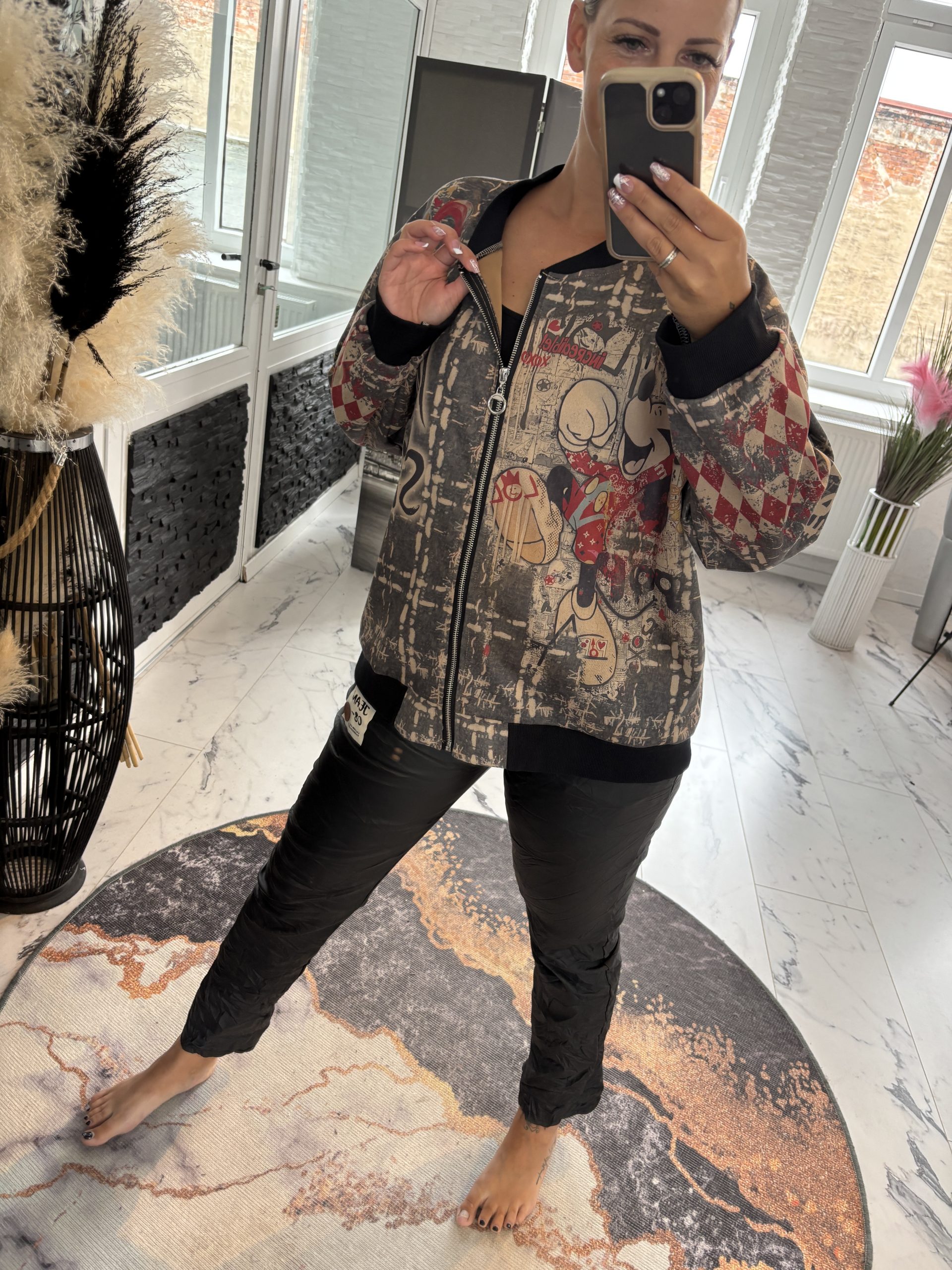 Waschleder Jacke mit Comic Print